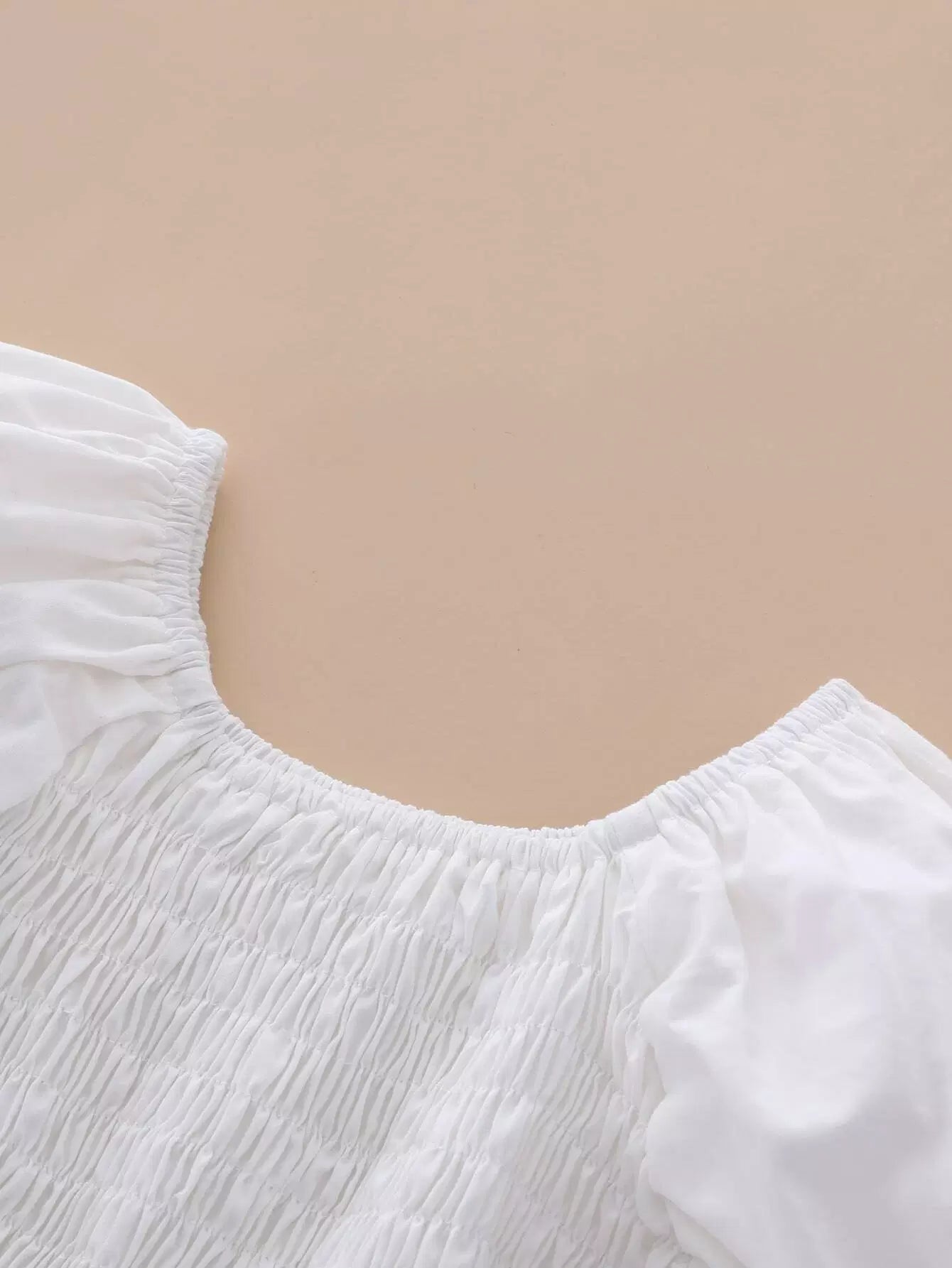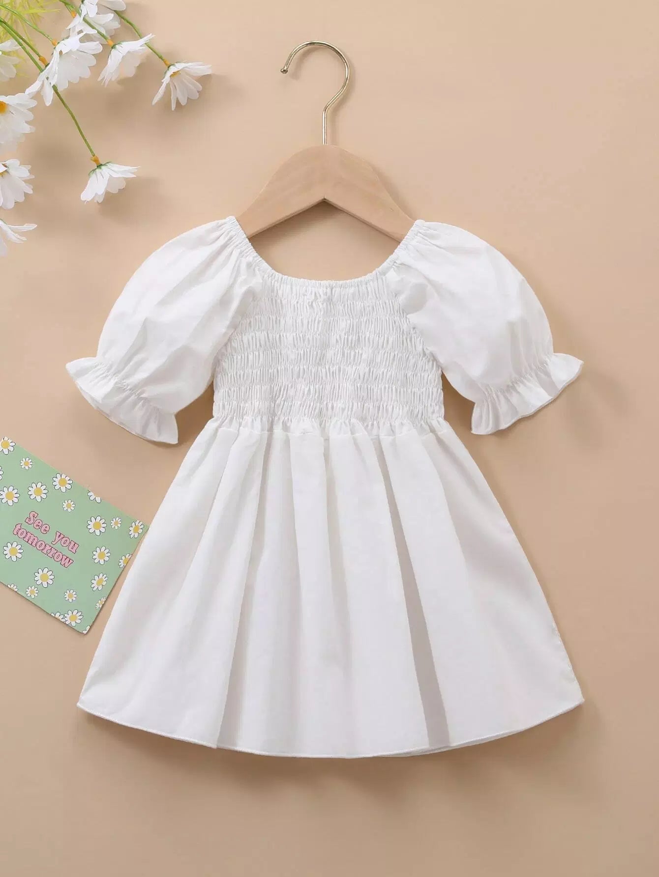 Baby Solid Shirred Bust Flounce Sleeve Baby Doll Dress