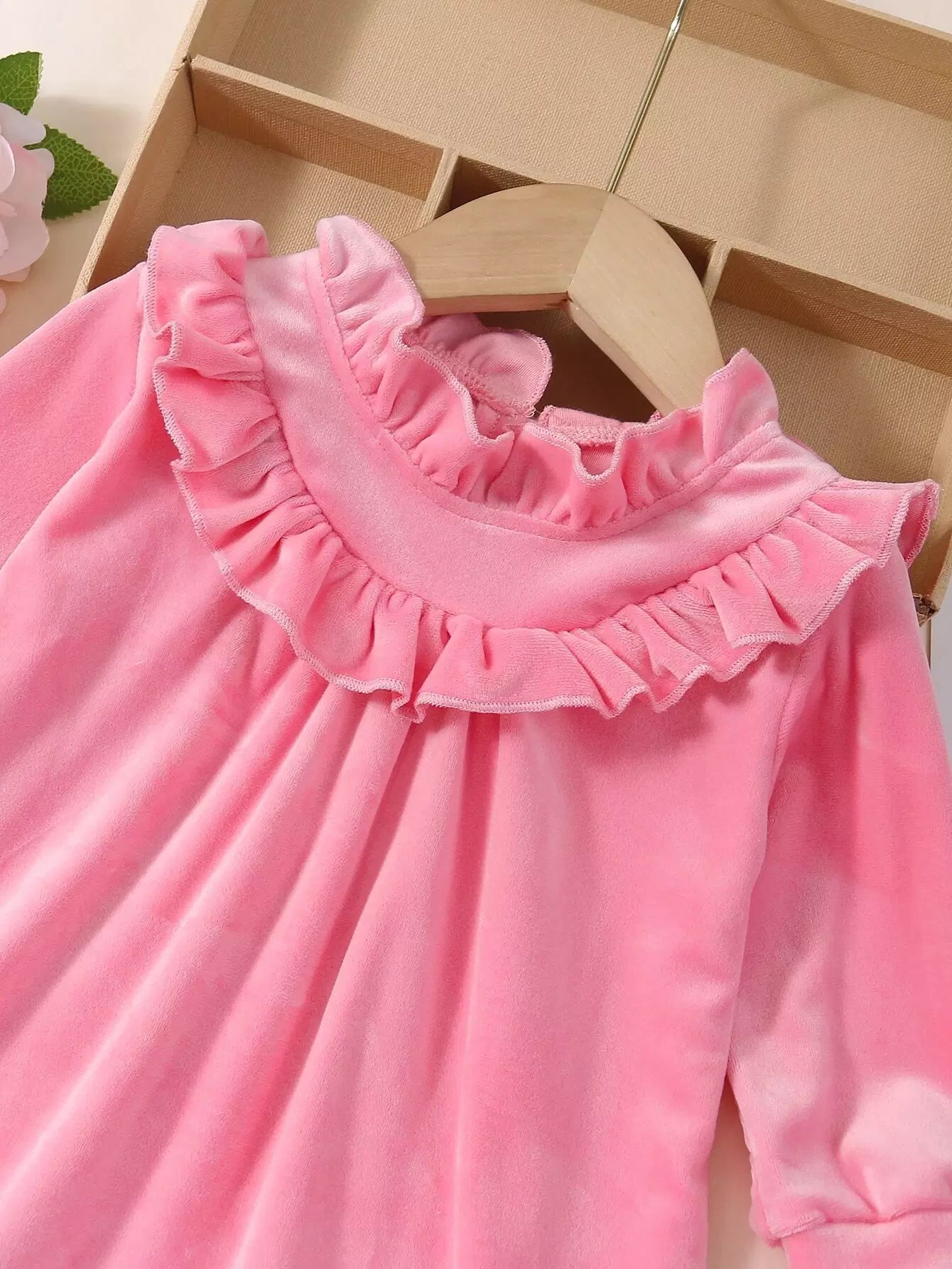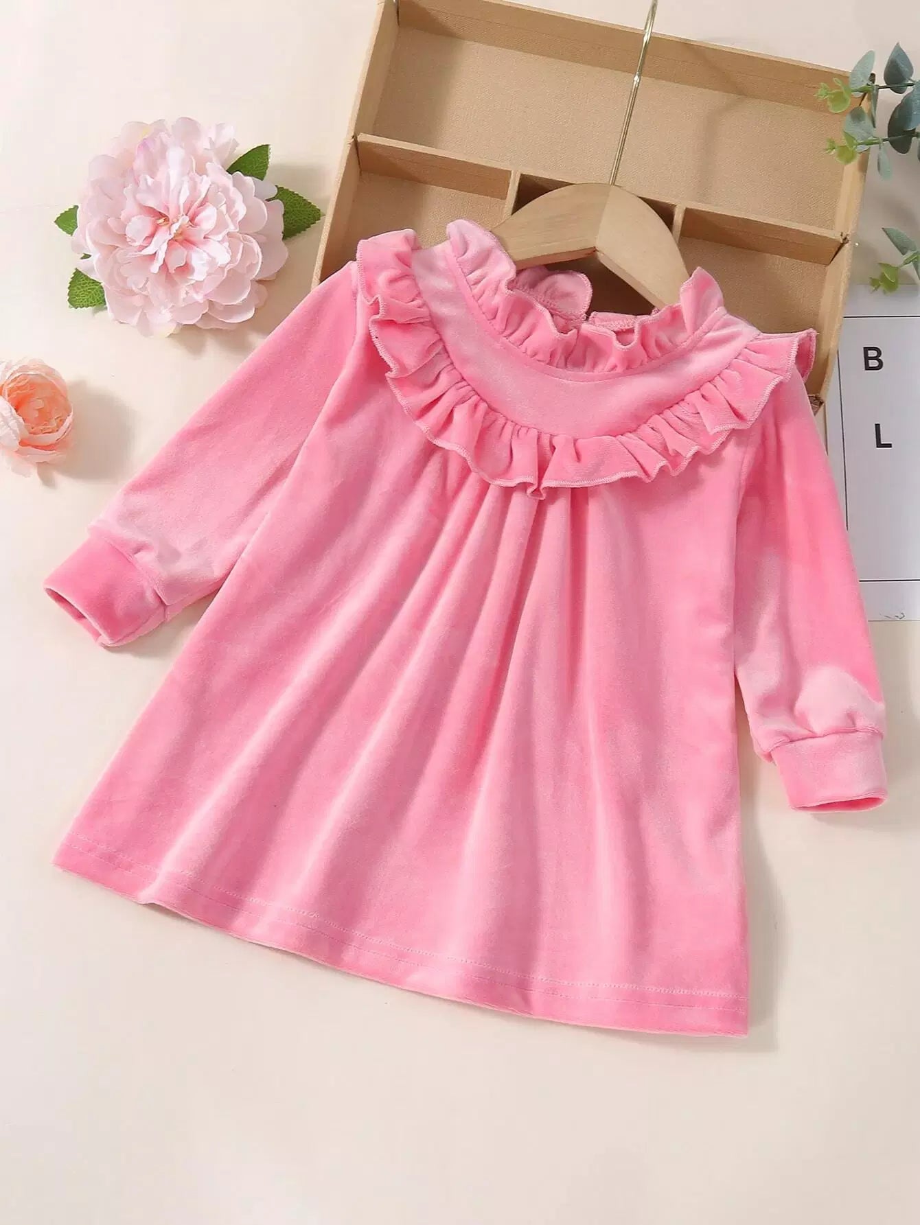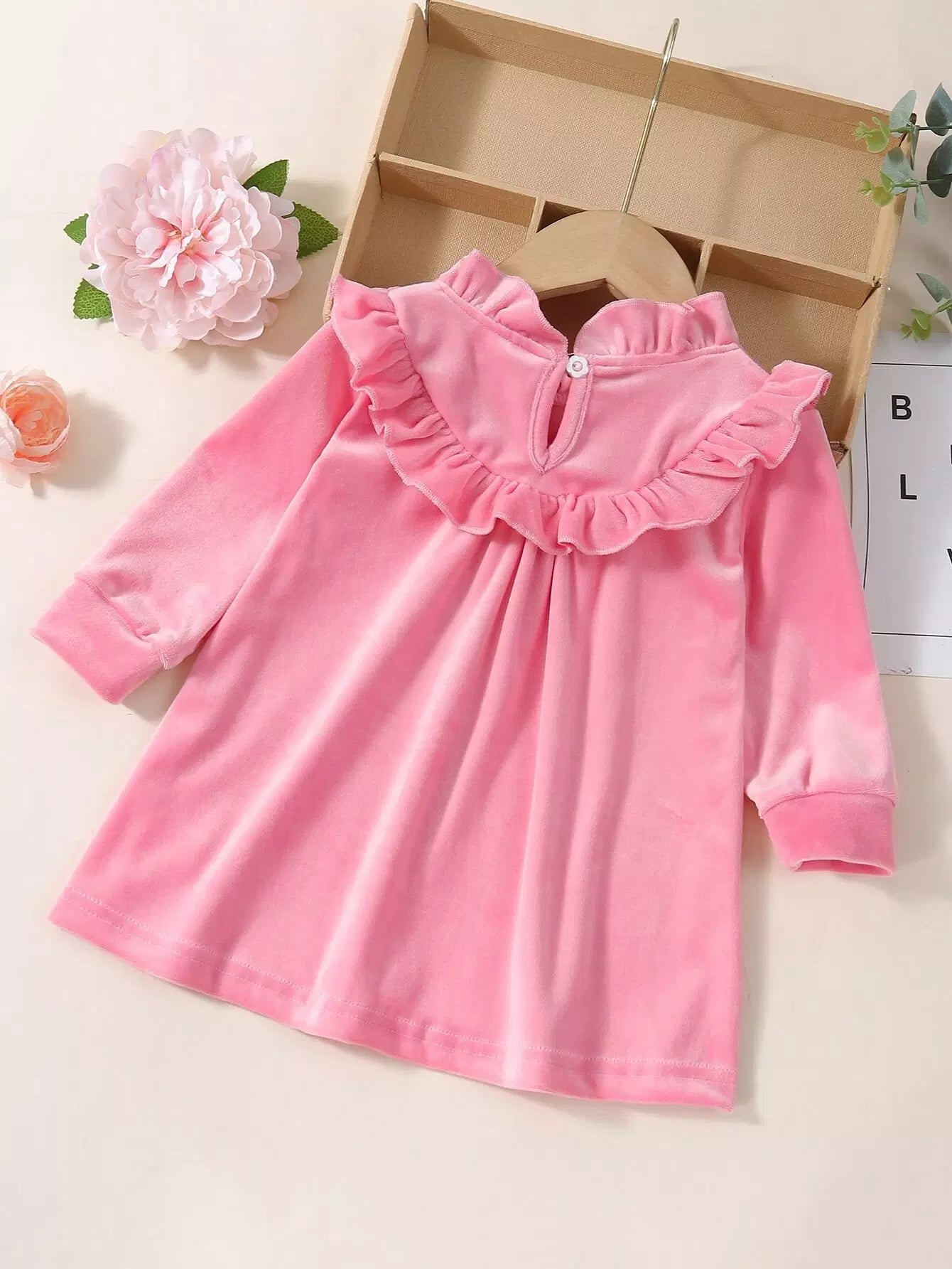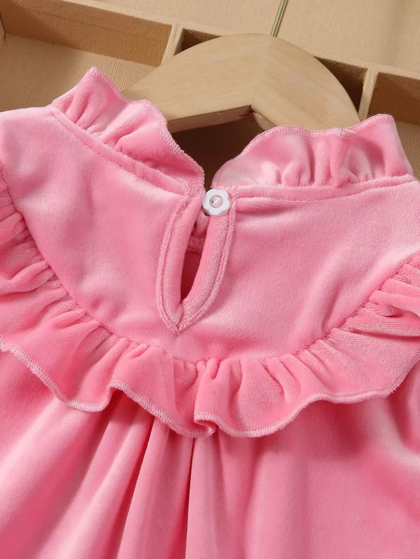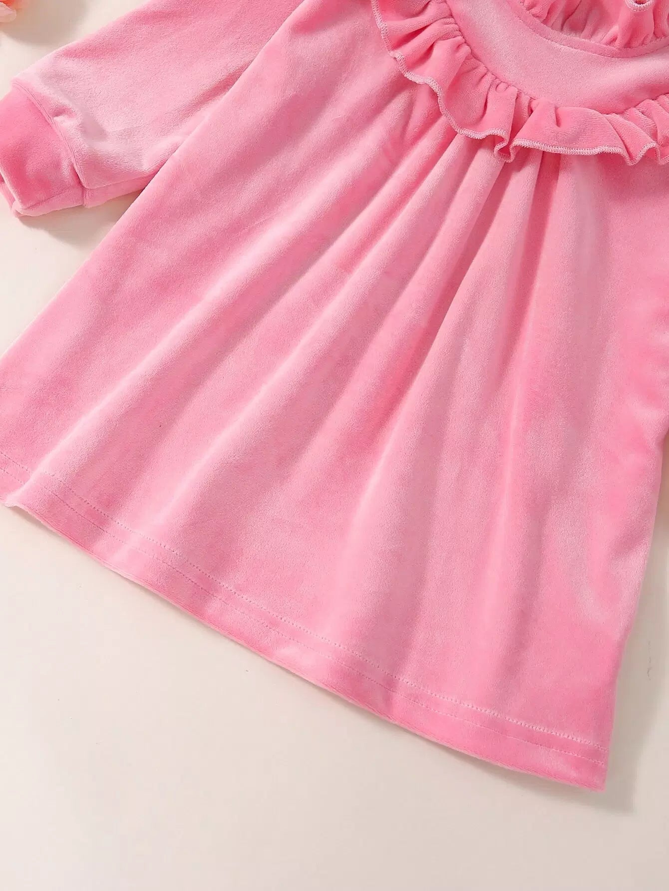 Baby Solid Velvet Ruffle Neck Dress