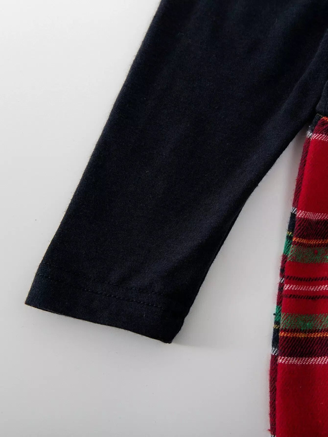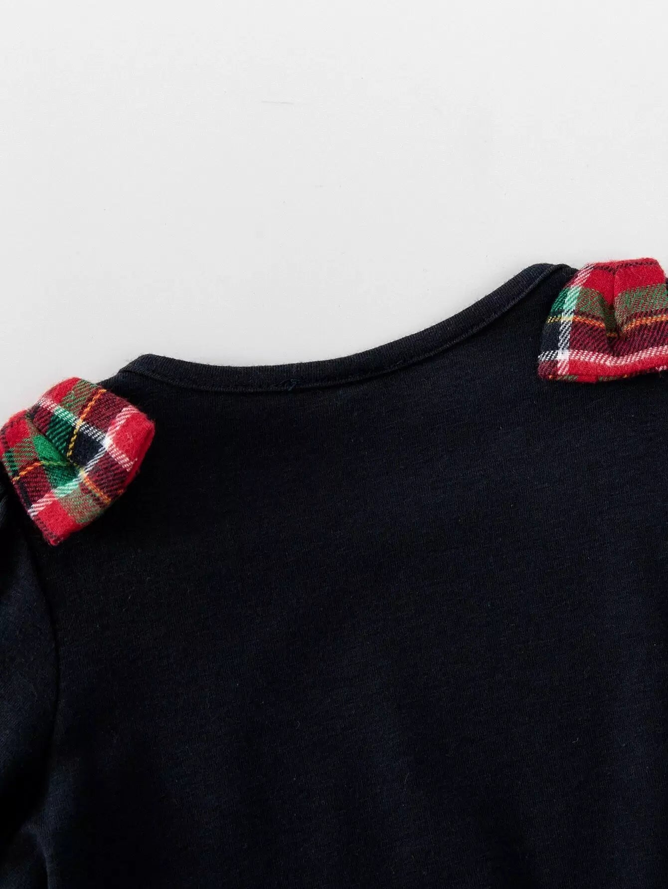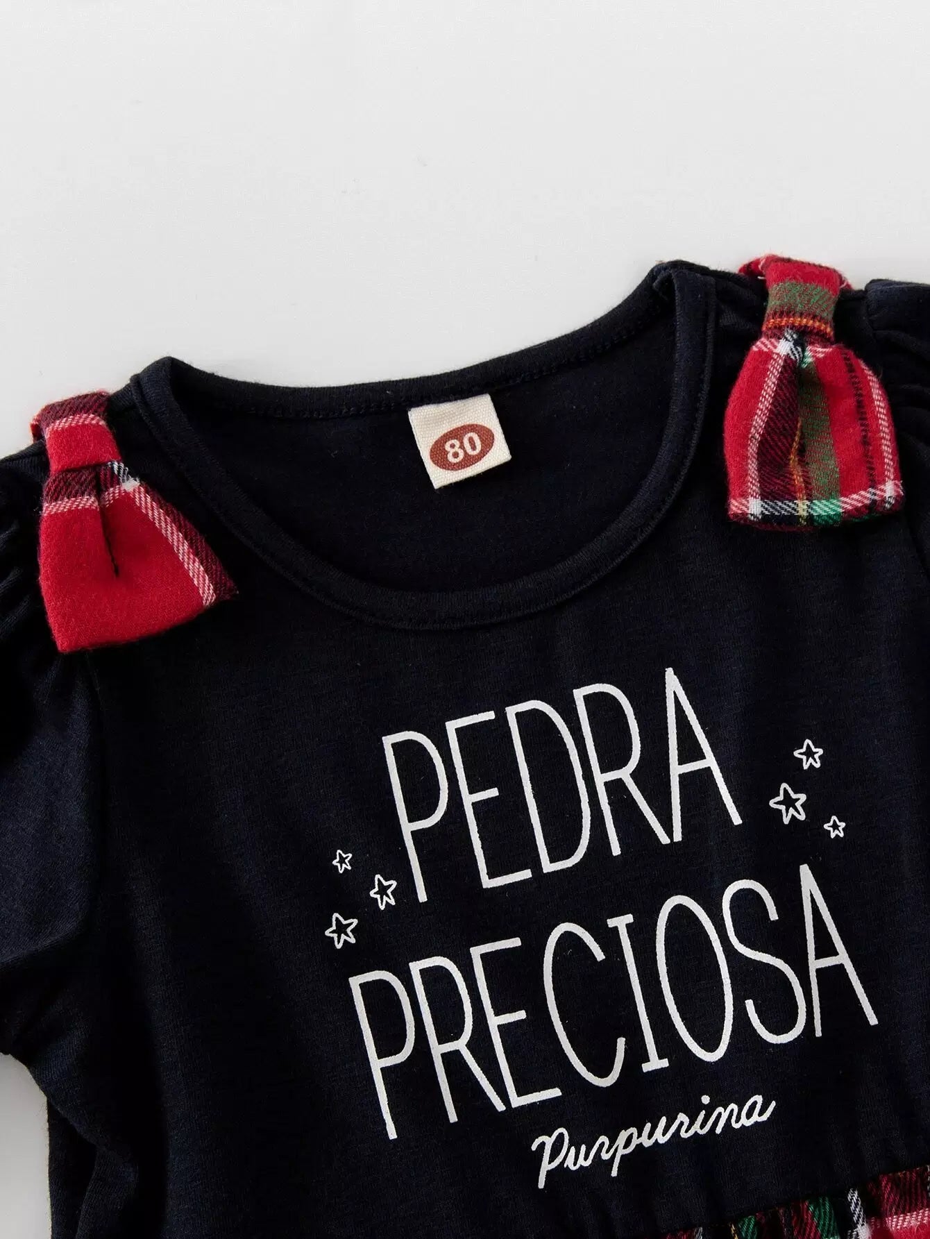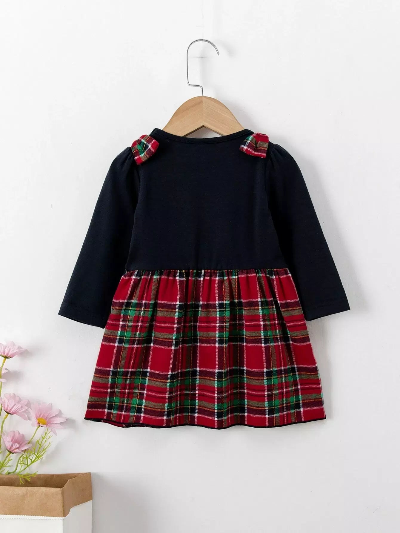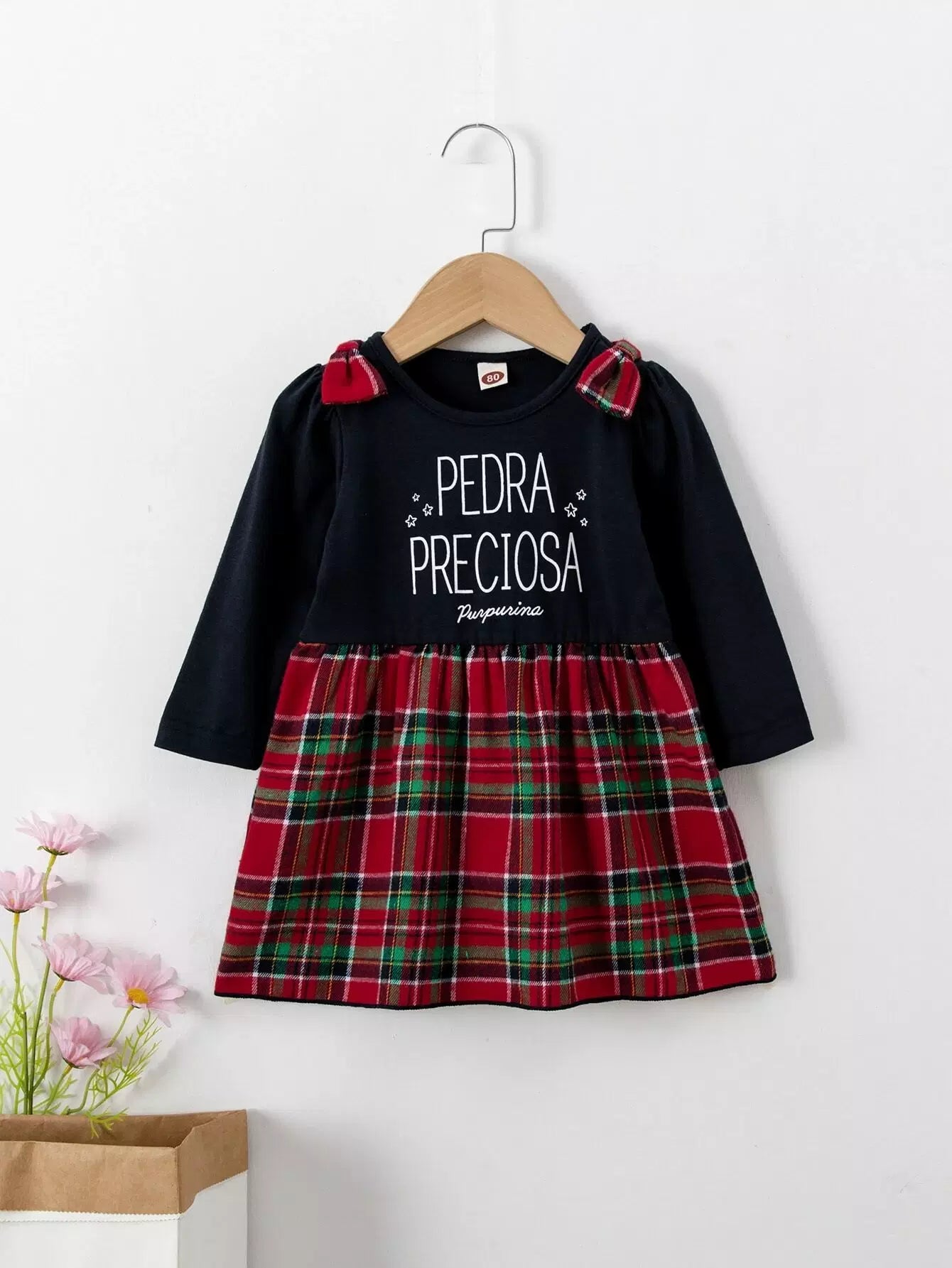 Baby Tartan & Letter Graphic Bow Shoulder Dress
