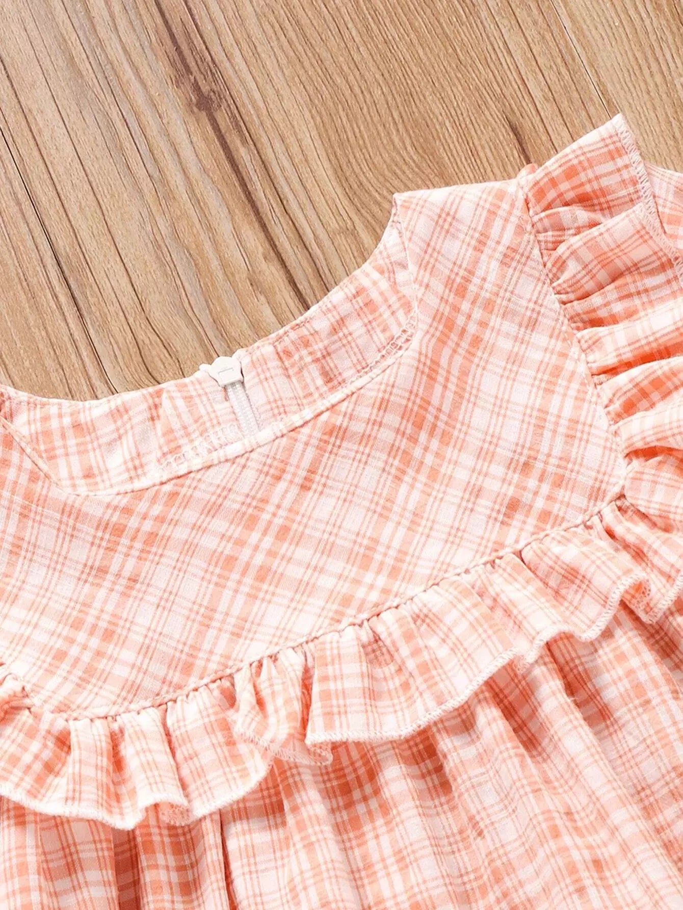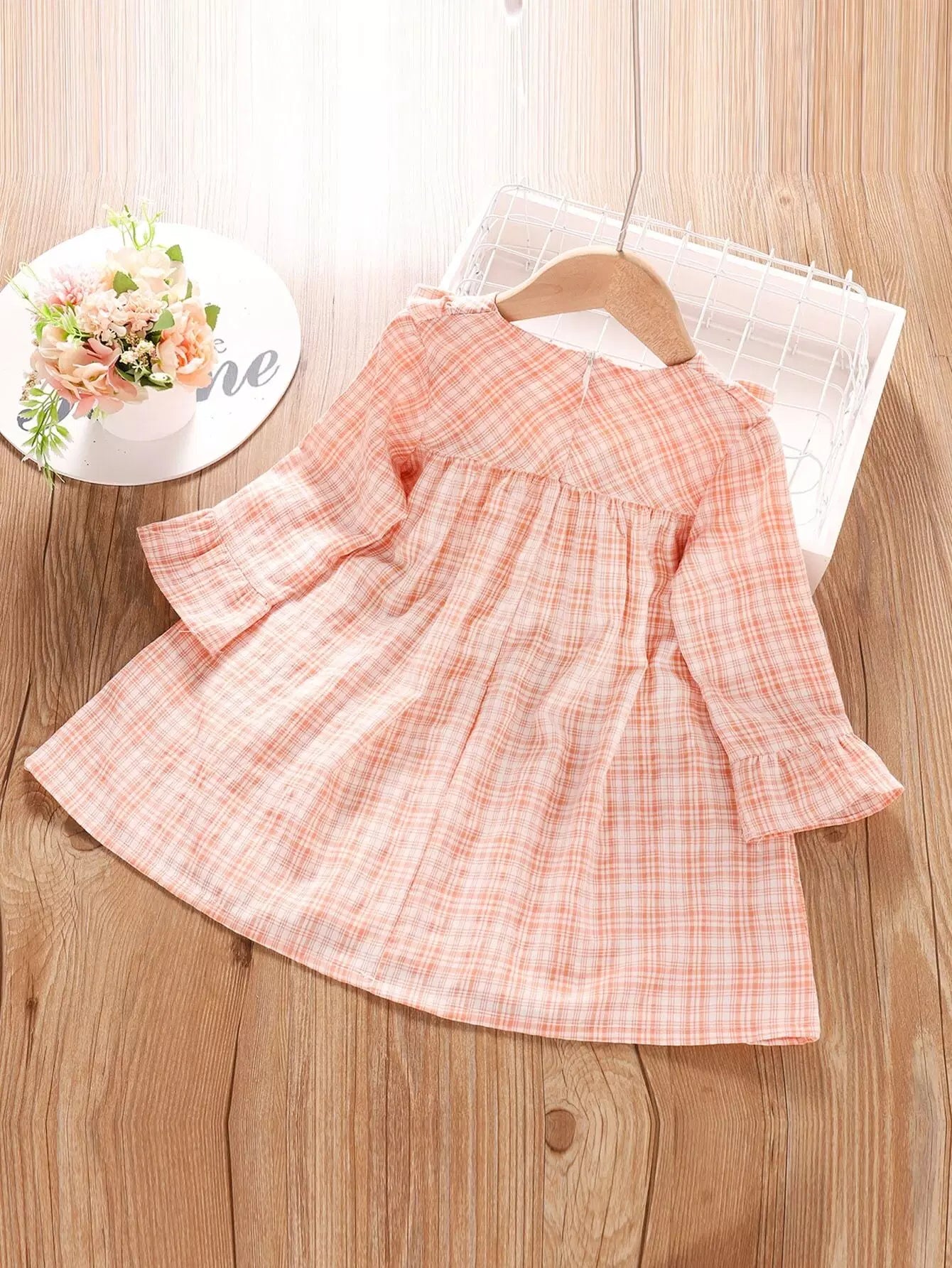 Baby Tartan Print Flounce Sleeve Ruffle Trim Dress