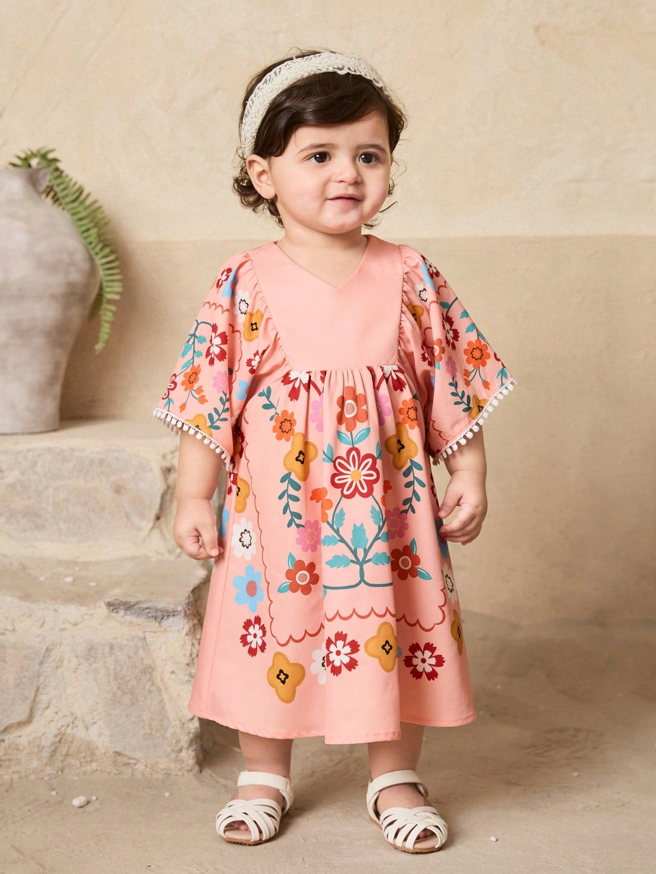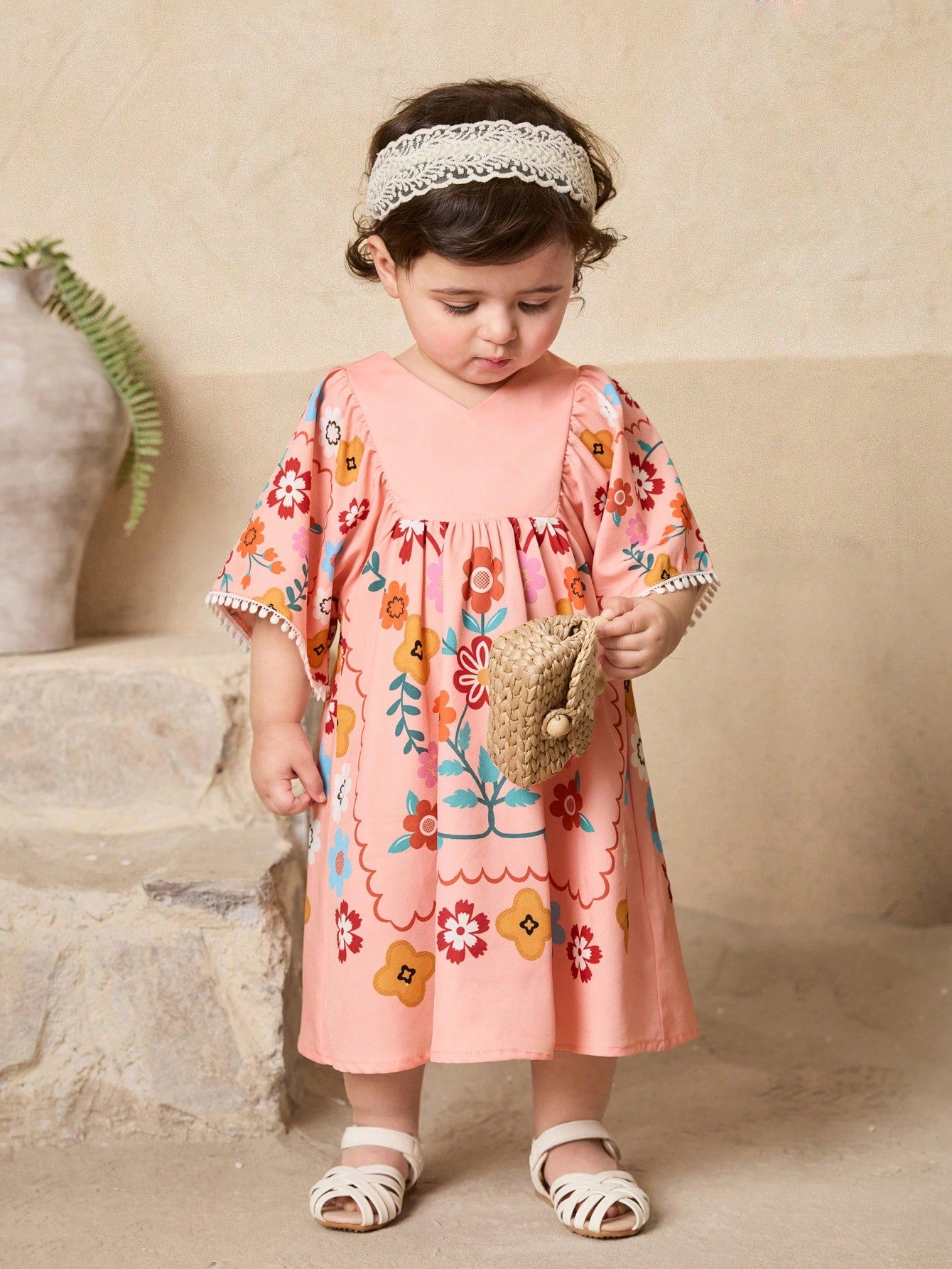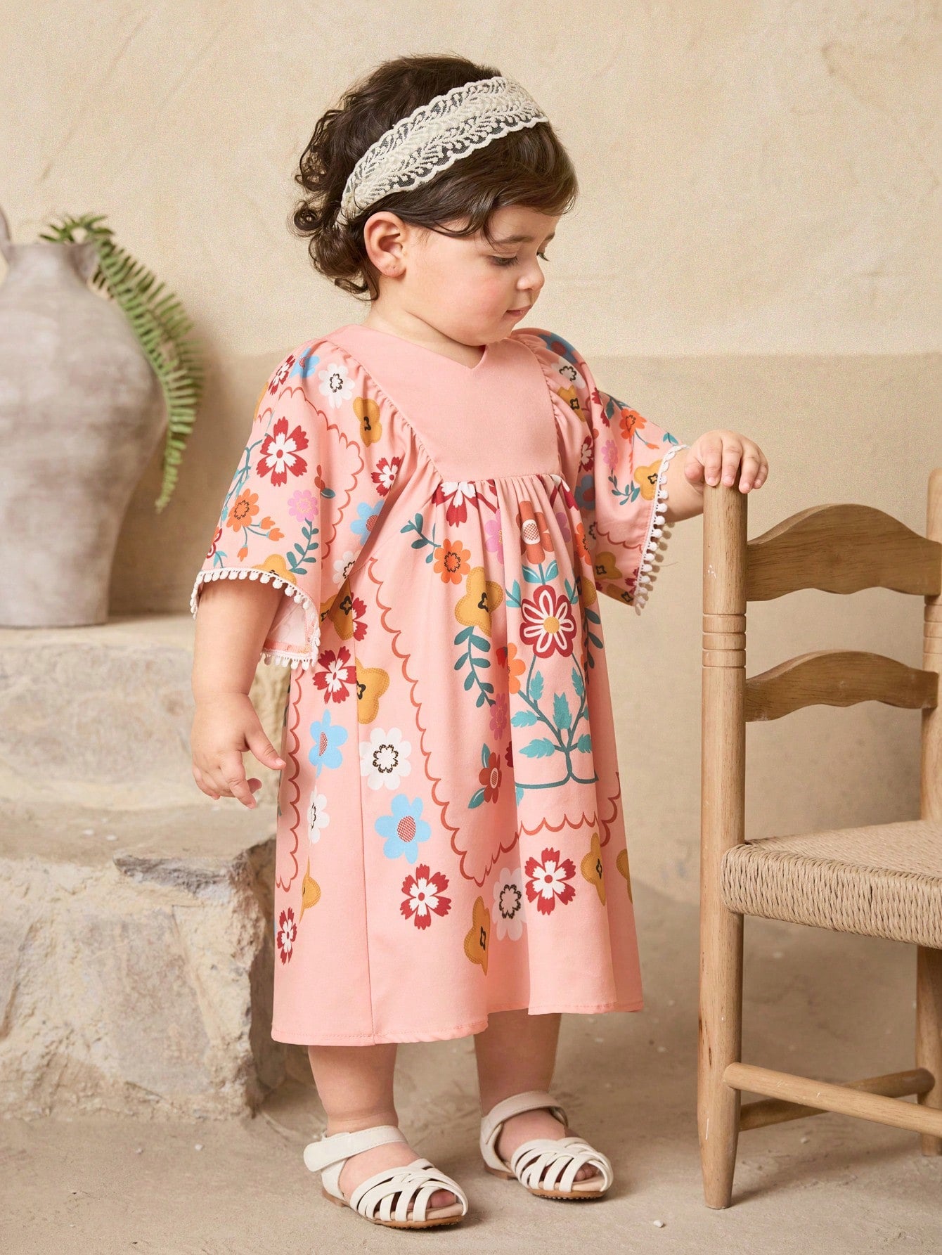 Babygirl Summer Cute Floral Pattern Sleeveless Mini Dress