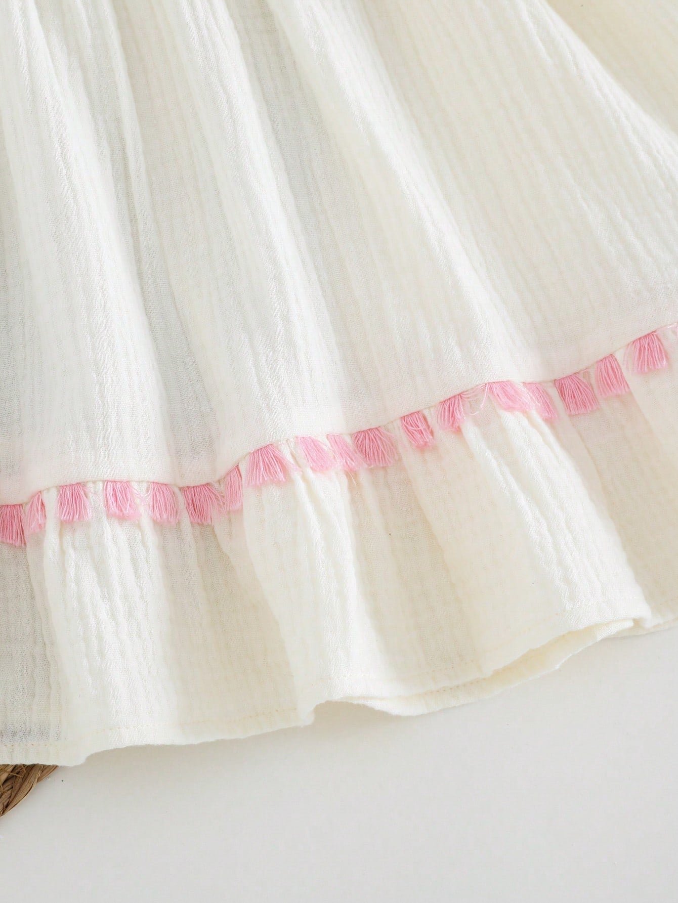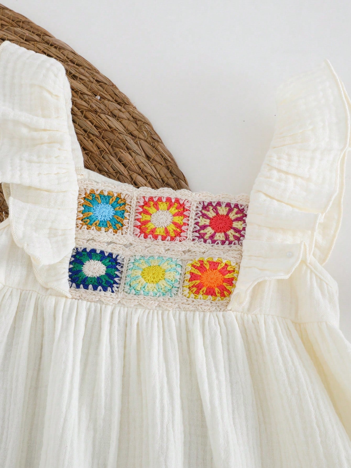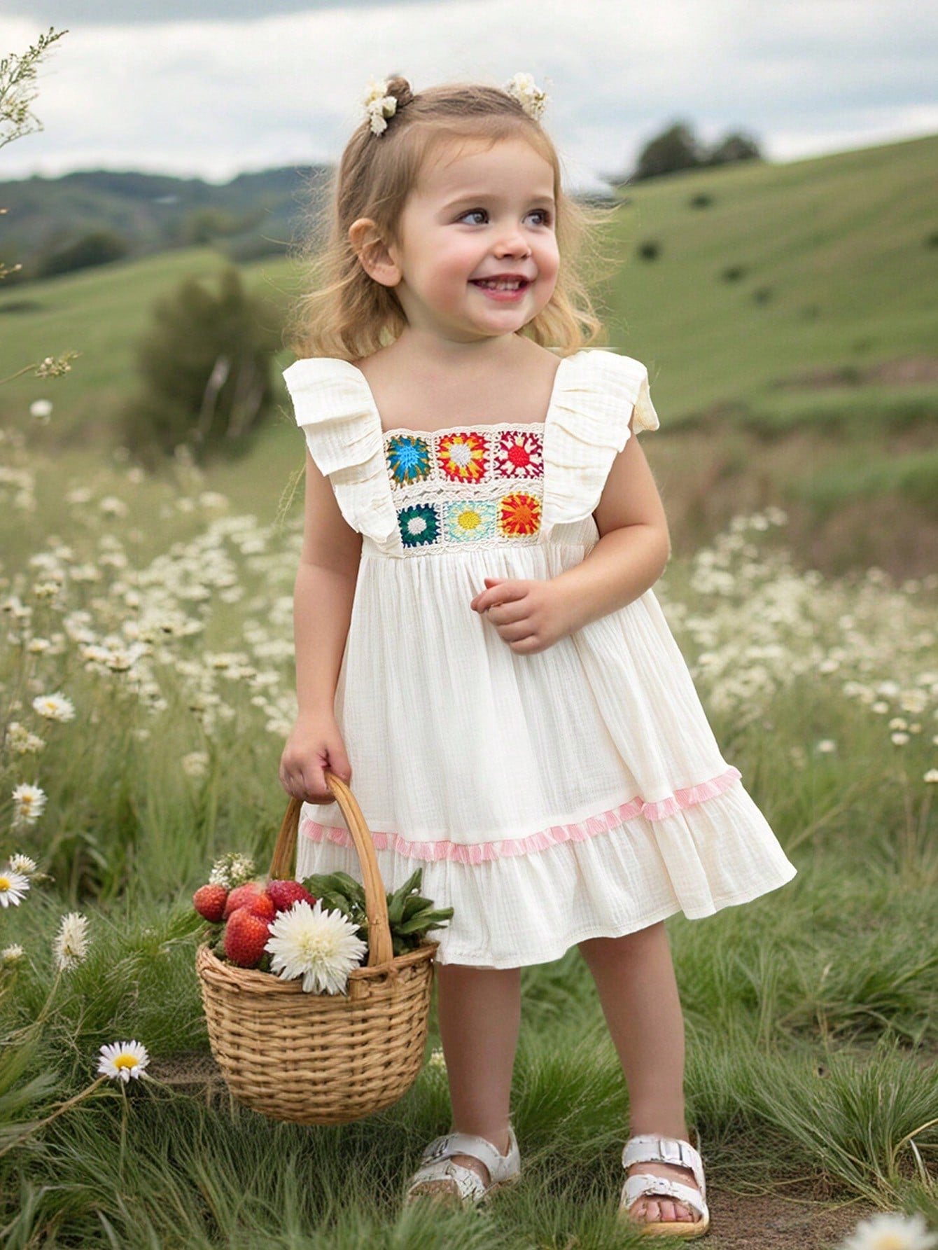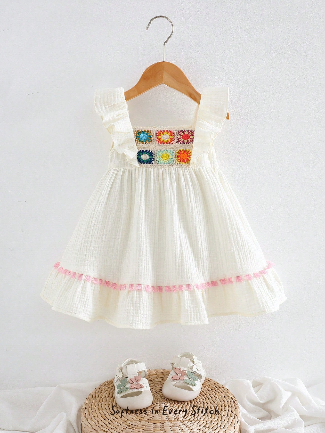 Cozy Pixies Baby Girl Crochet Pattern Square Neck Sleeveless Tie-Waist Dress