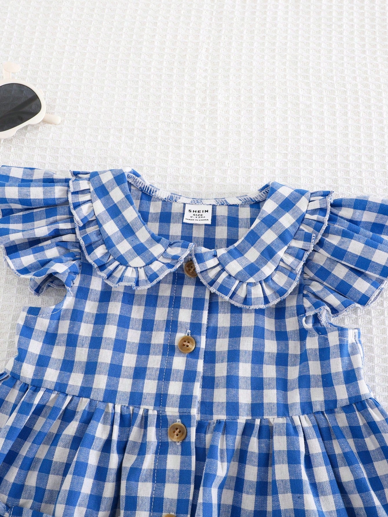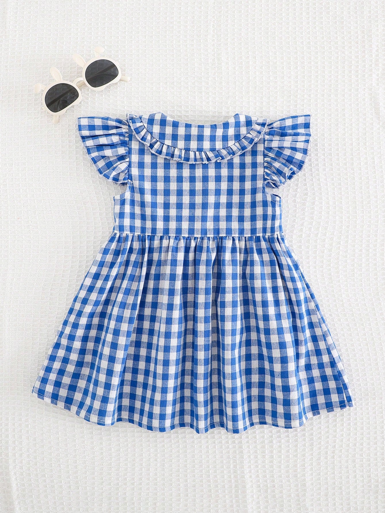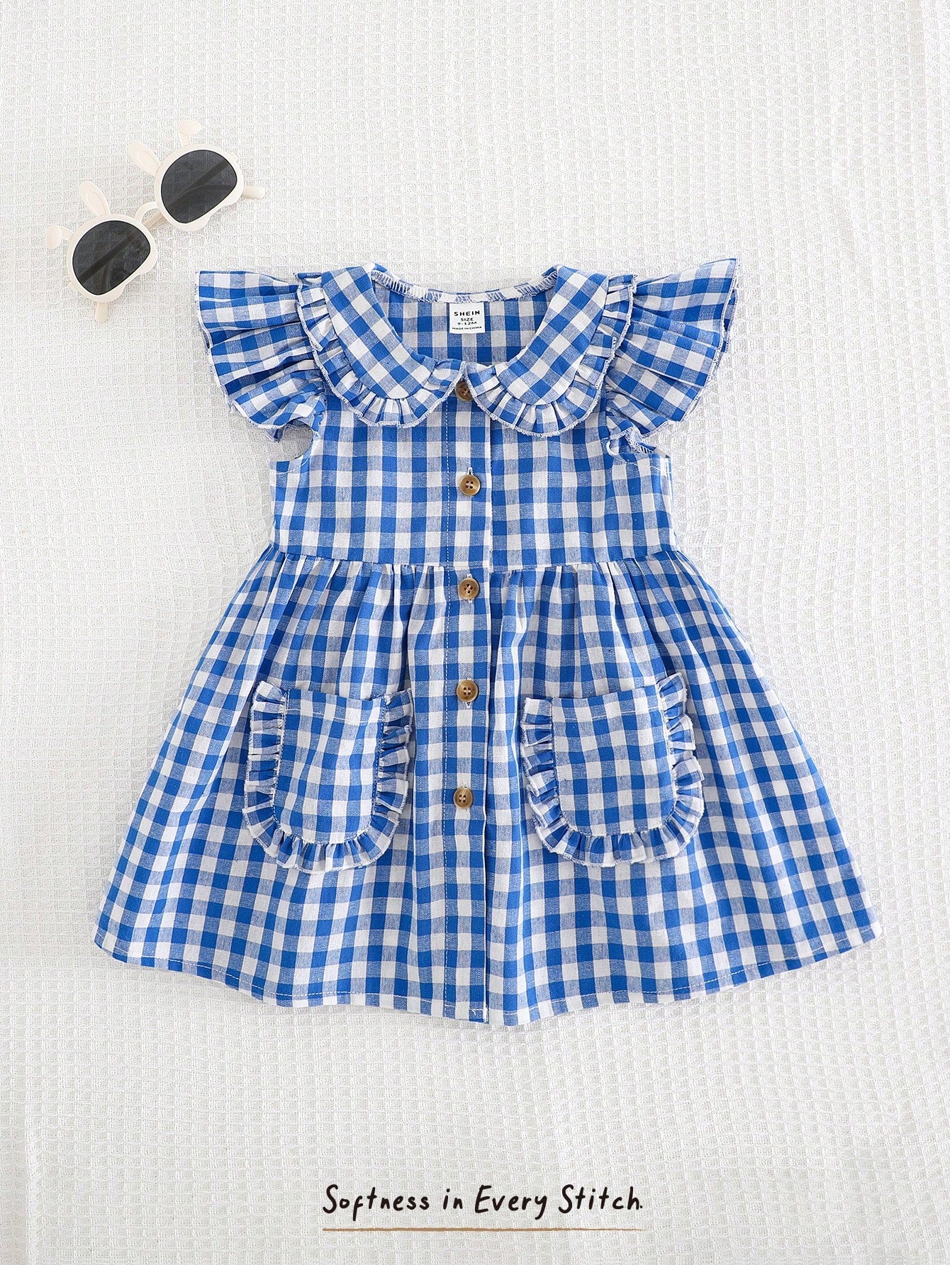 Cozy Pixies Baby Girl Plaid Ruffled Collar Cap Sleeve Cinched Waist Dress