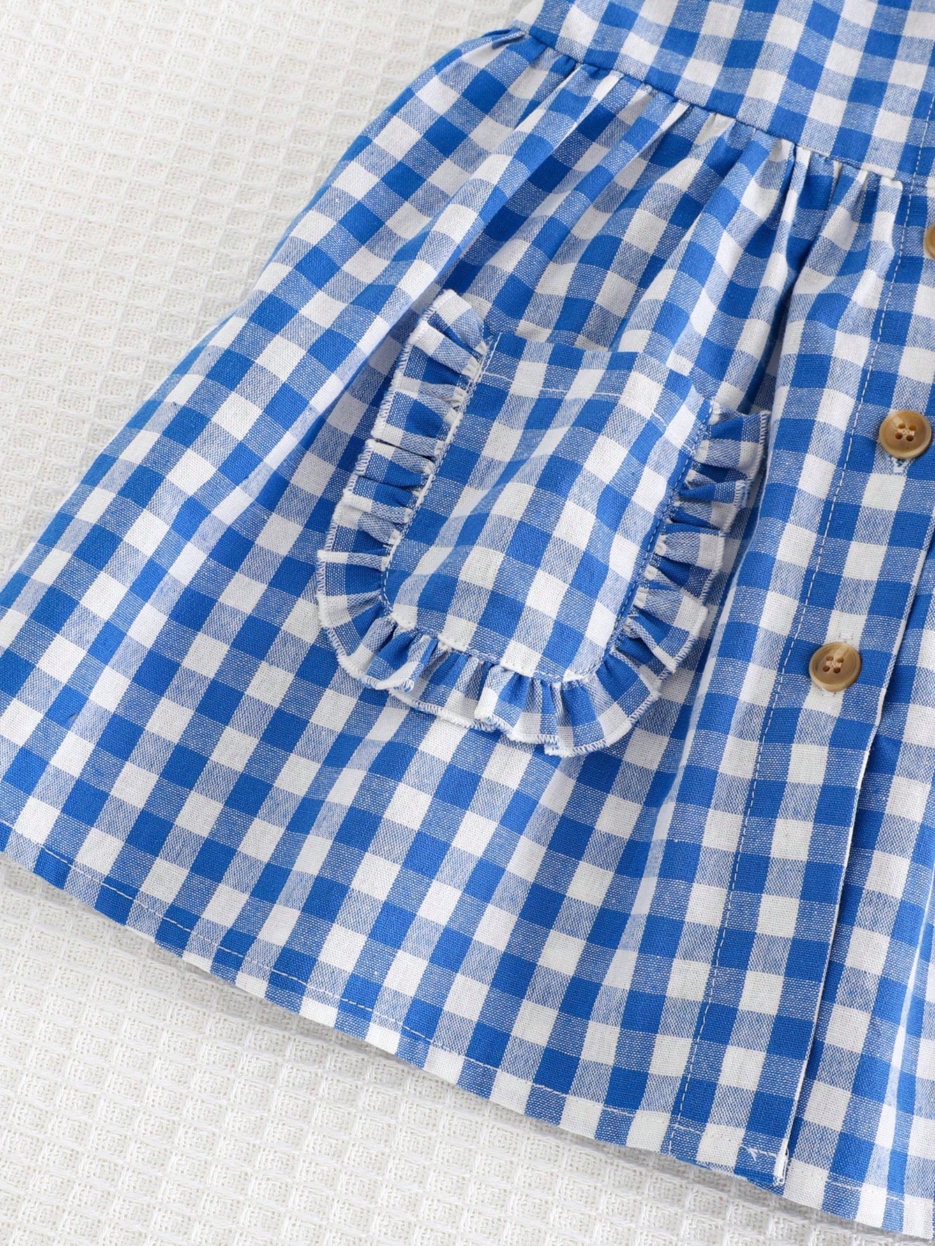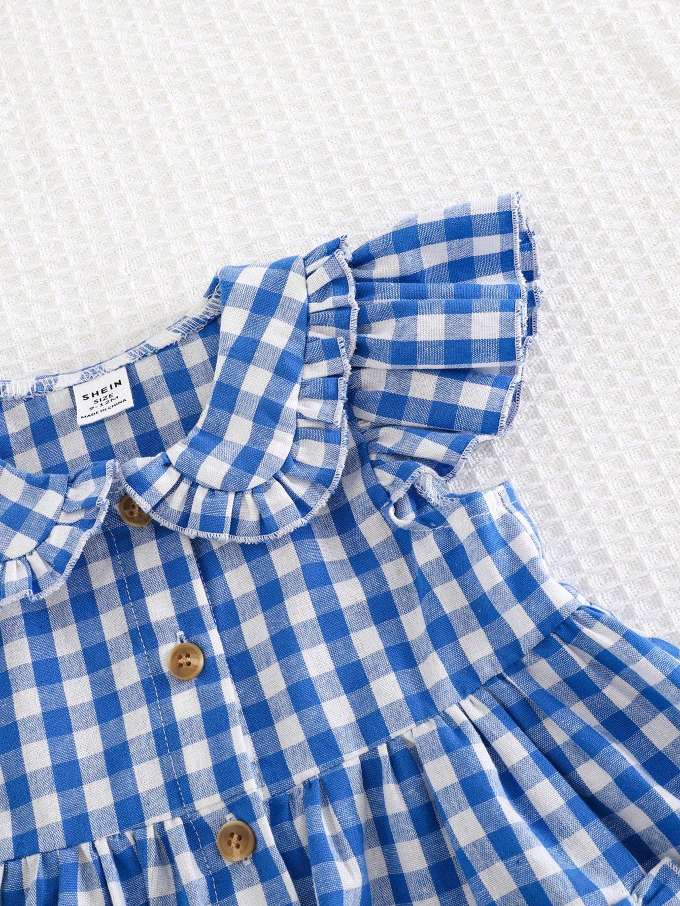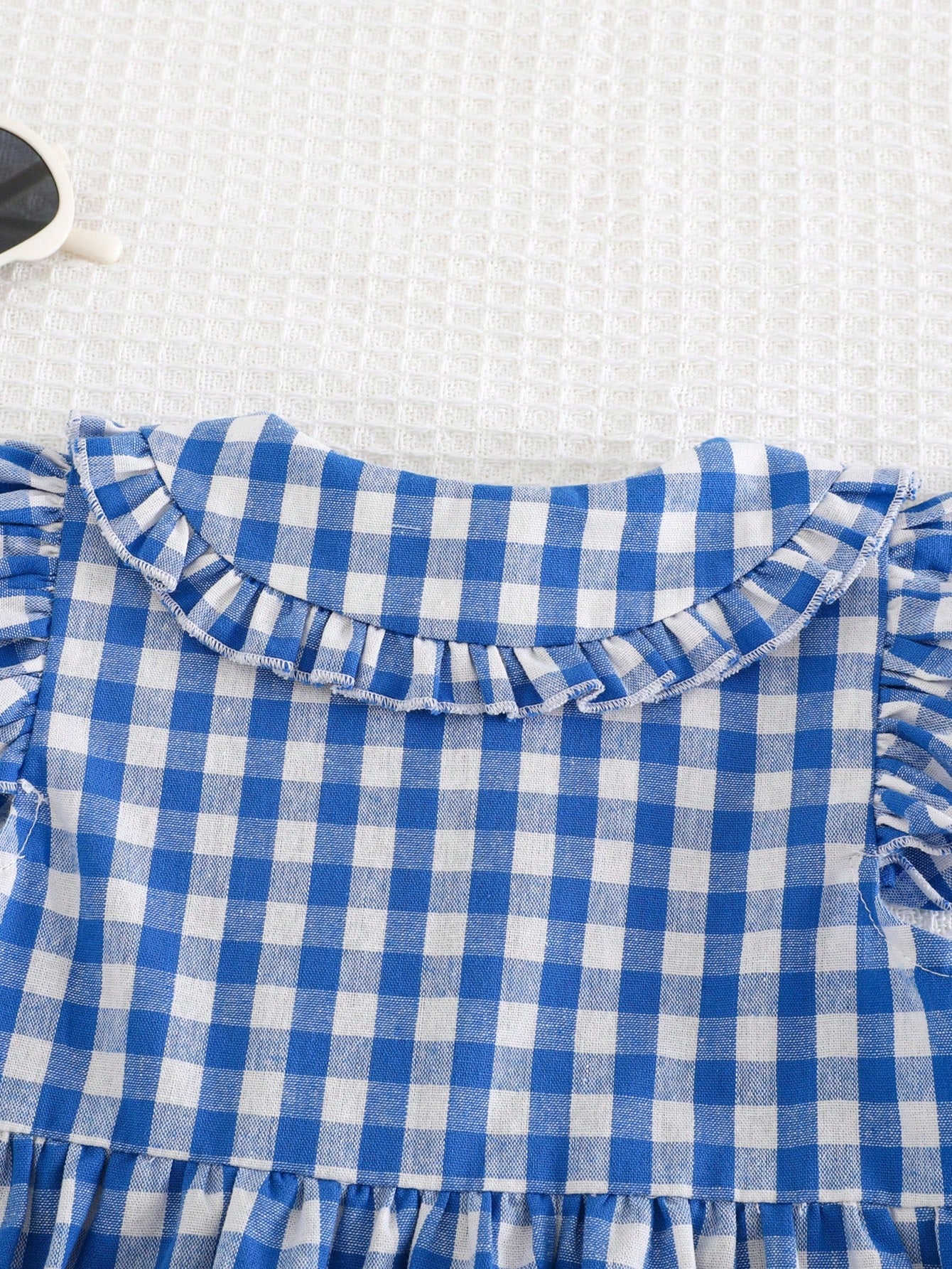 Cozy Pixies Baby Girl Plaid Ruffled Collar Cap Sleeve Cinched Waist Dress