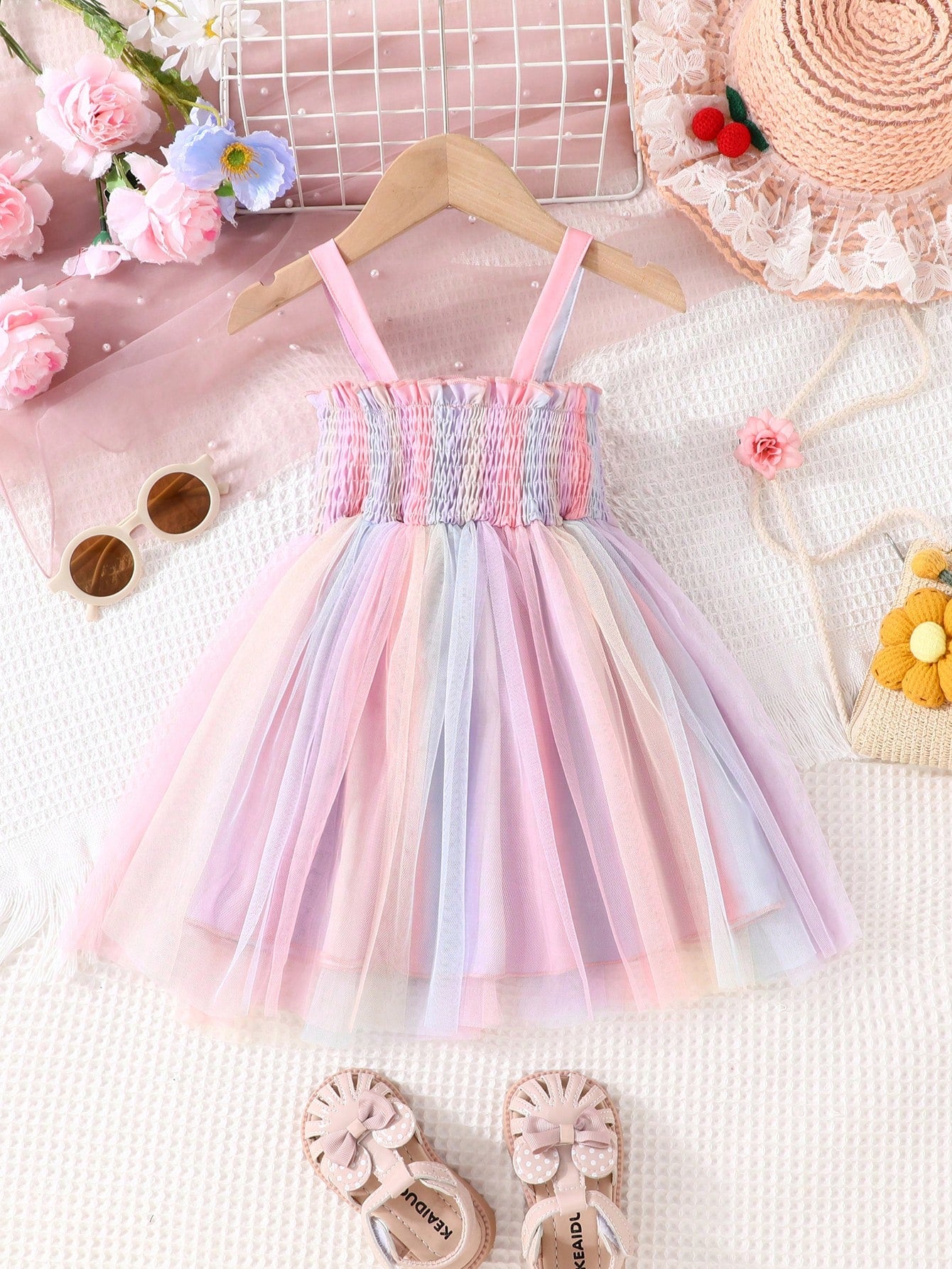kids New In Baby Girls' Pleated Ombre Net Yarn Halter Dress With Puff Dress For Spring/Summer