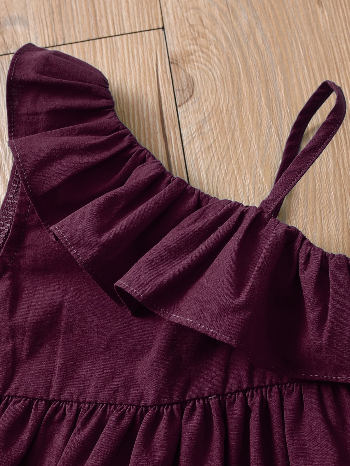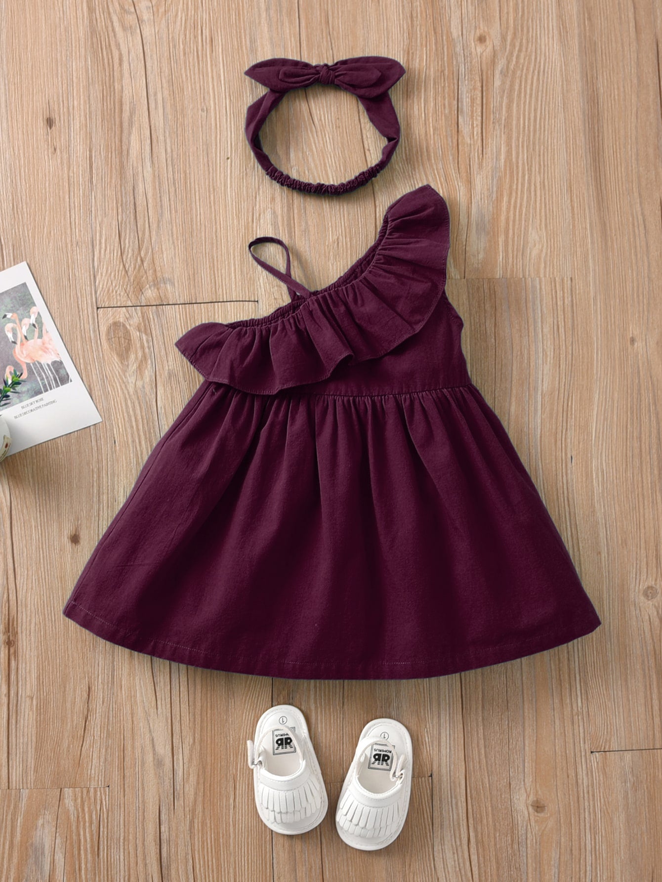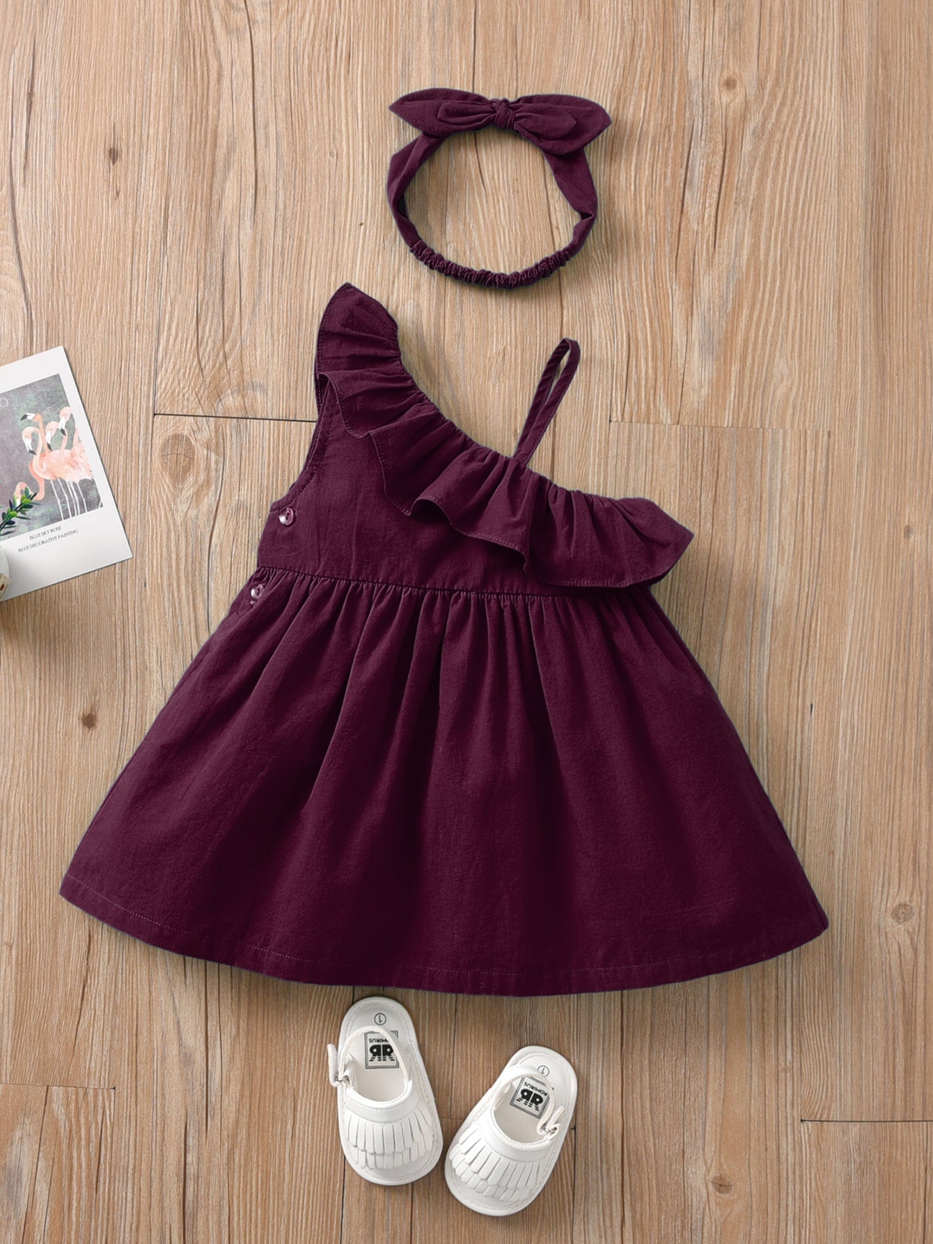 Baby Asymmetrical Neck Flounce Trim 1 Smock Dress & 1 Headband