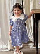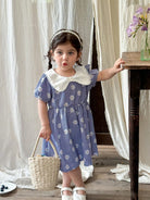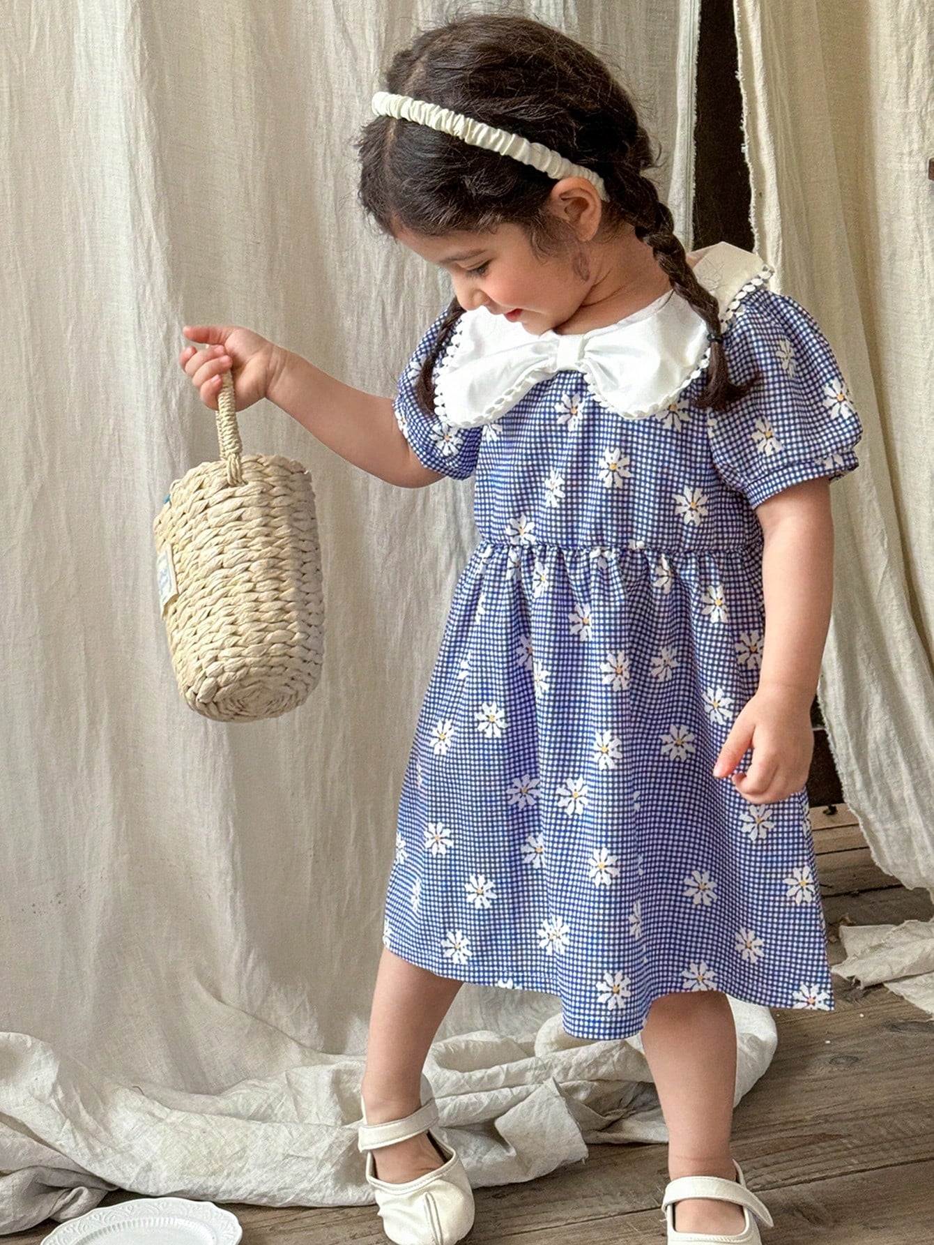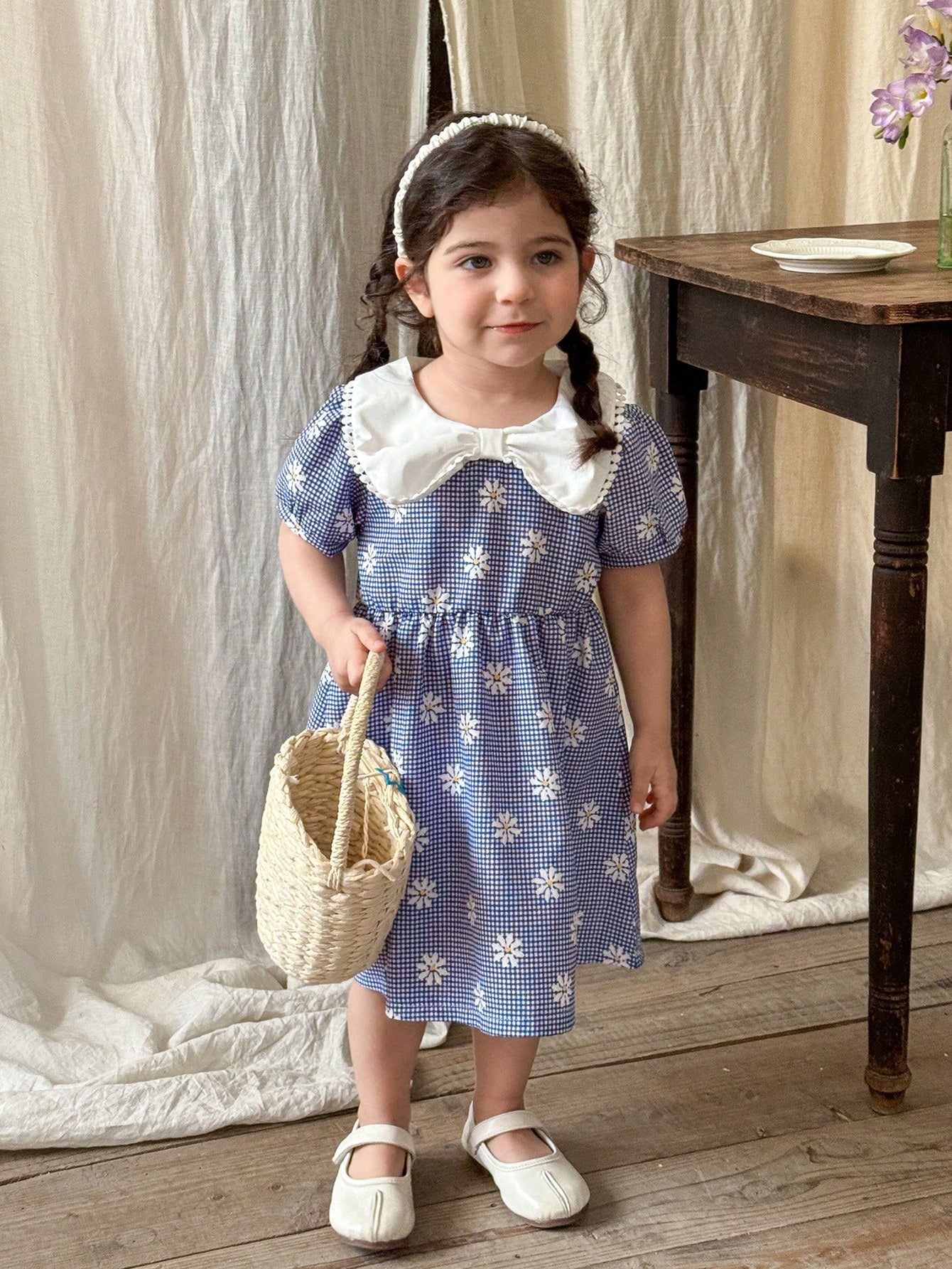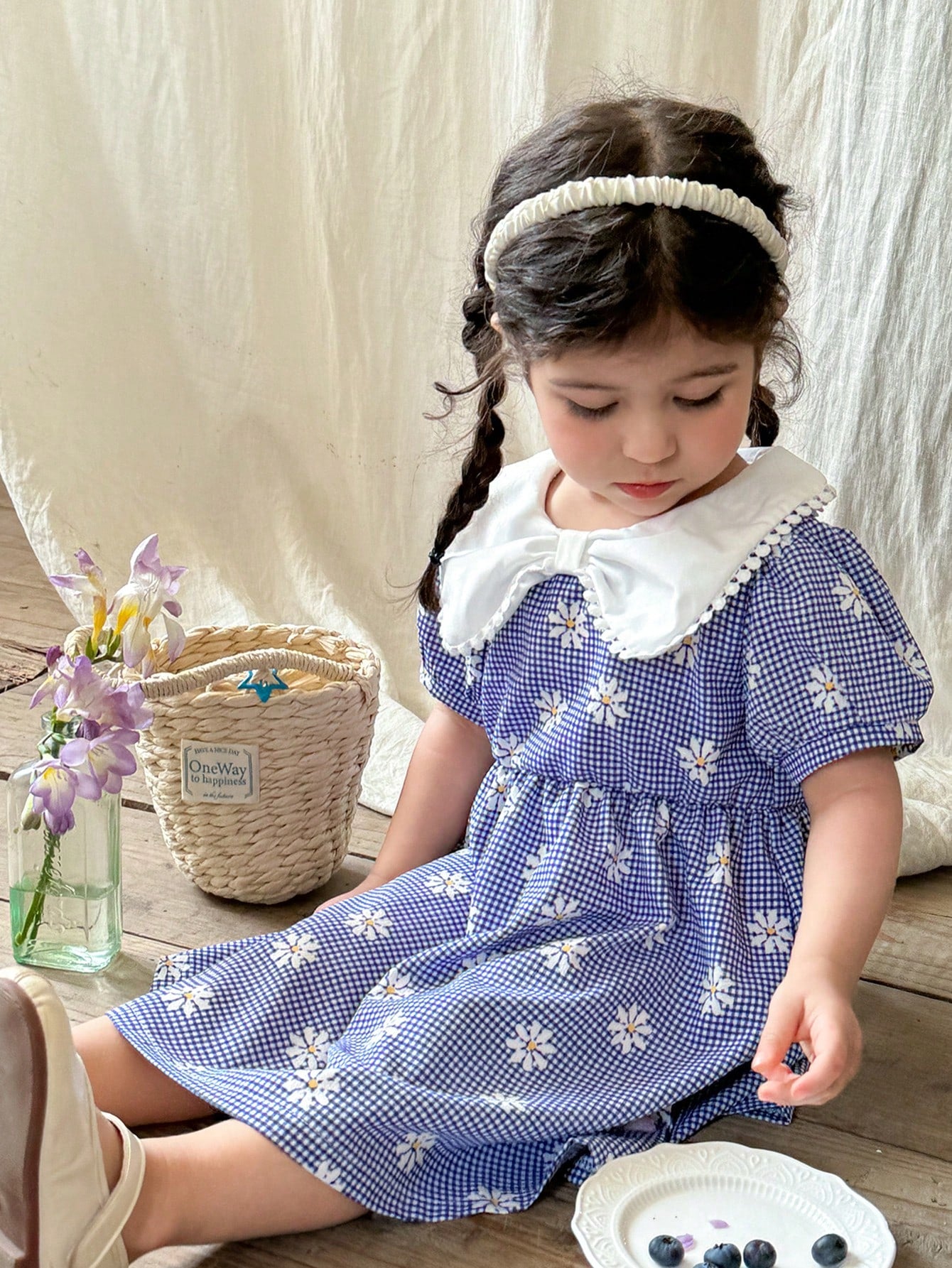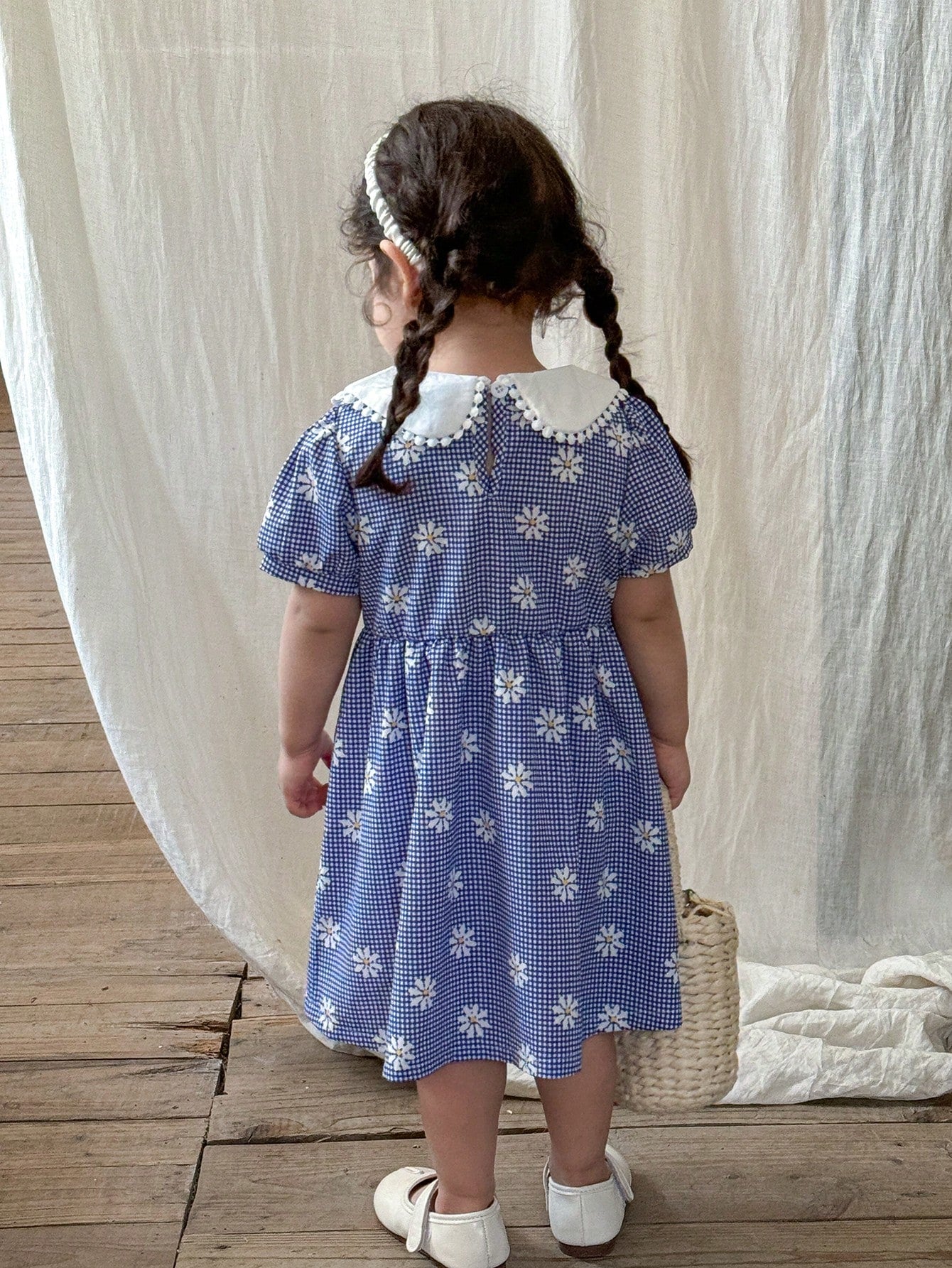 SHEIN Baby Girl Countryside Large Collar Small Daisy Puff Sleeve Dress