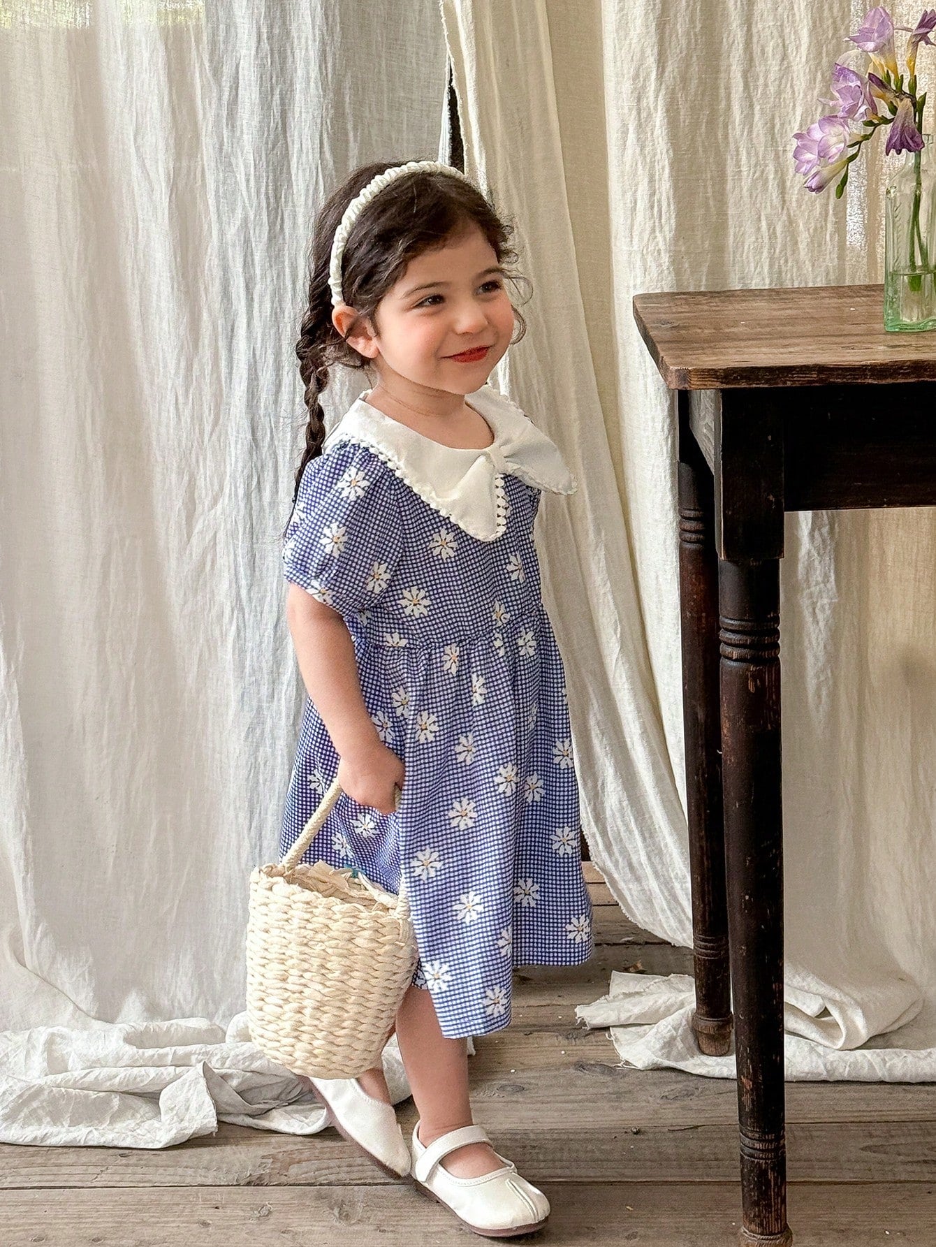 kids SHEIN Baby Girl Countryside Large Collar Small Daisy Puff Sleeve Dress