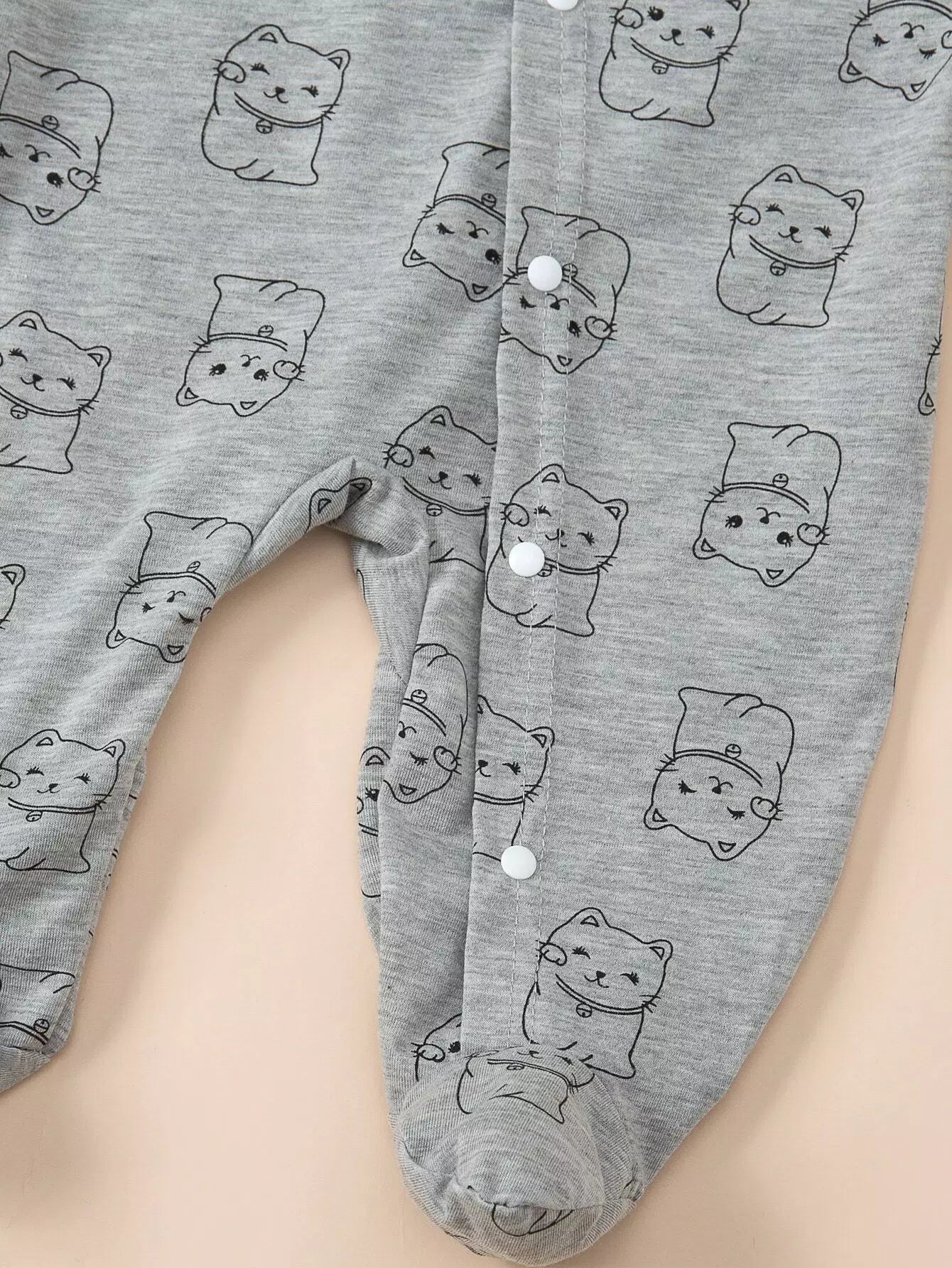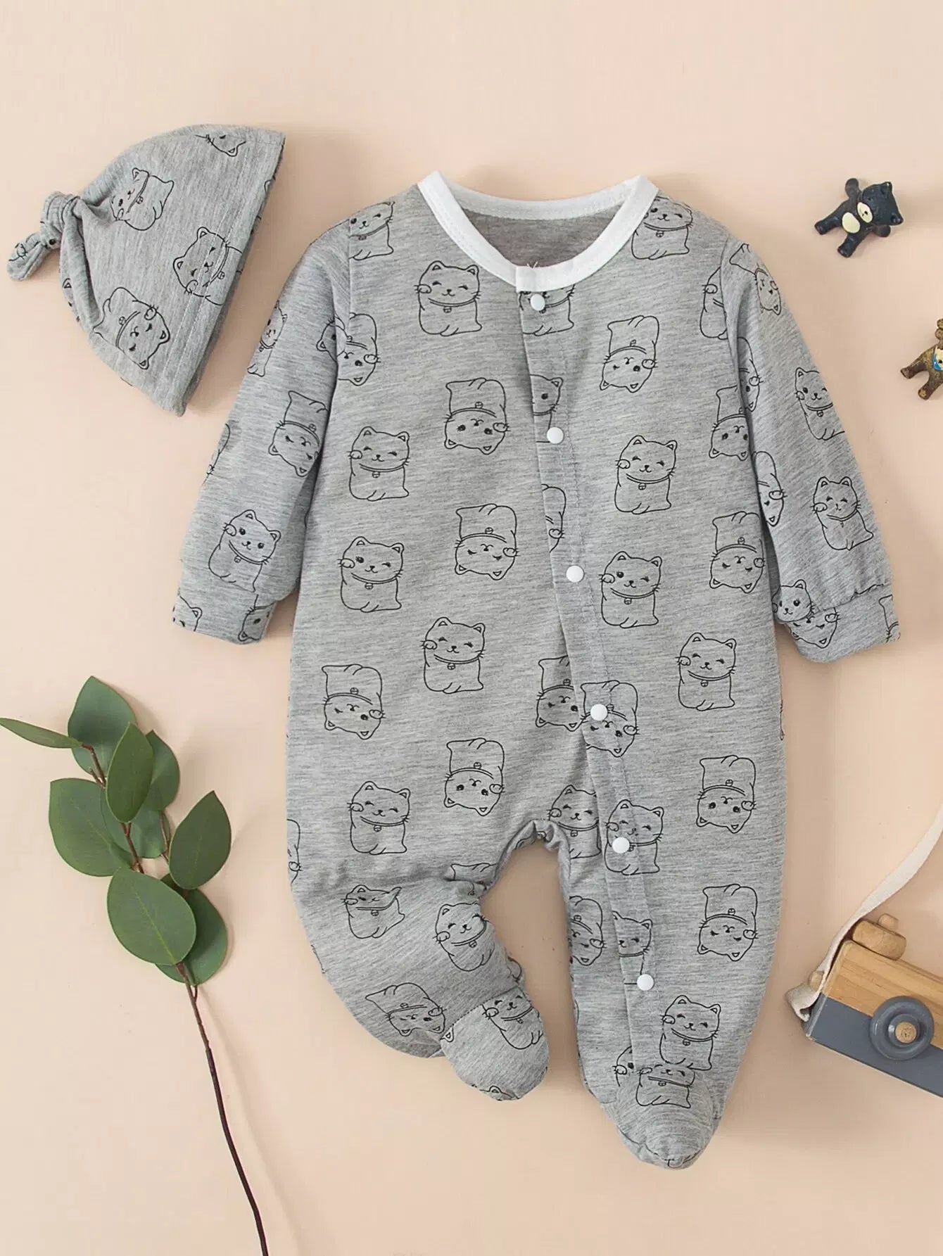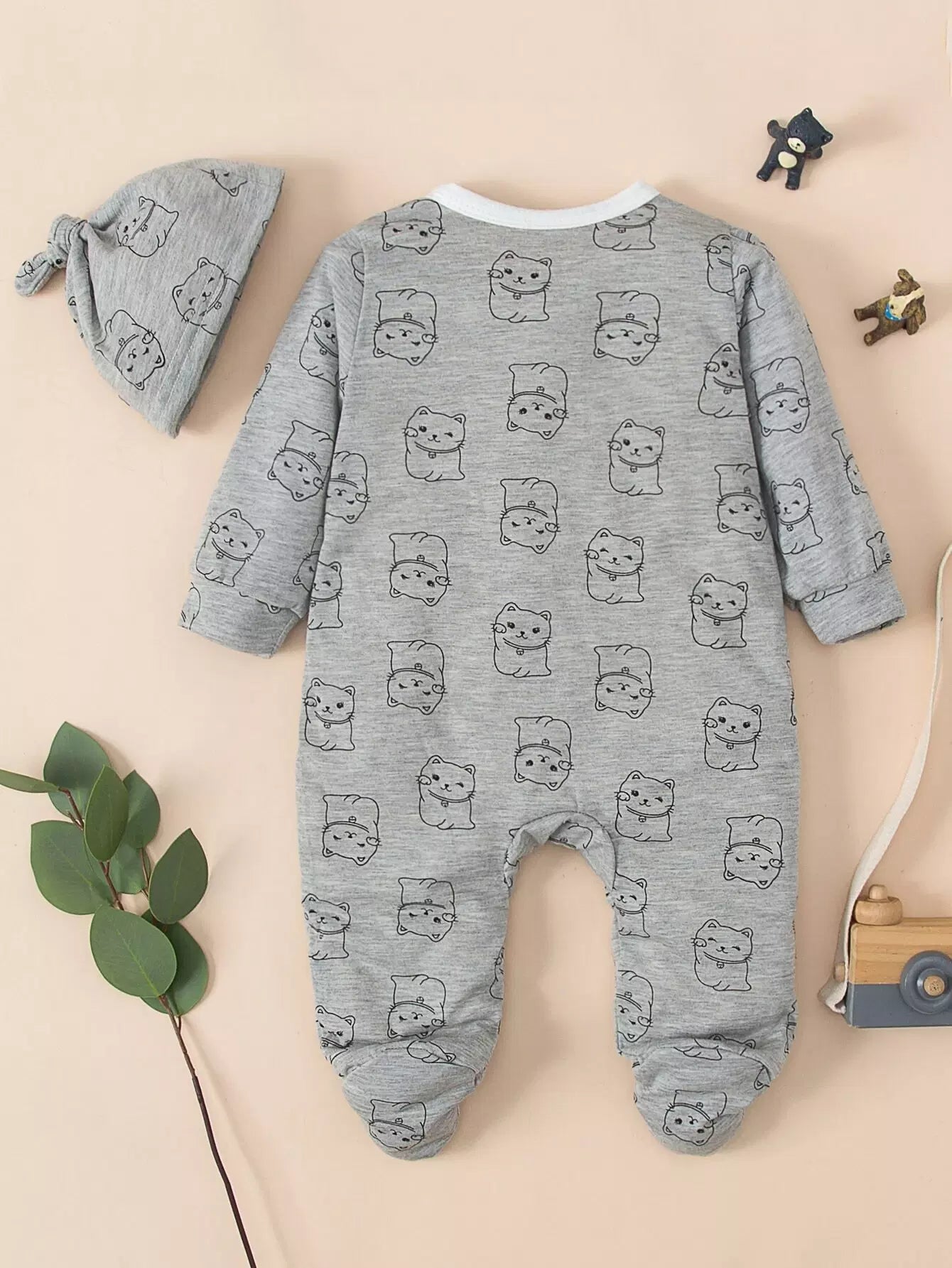 Baby All Over Cartoon Graphic Footed Sleep Jumpsuit With Hat