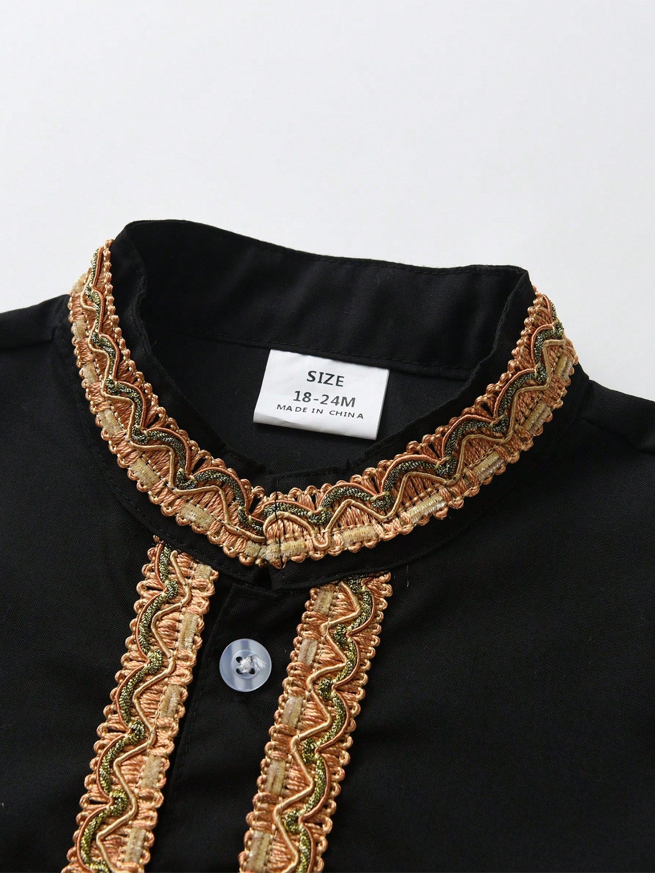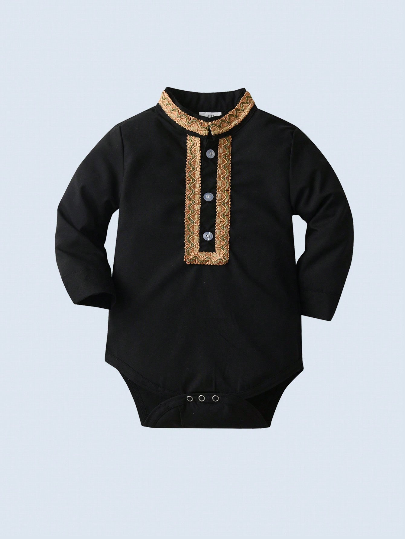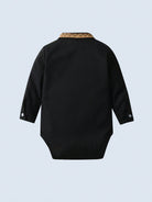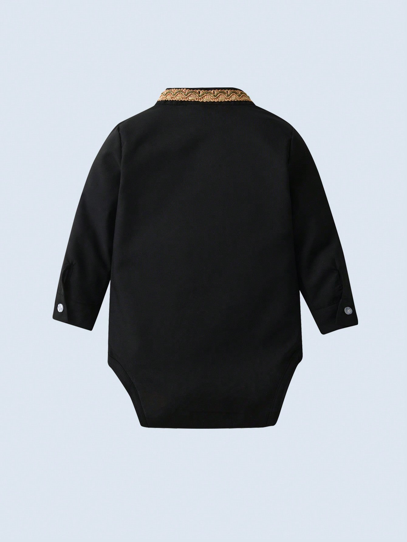 Baby Boy Romper Black Long Sleeve Half-Zipper Bodysuit For Celebration Occasions, Spring/Summer