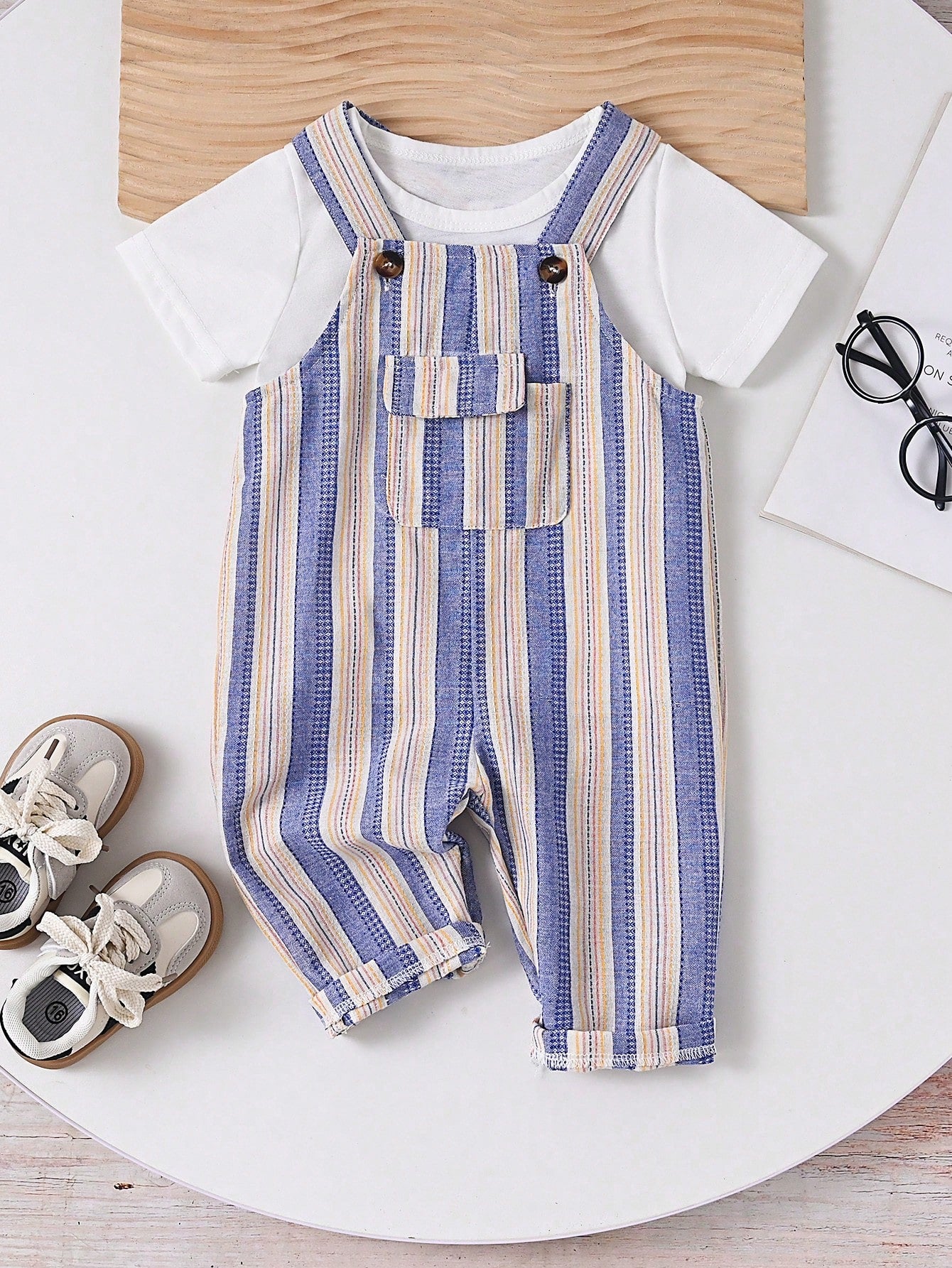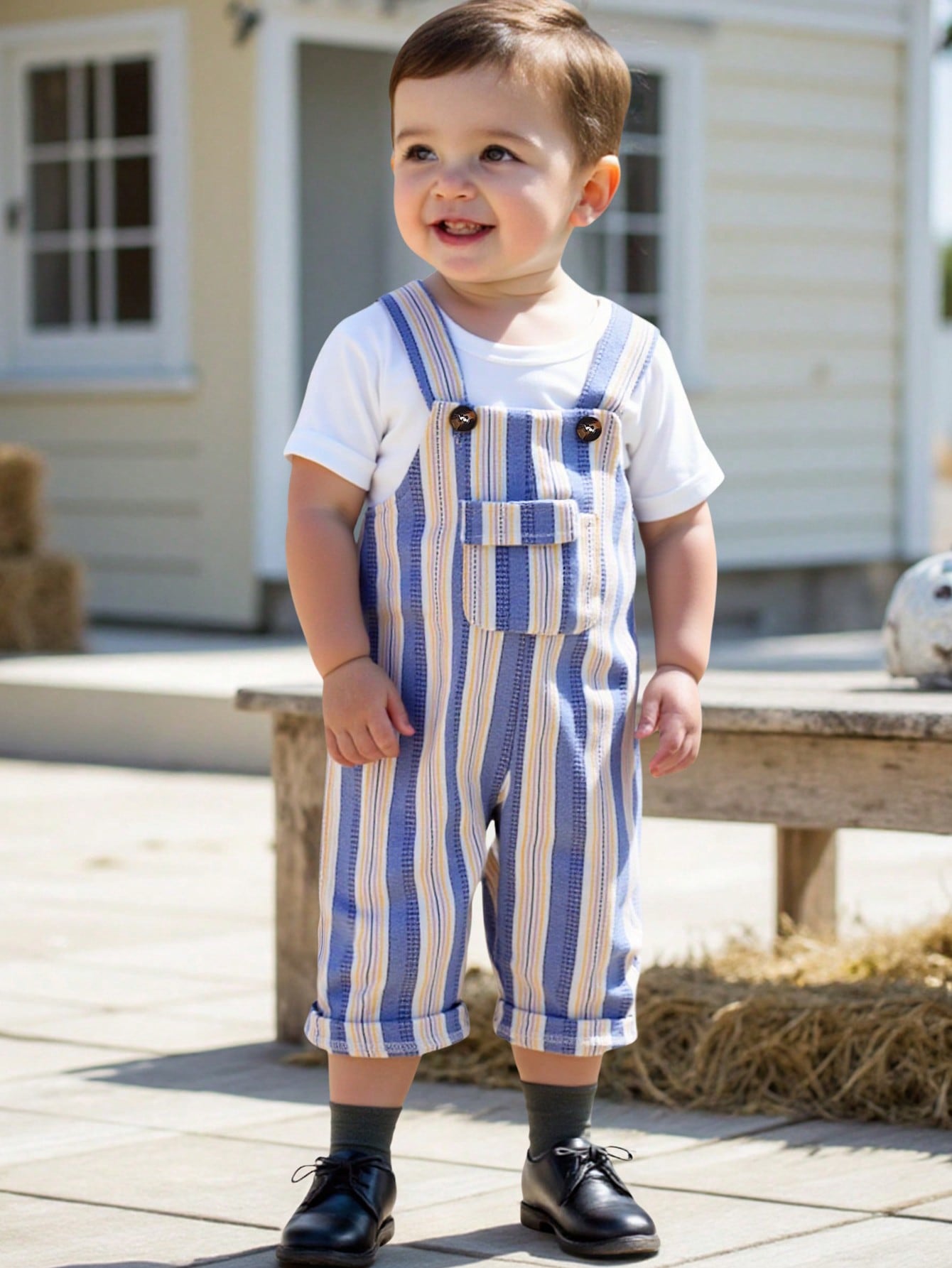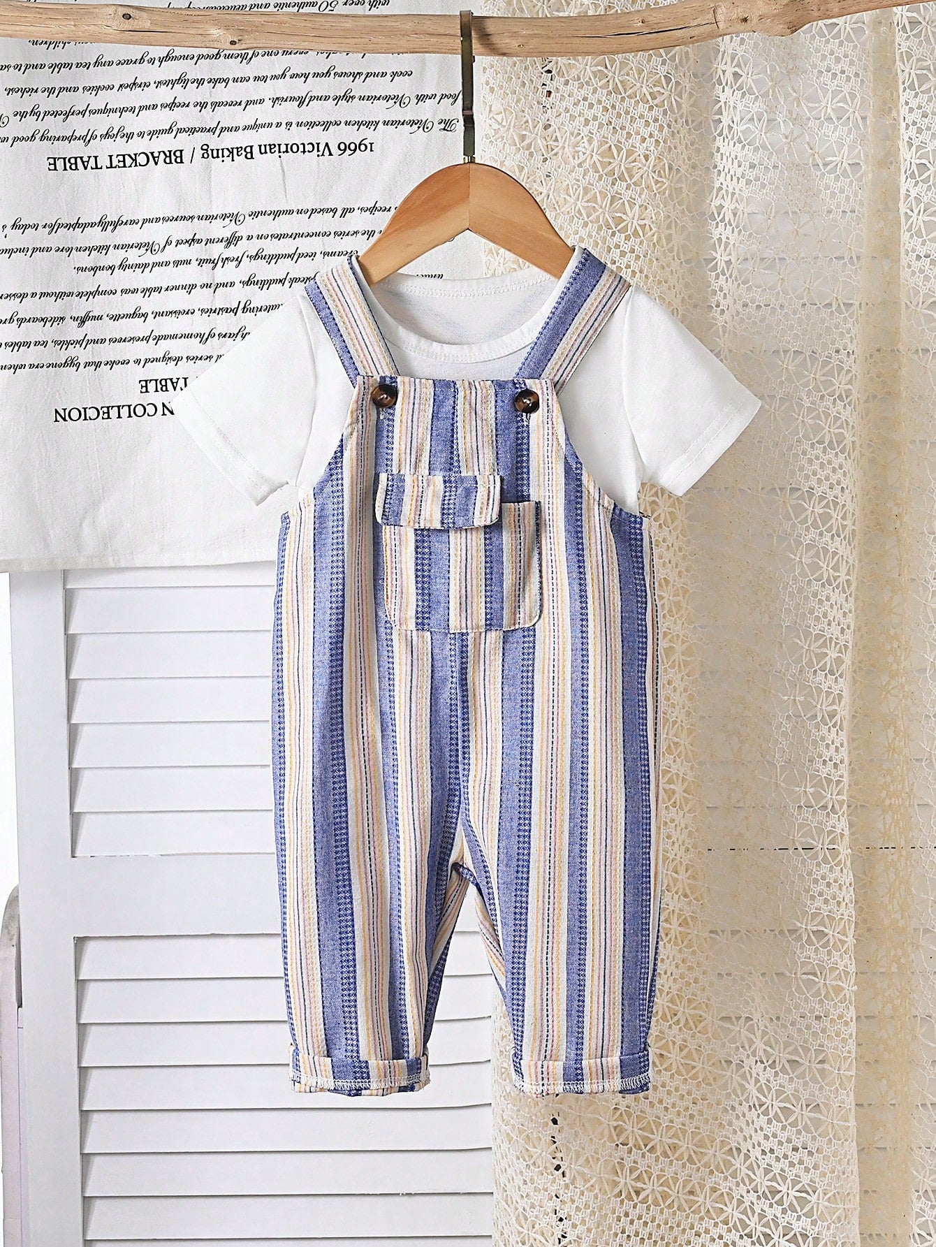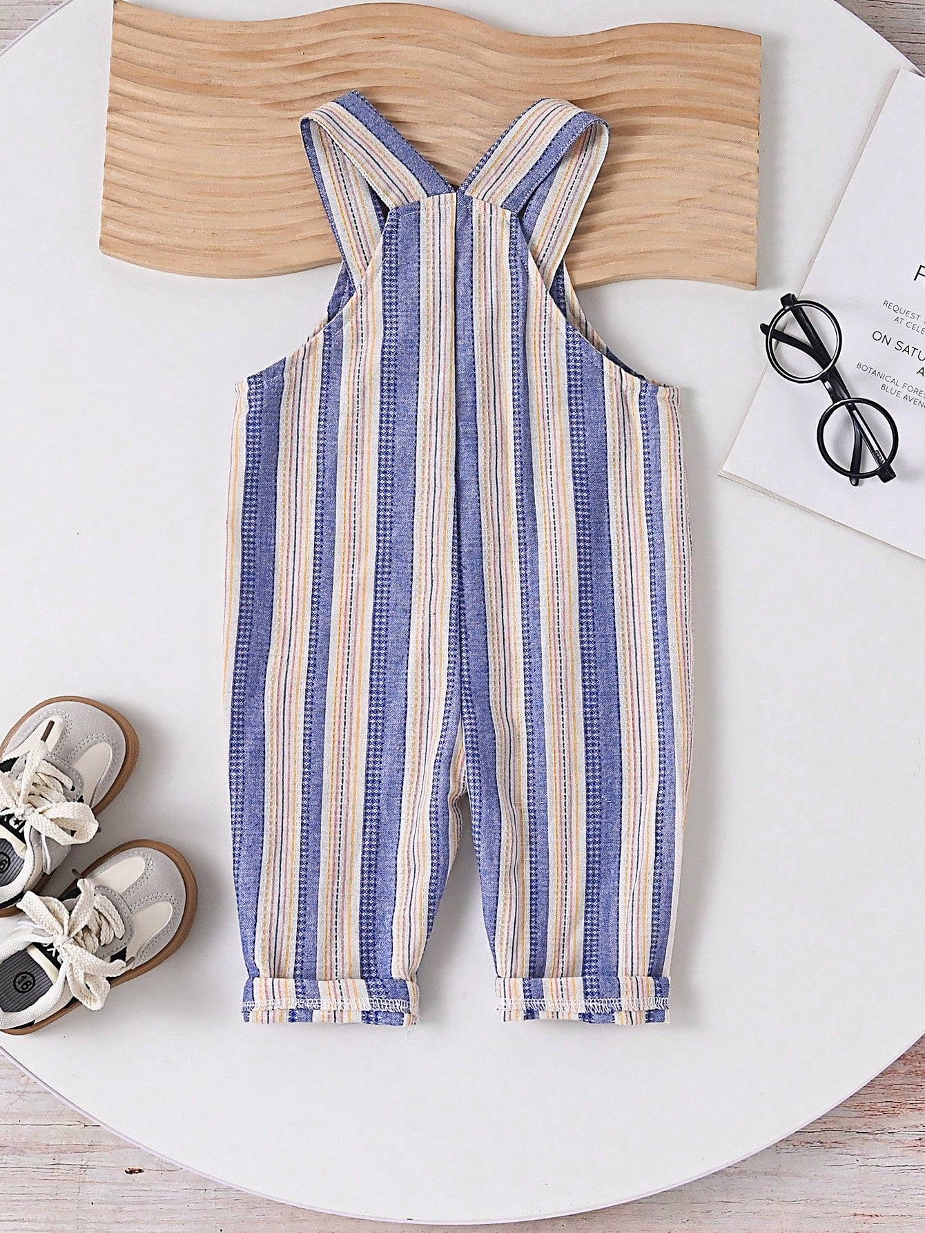 Baby Boys Lightweight Striped Bib Pants, Fashion Versatile, Suitable For Outdoor Play, Casual Homewear,