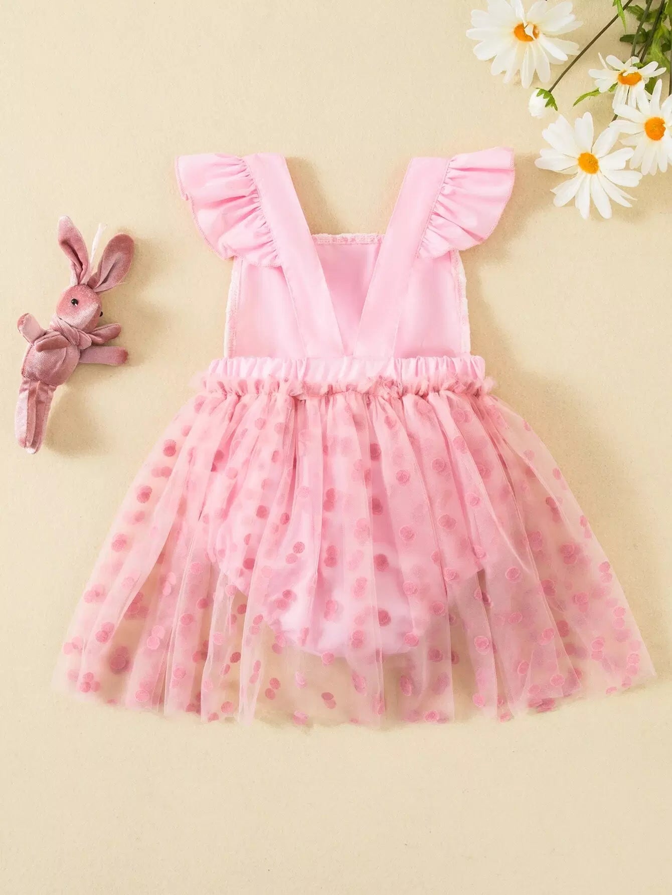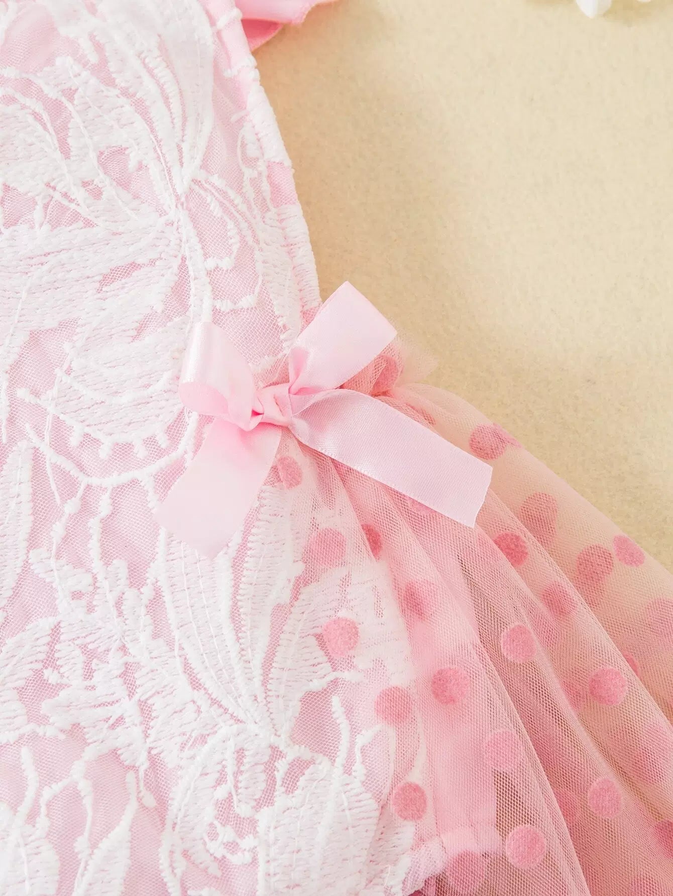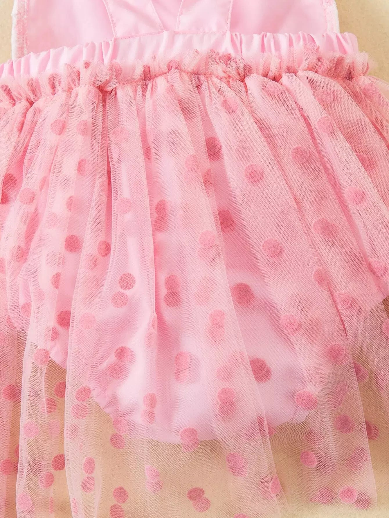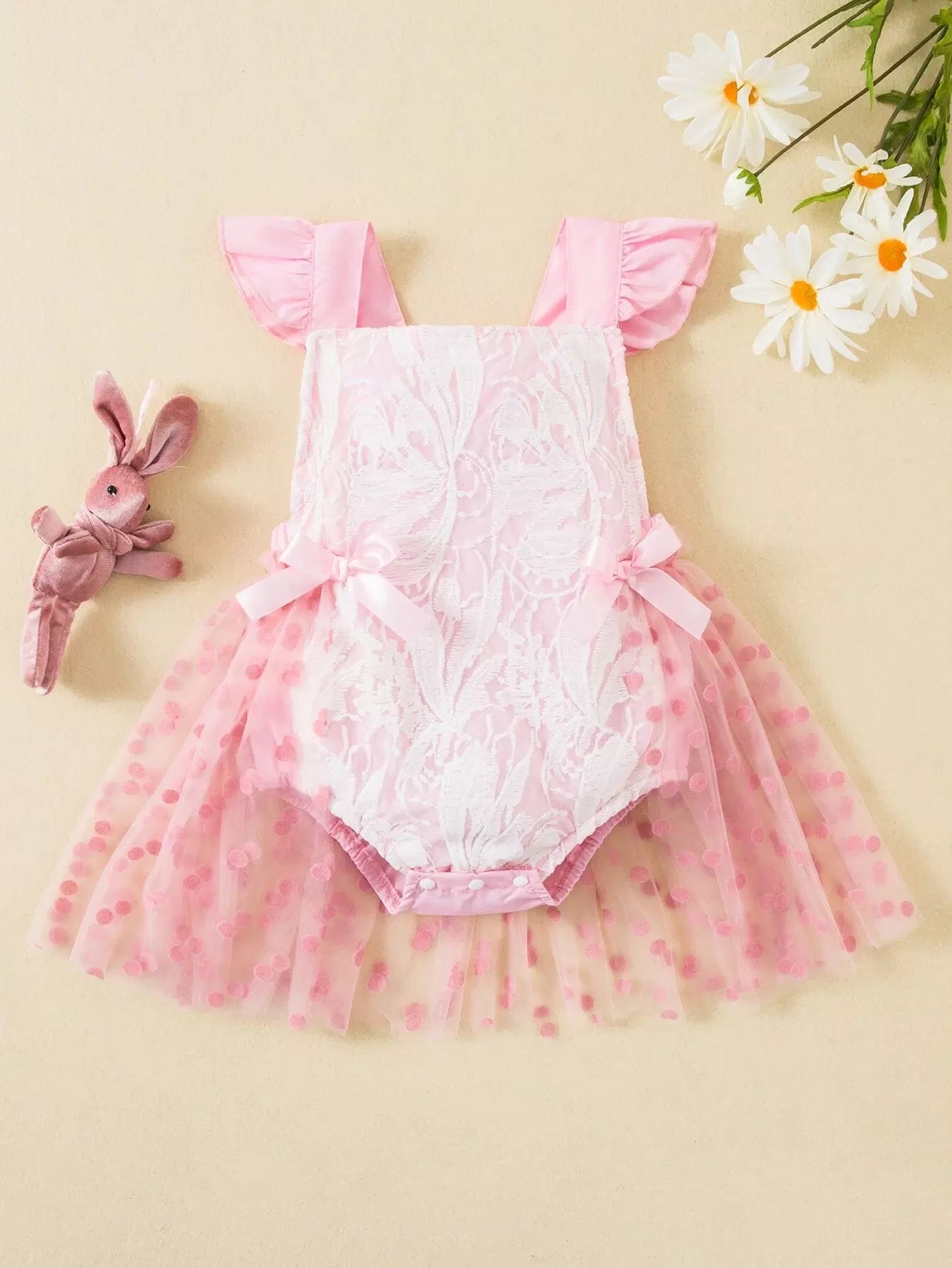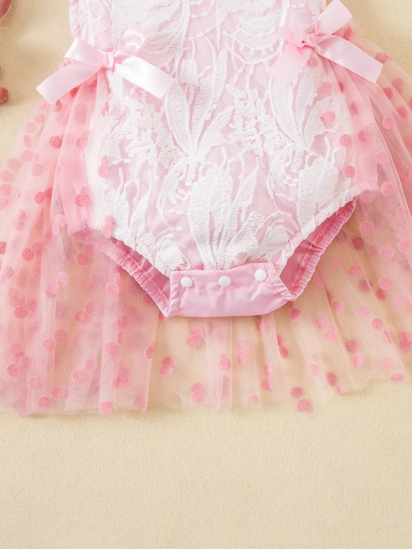 Baby Polka Dot Mesh Overlay Ruffle Trim Bow Front Bodysuit