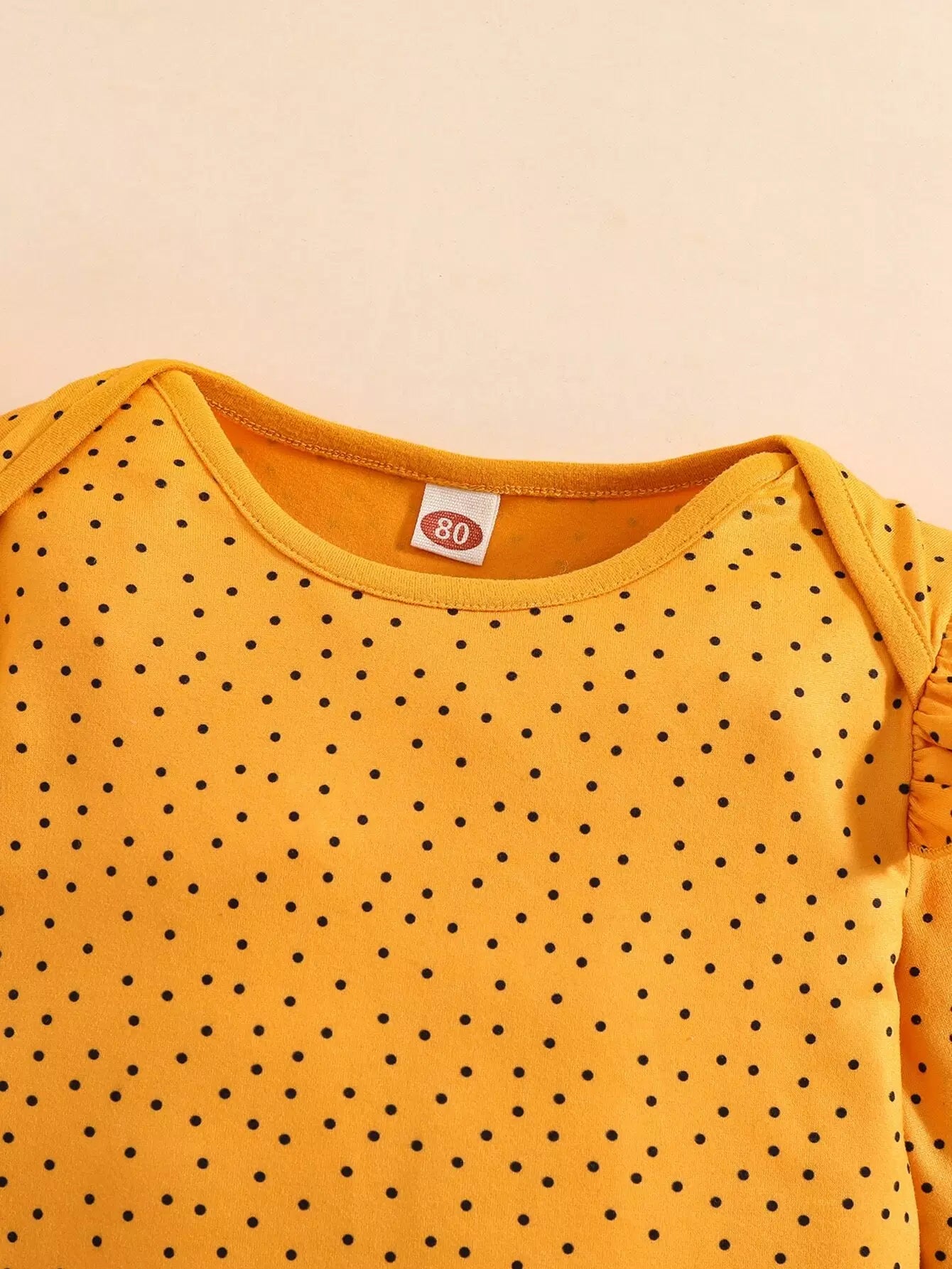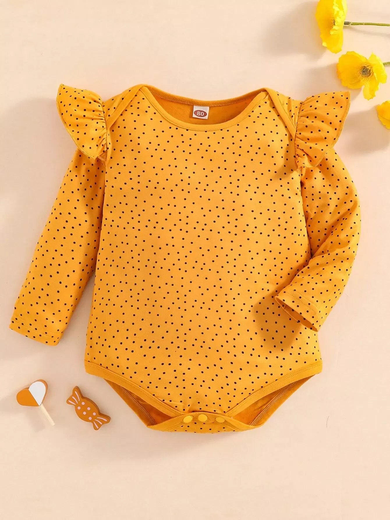 Baby Polka Dot Print Ruffle Trim Bodysuit