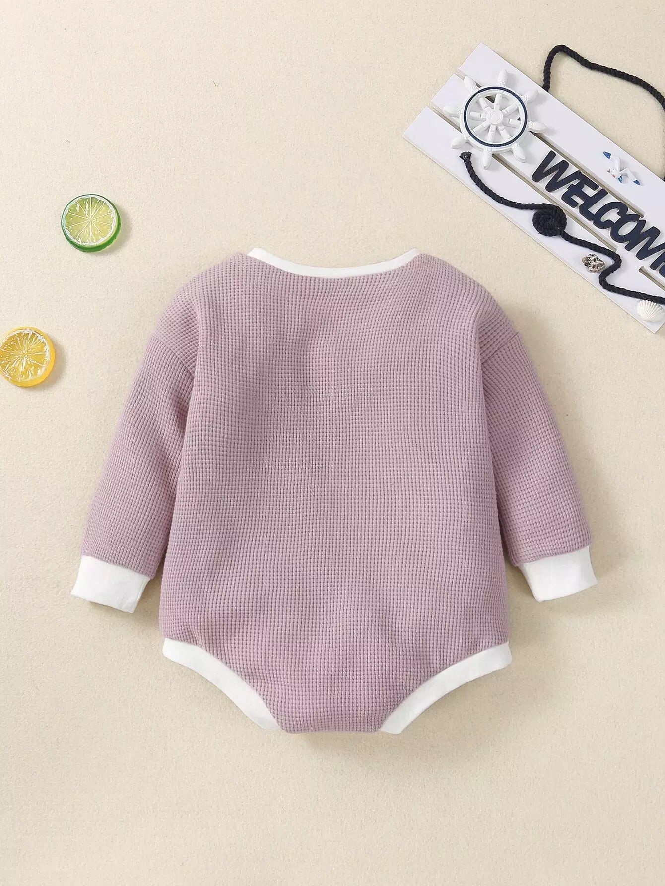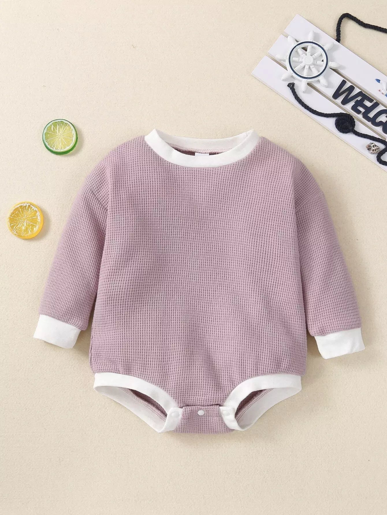 Baby Waffle Knit Contrast Trim Drop Shoulder Bodysuit