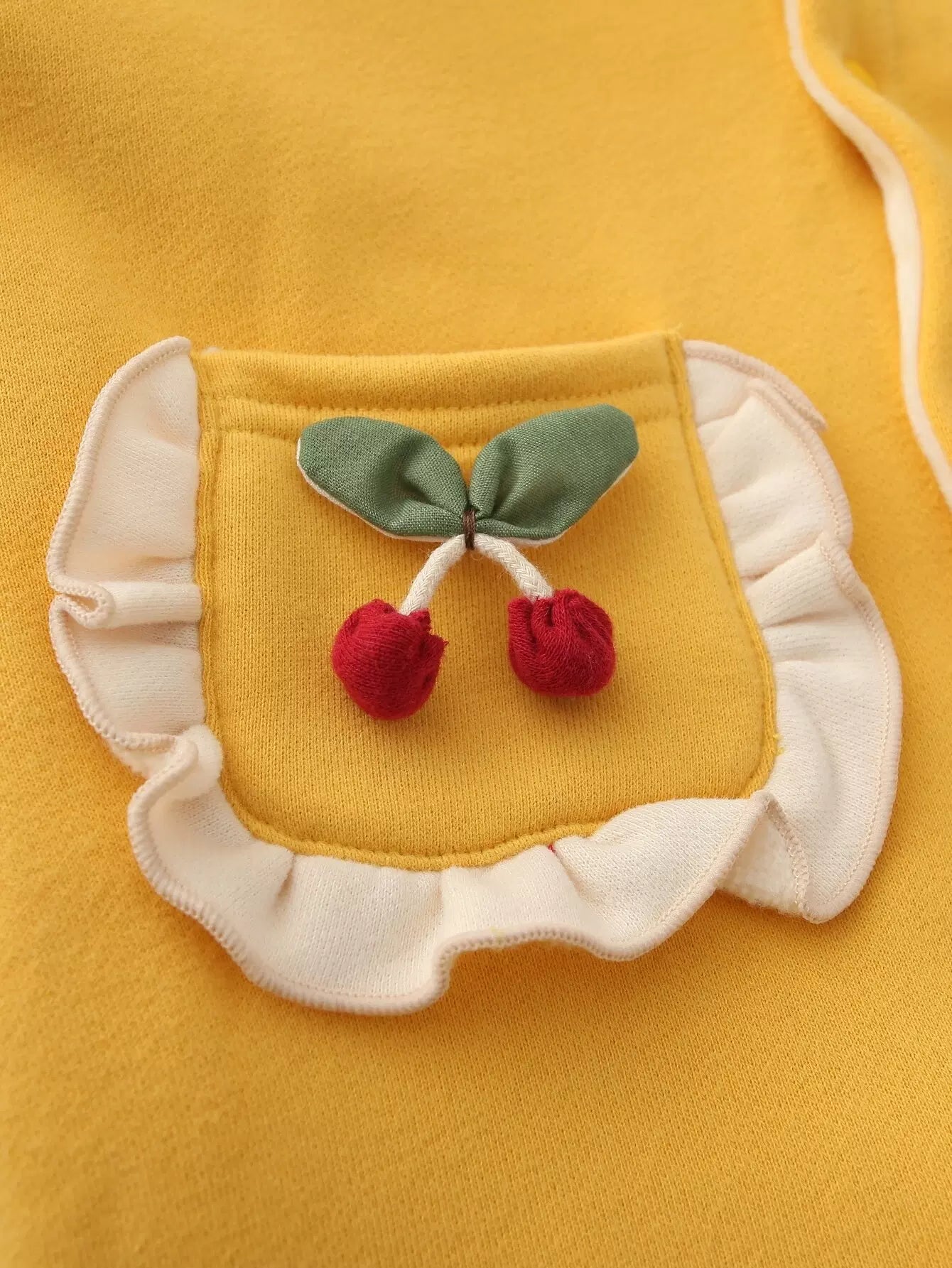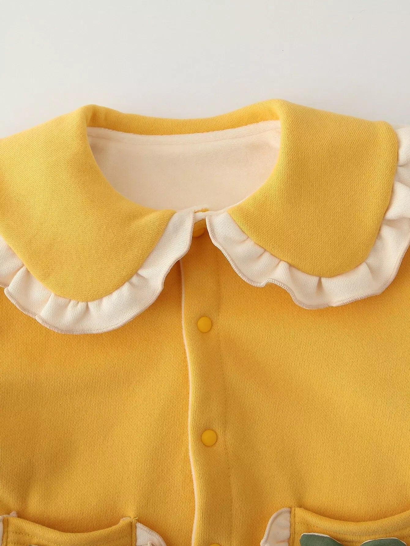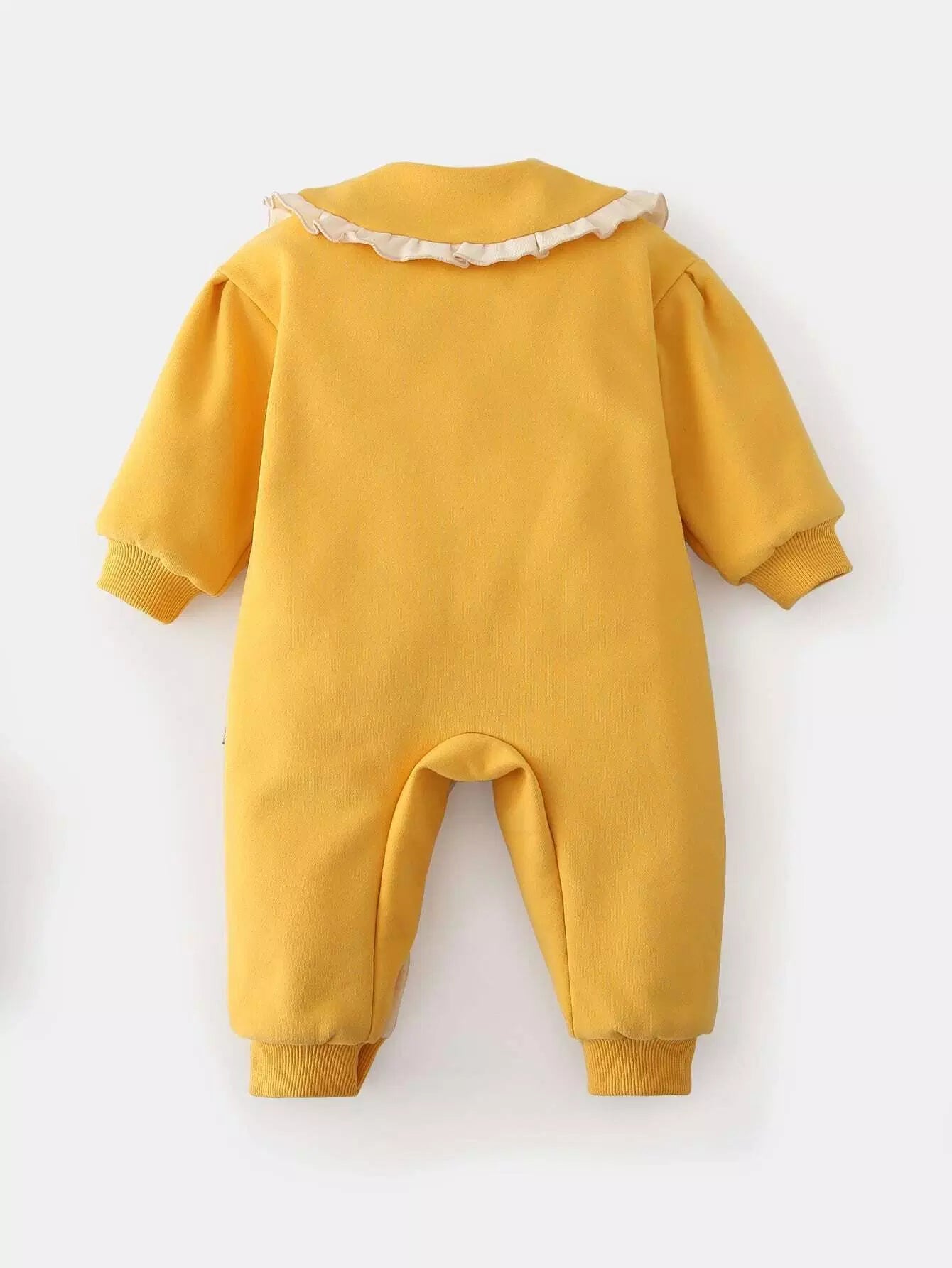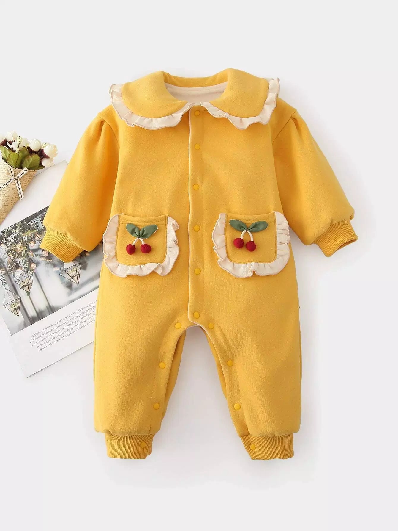 Cherry Patched Doll Collar Thermal Lined Jumpsuit