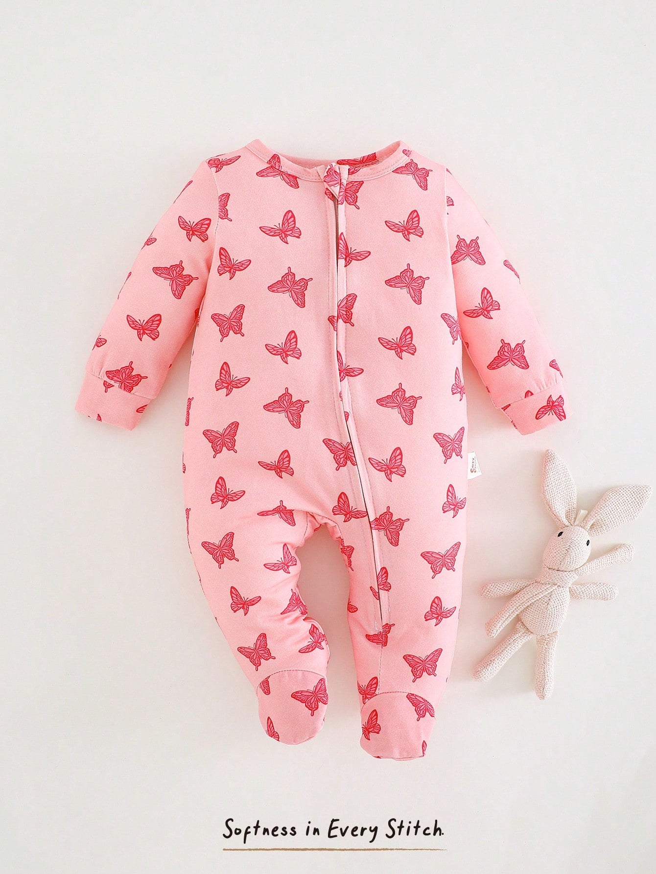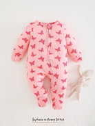 Cozy Pixies Newborn Baby Girl Cute Bow Print Knitted Soft Casual Crew Neck Long Sleeve Footed Romper,