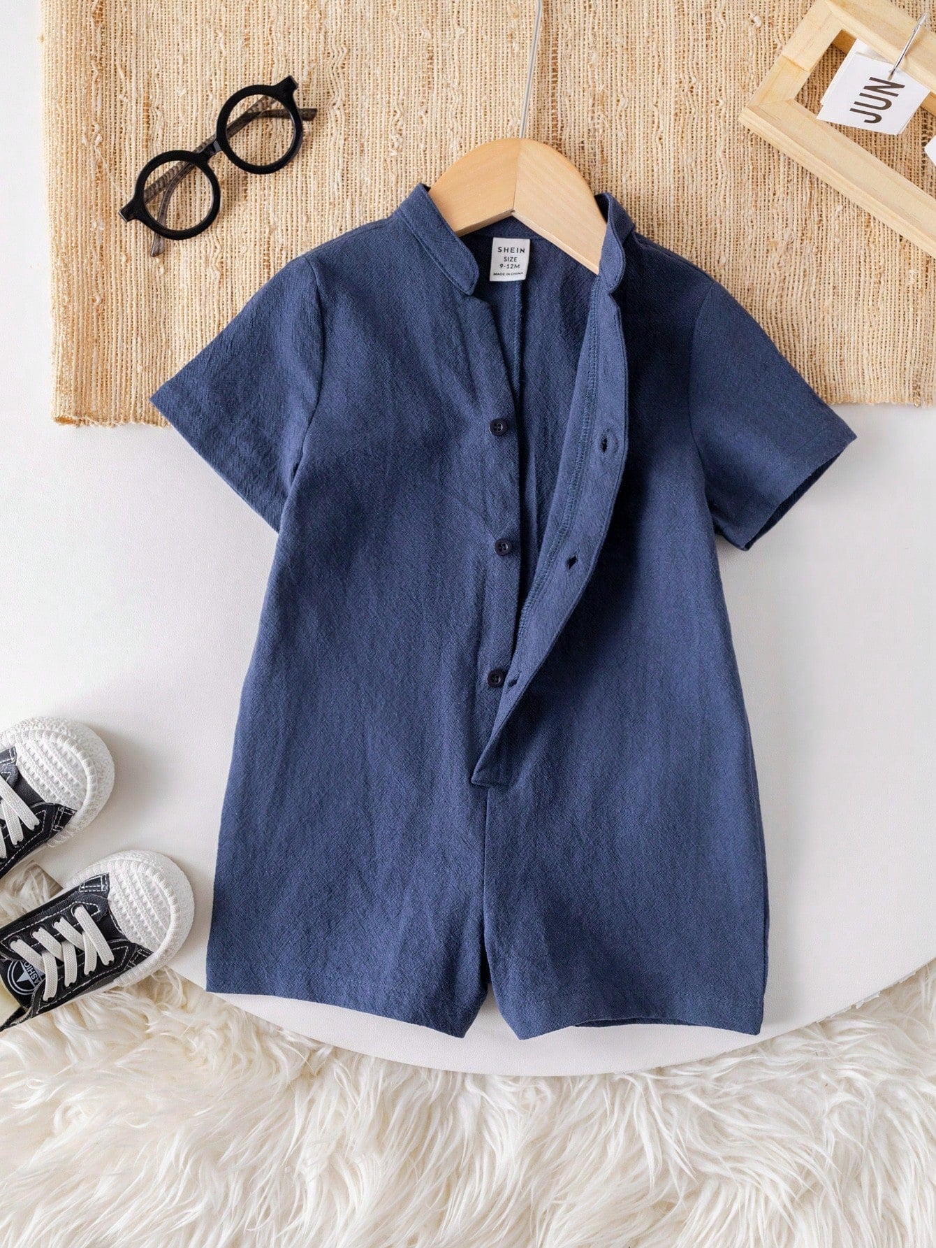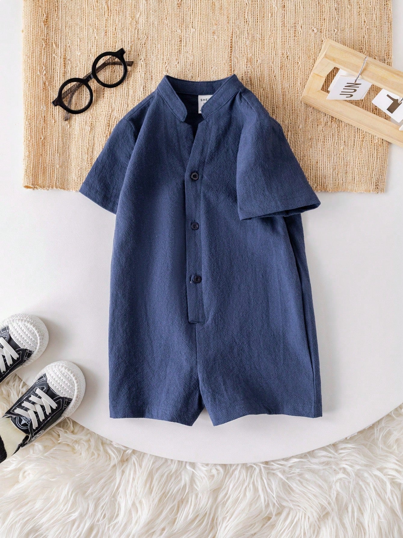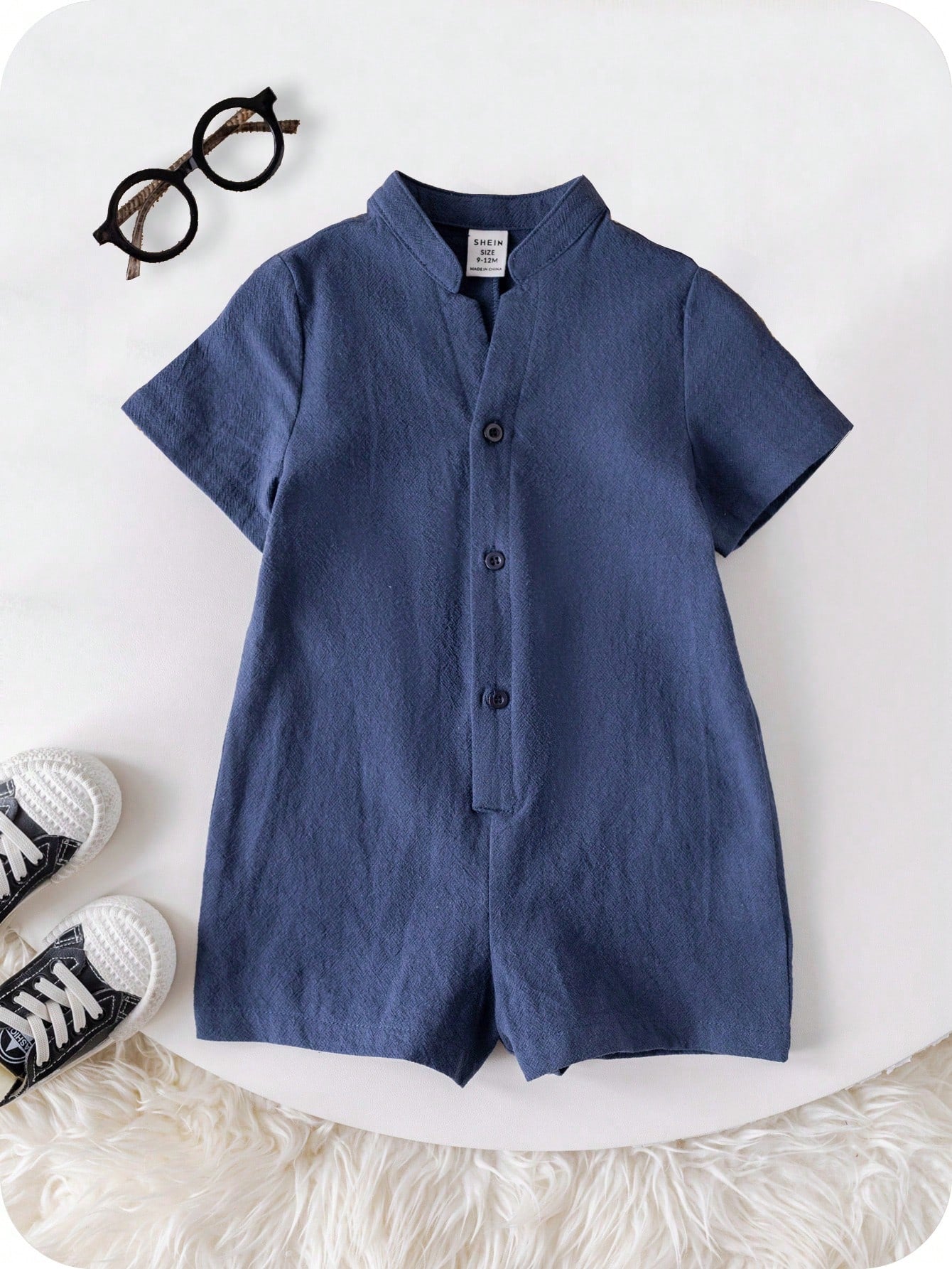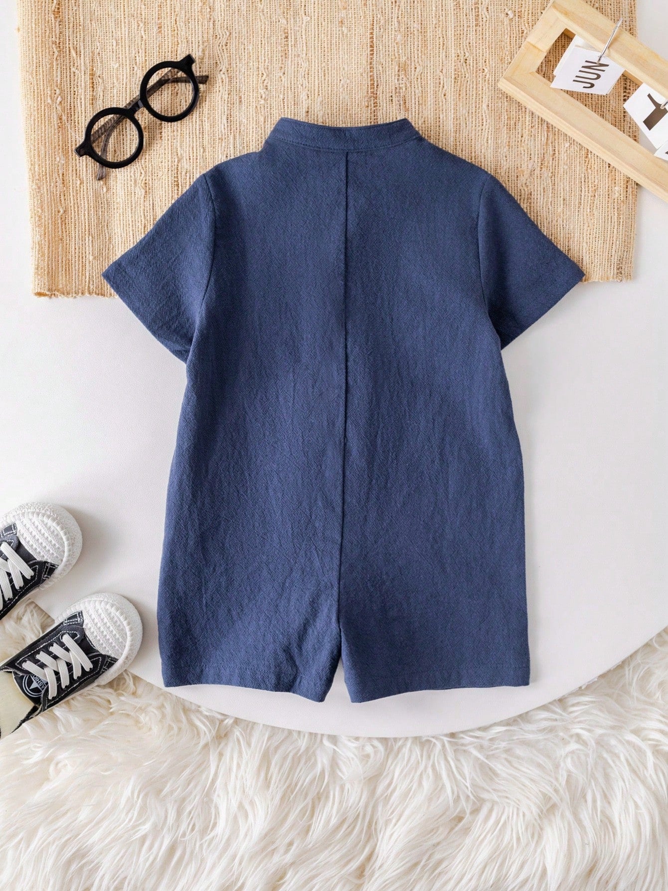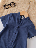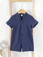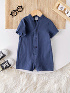 Cute Cartoon Short Sleeve Romper With Stand Collar, Suitable For Toddler Boys/Girls, Spring/Summer
