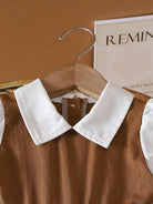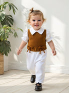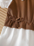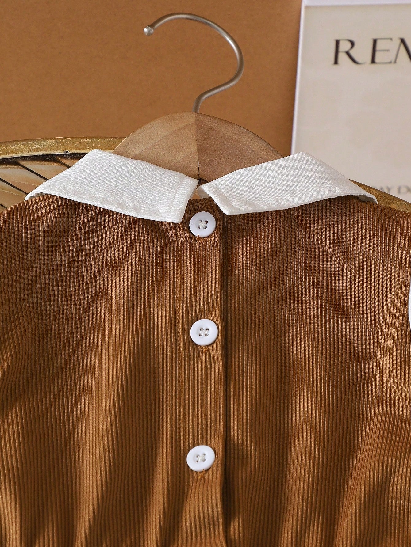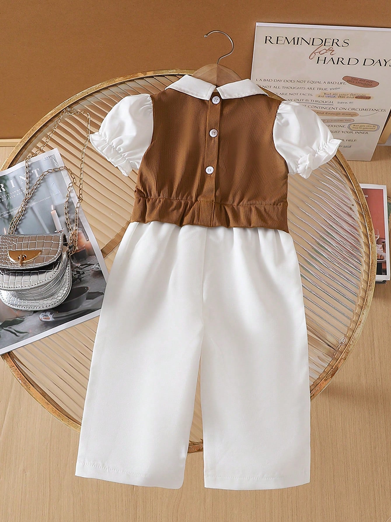 kids Infant Baby Girls Adorable Collar Spliced Knitted Bubble Short Sleeve White Romper With Long Pants