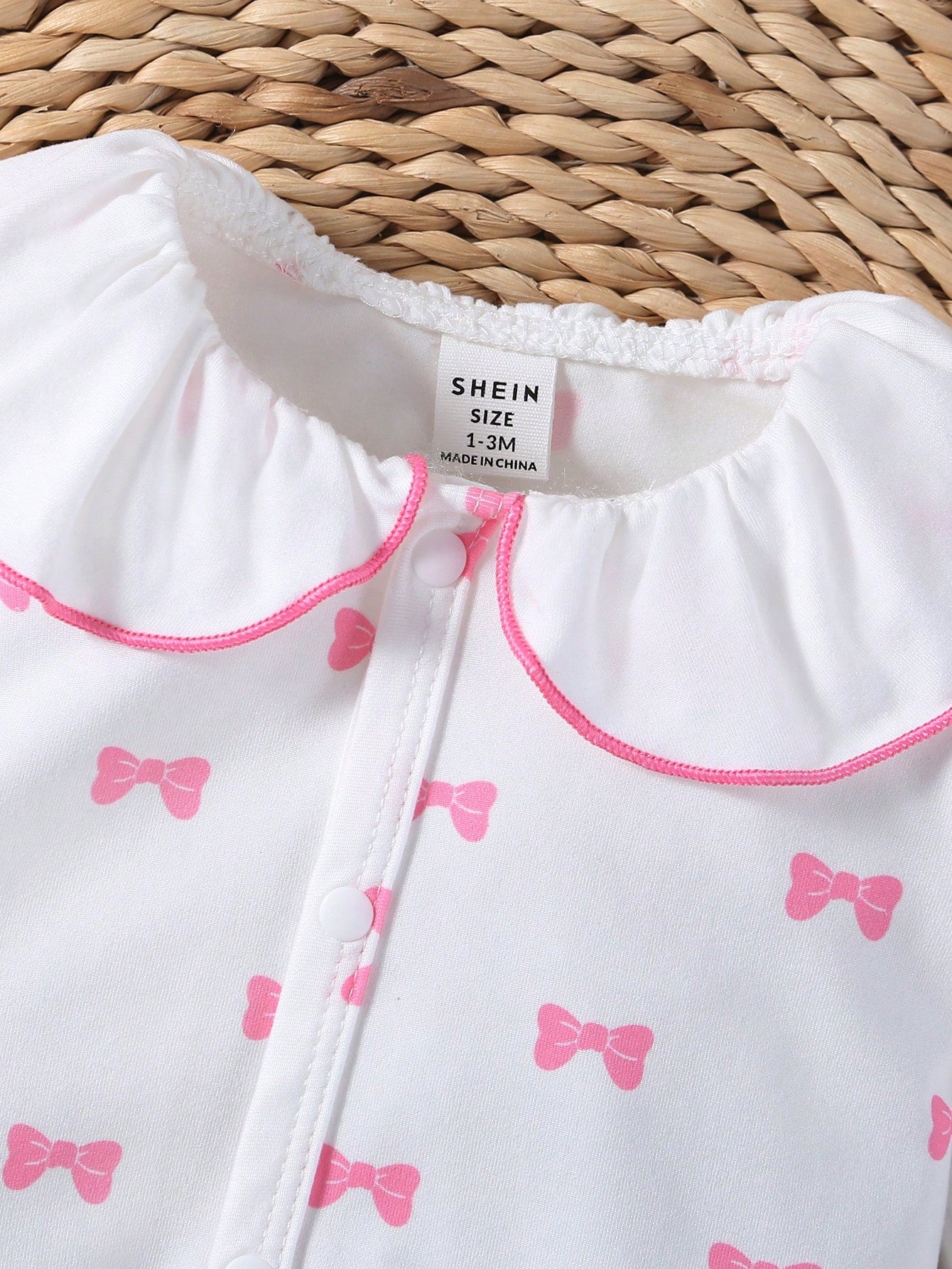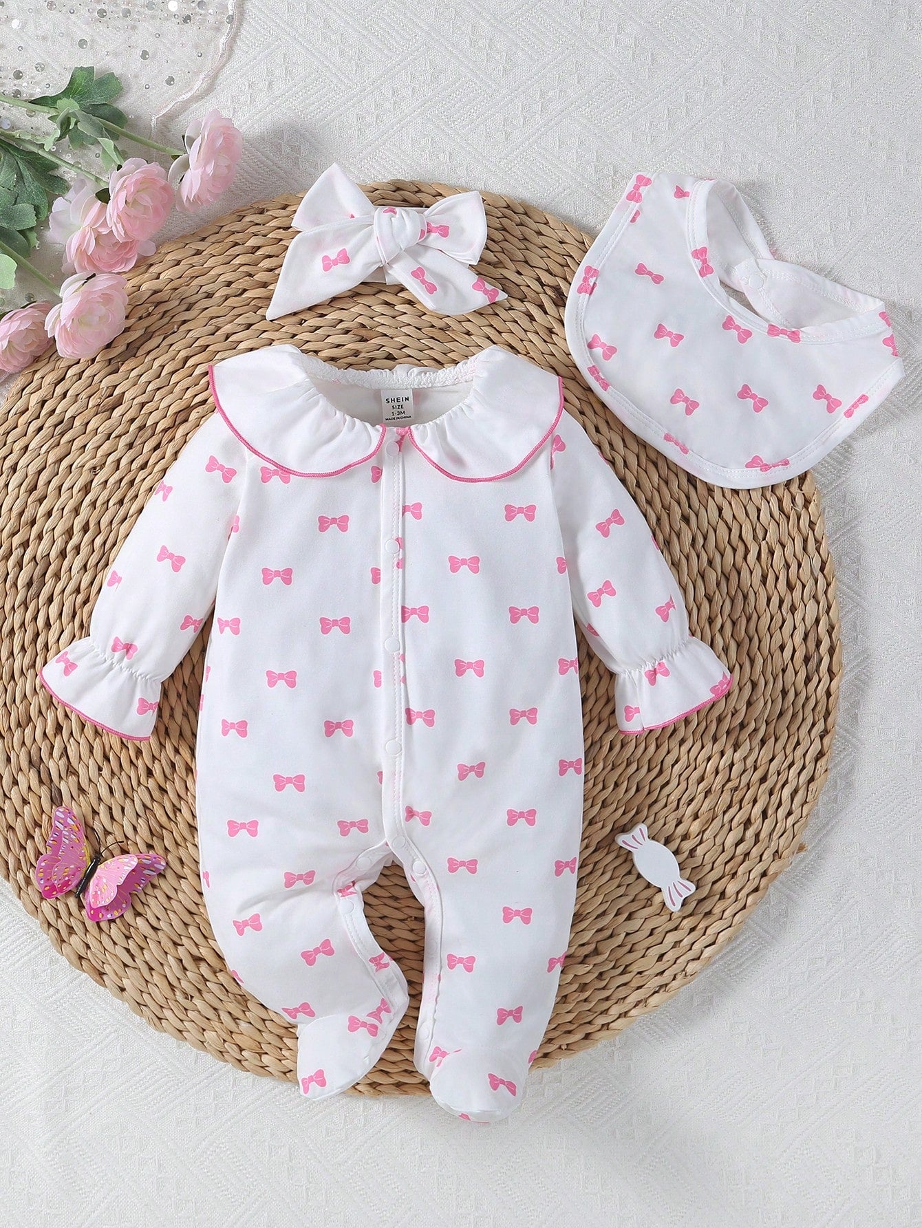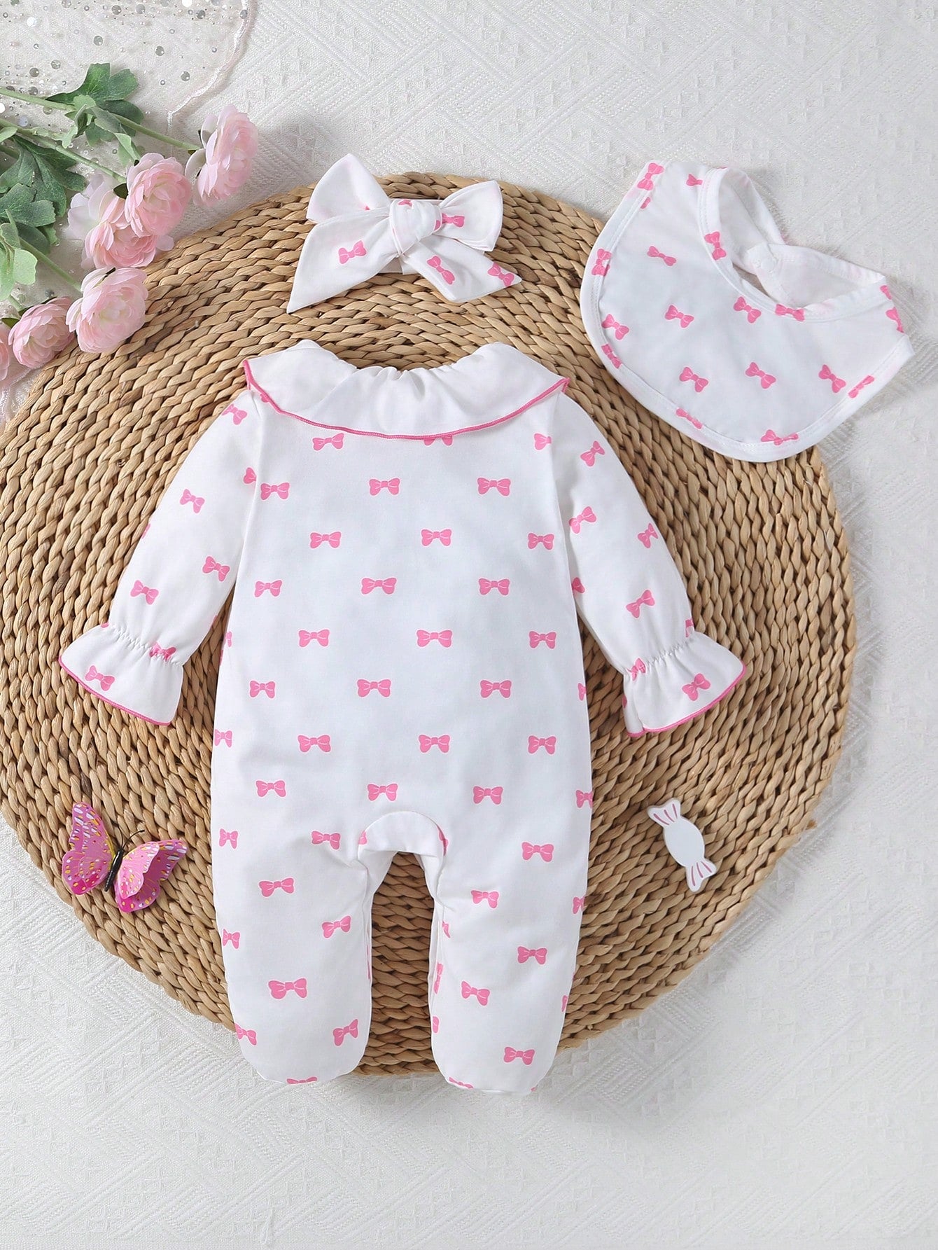 Infant Baby Girls White Butterfly Print Long Sleeve Jumpsuit With Bib And Headband More Pieces Set For