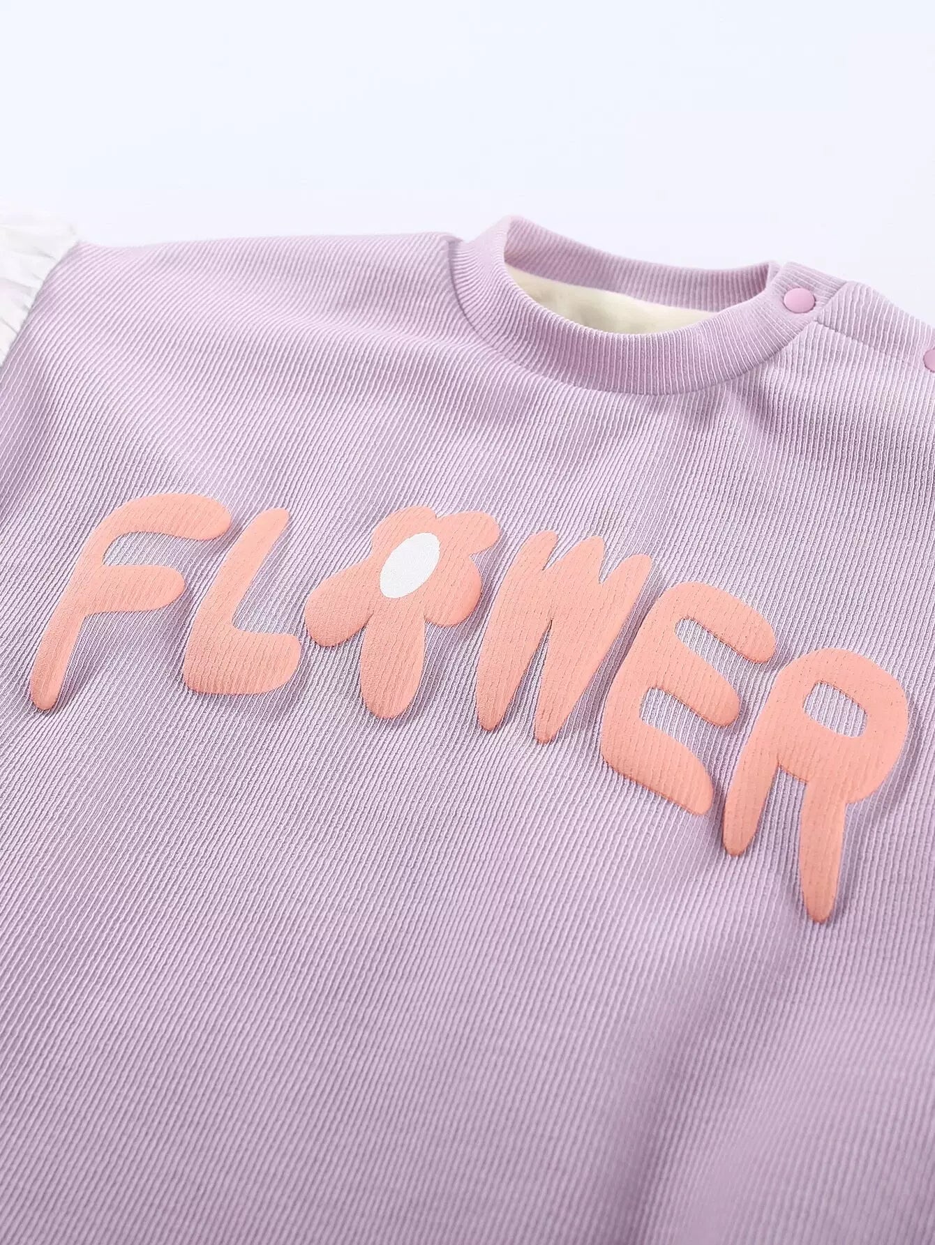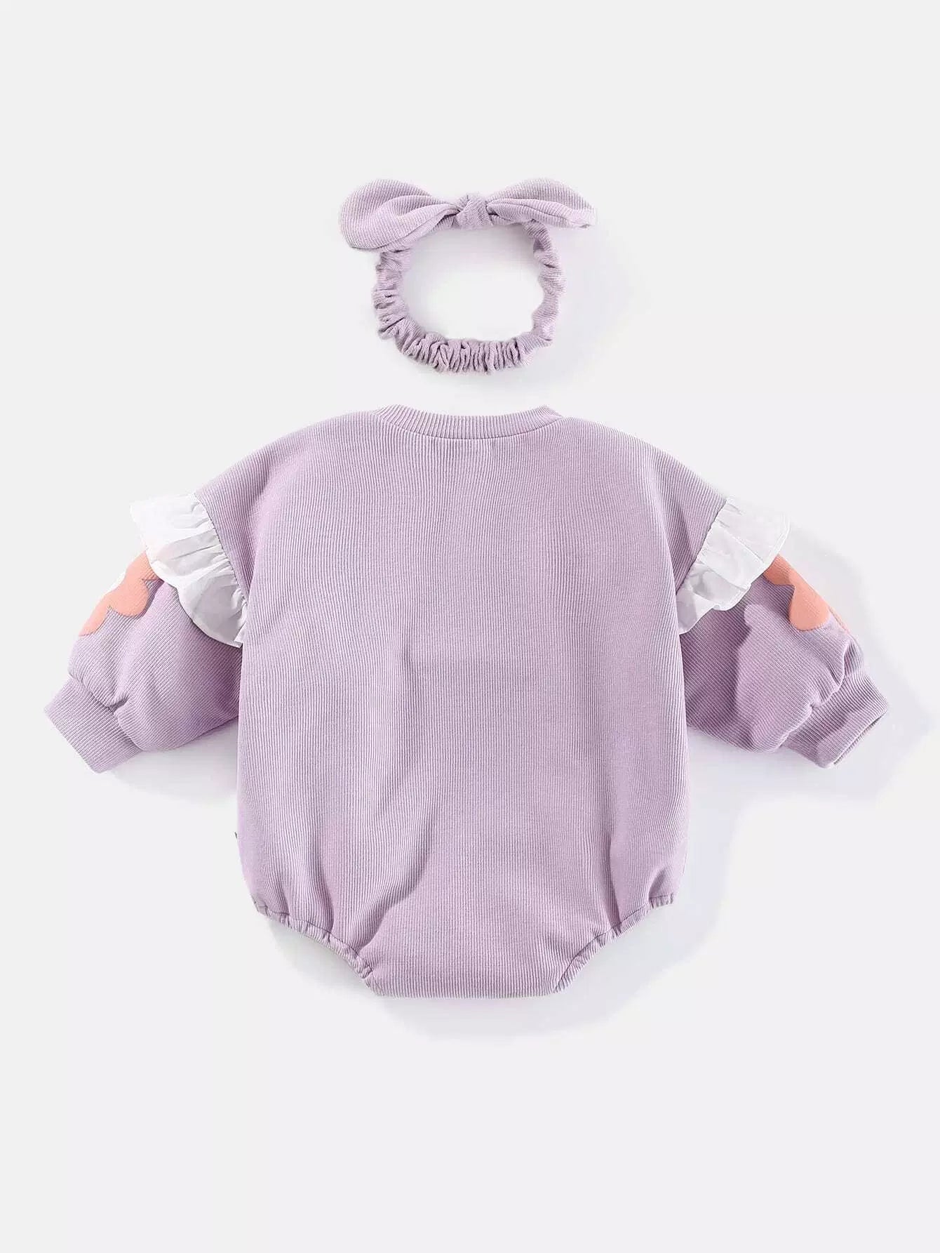 Letter Graphic Ruffle Trim Bodysuit With Hair Band