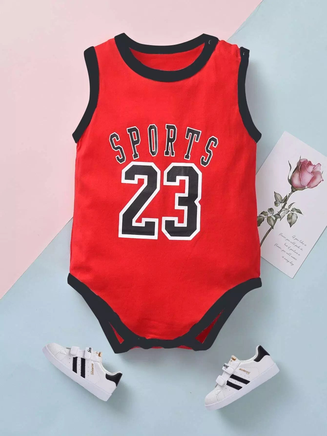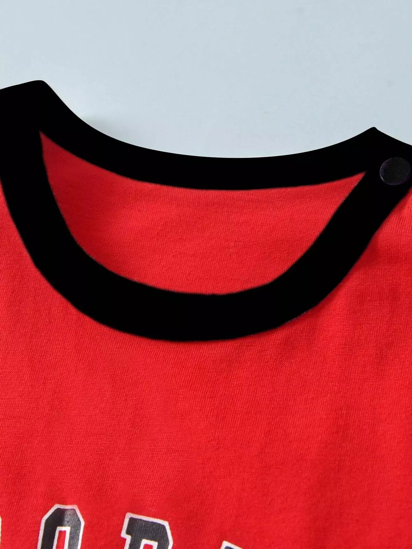 Baby Boy Letter Graphic Contrast Binding Bodysuit