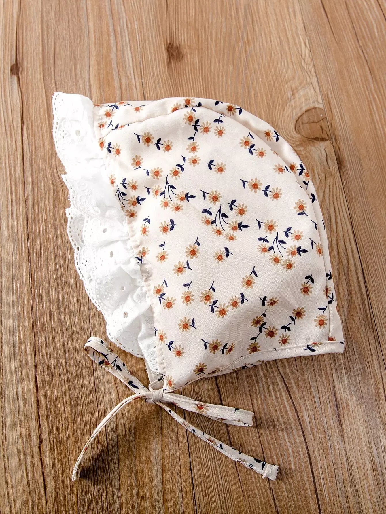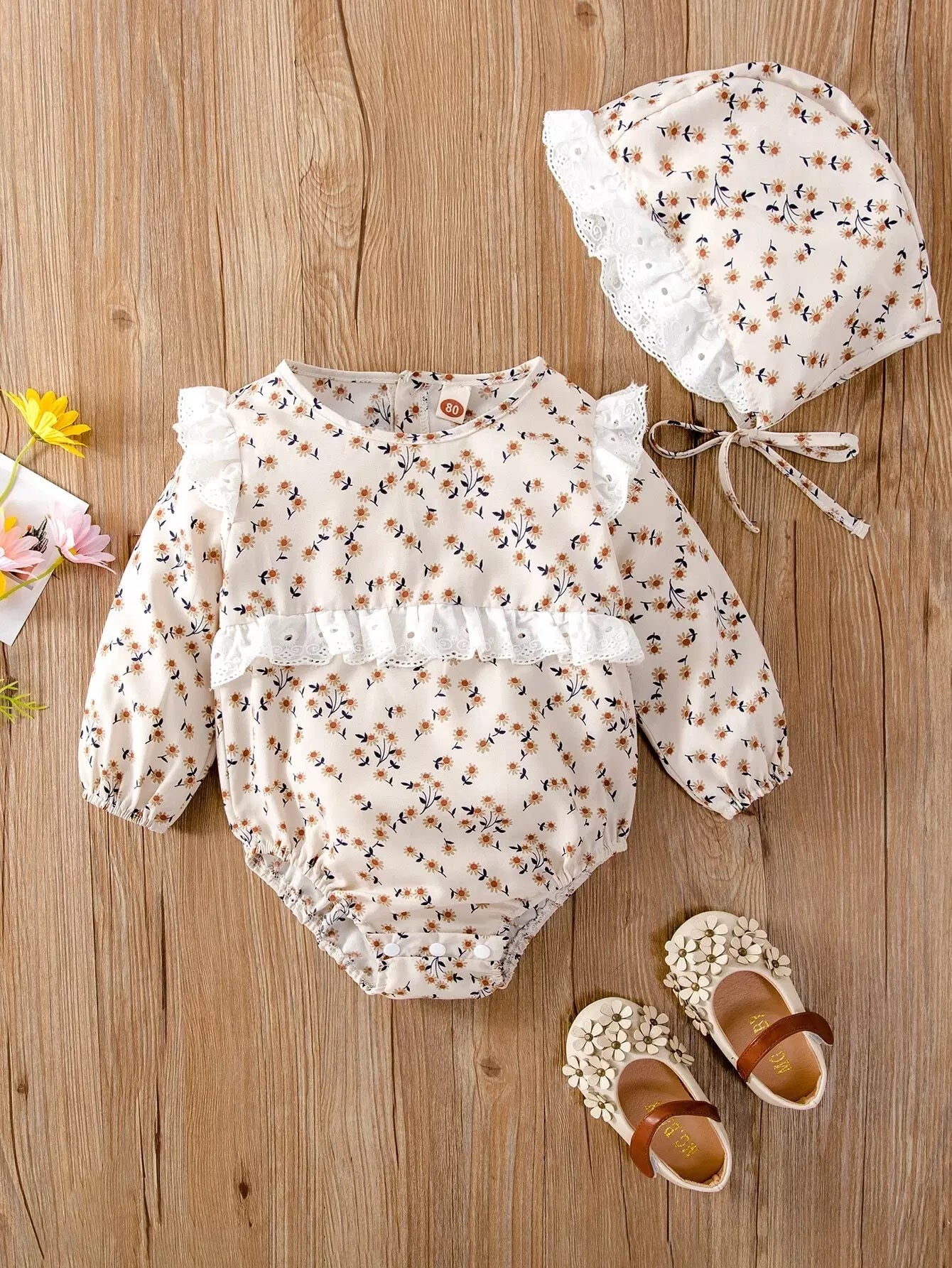 Baby Contrast Schiffy Trim Ditsy Floral Bodysuit & Hat