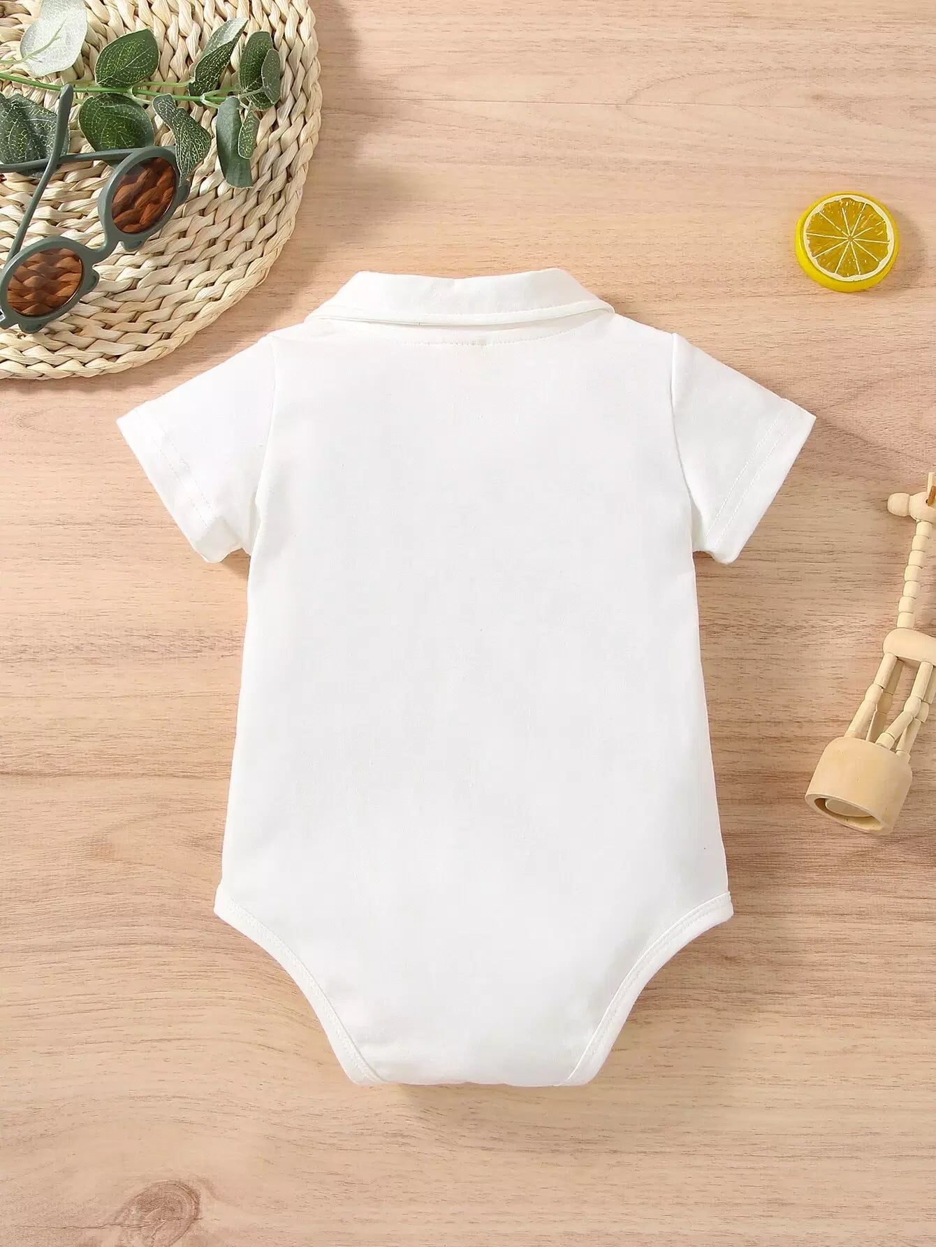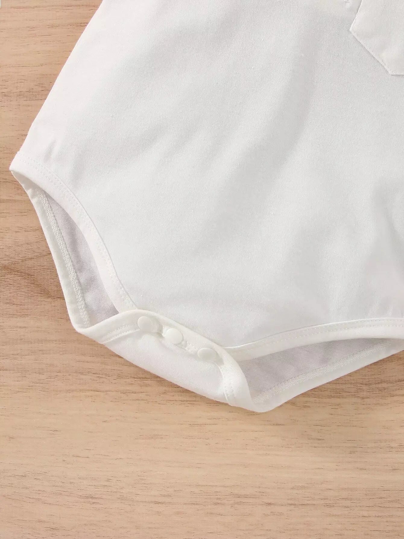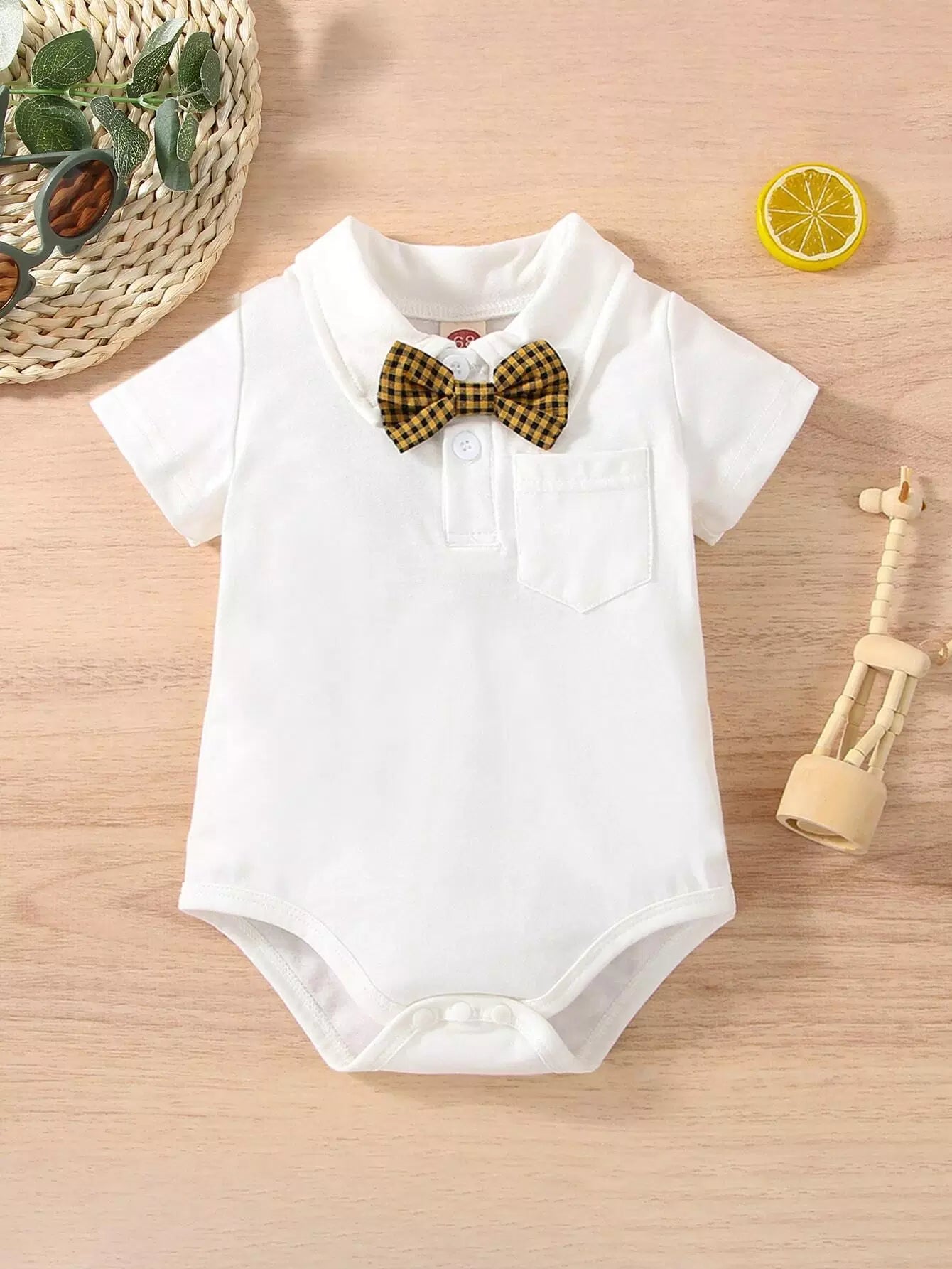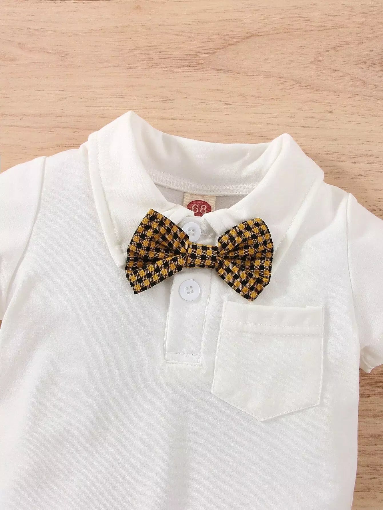 Baby Gingham Bow Front Polo Neck Patched Pocket Bodysuit