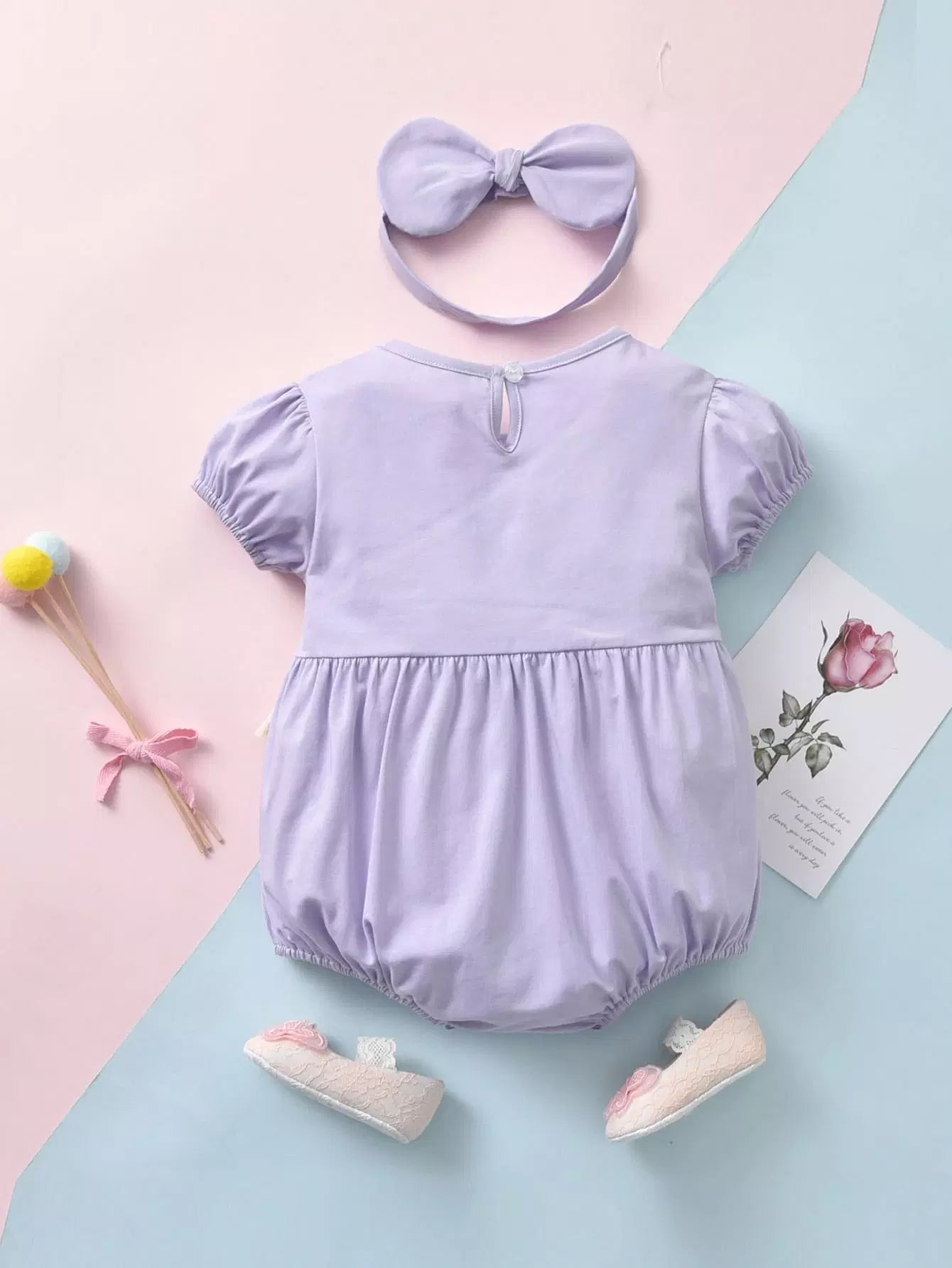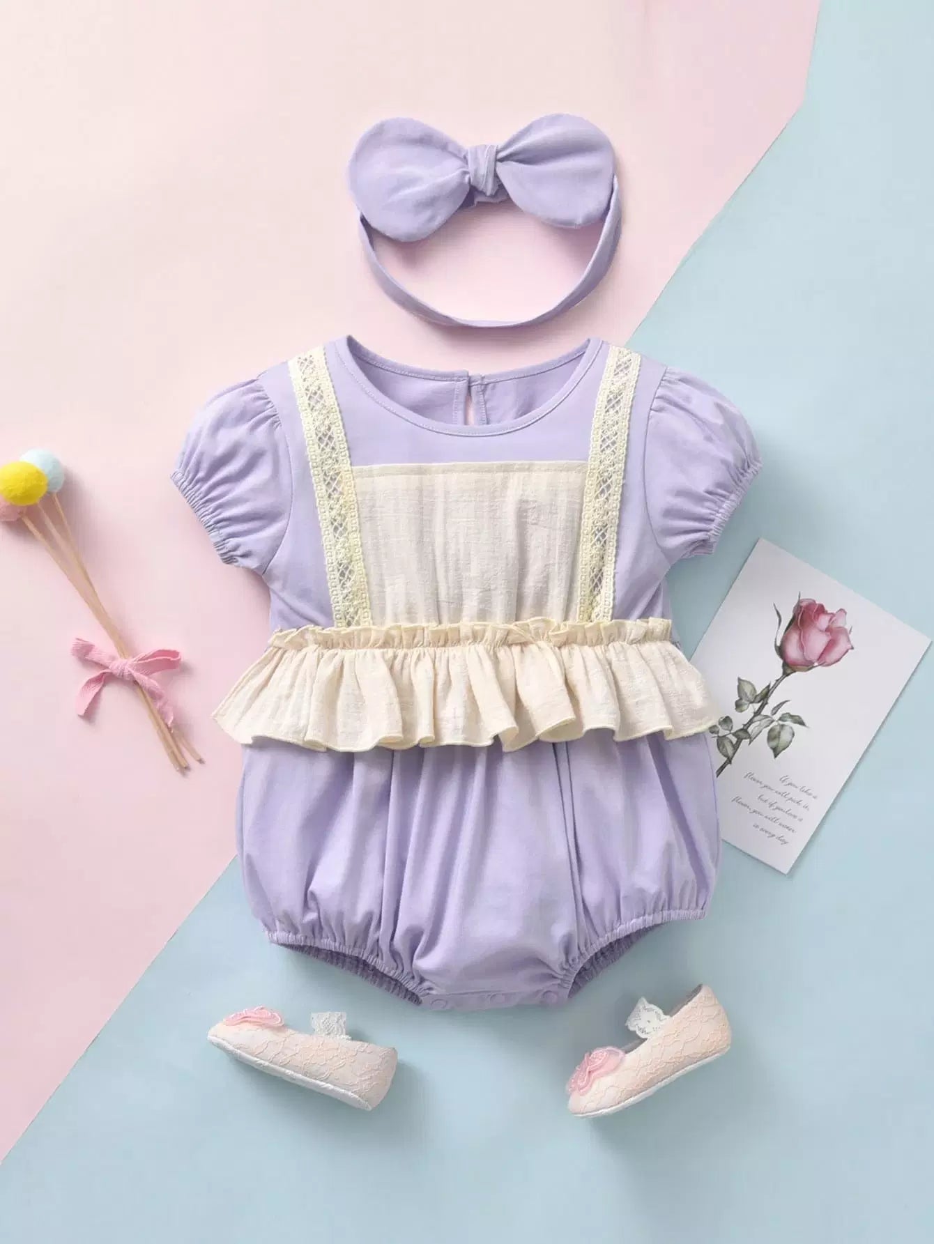 Baby Girl Contrast Ruffle Bodysuit With Headband