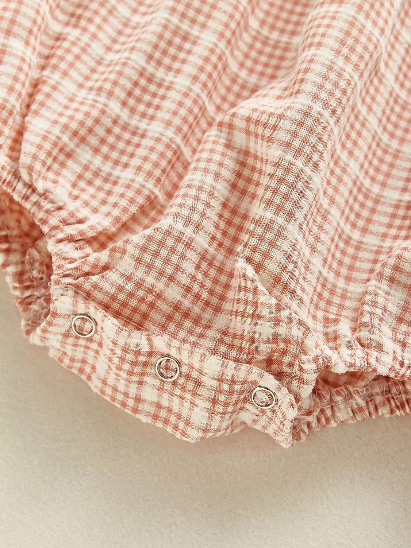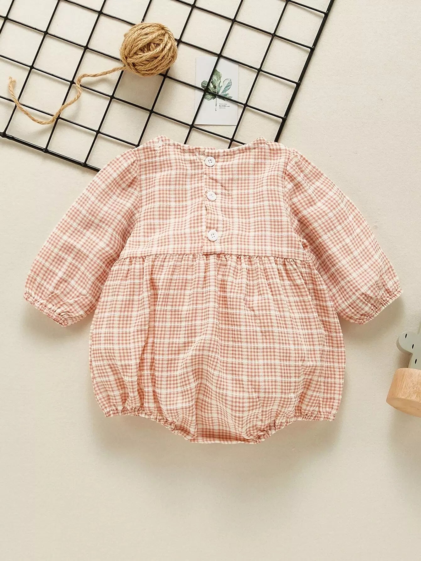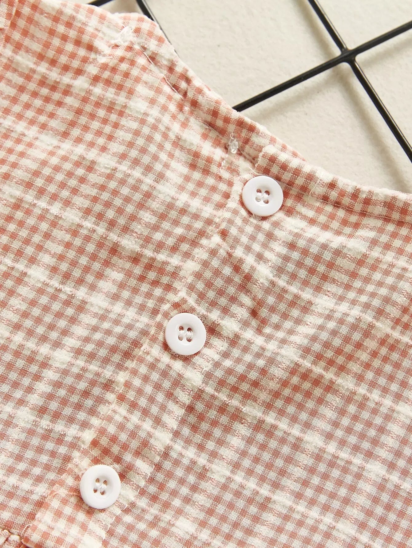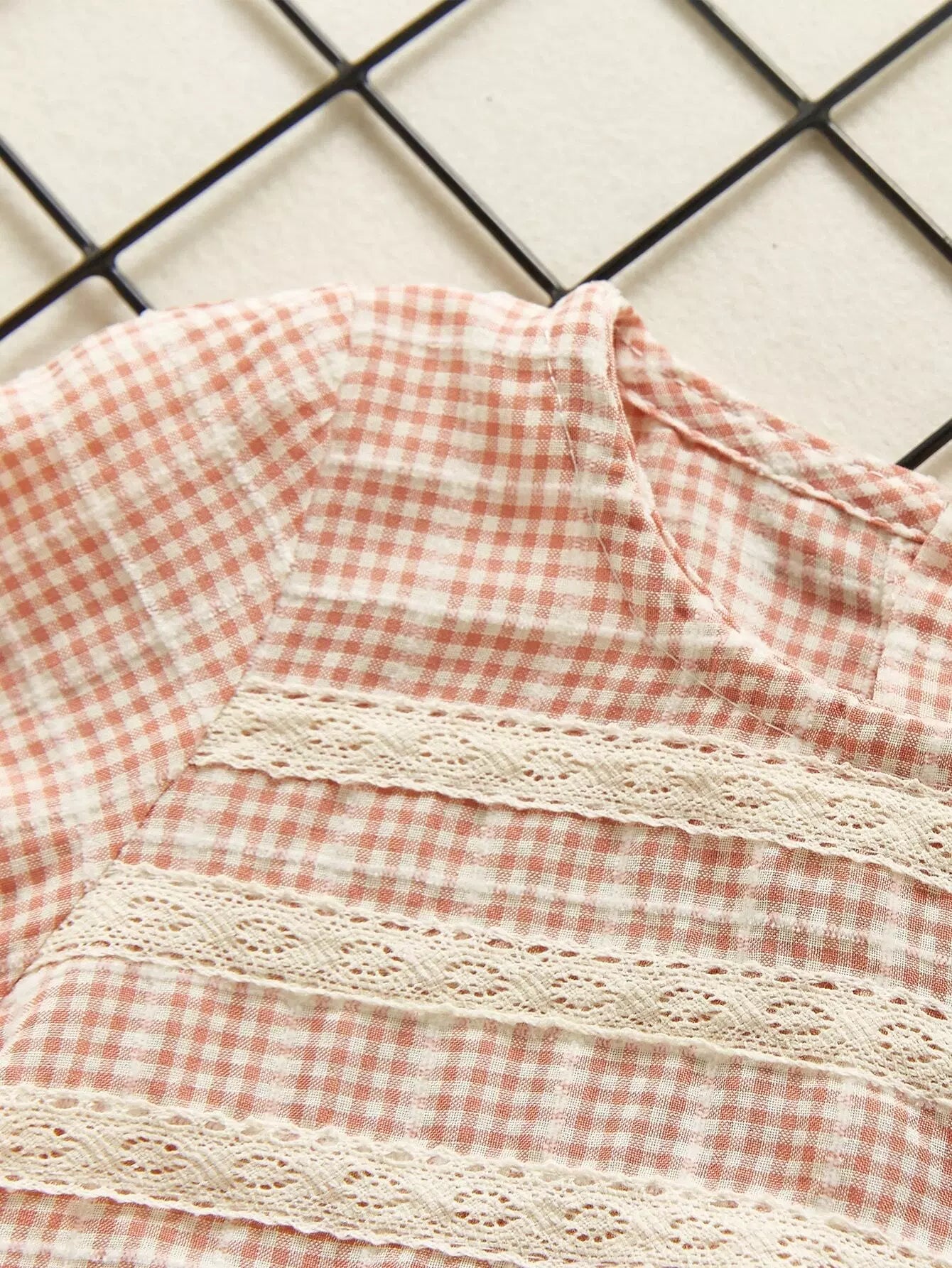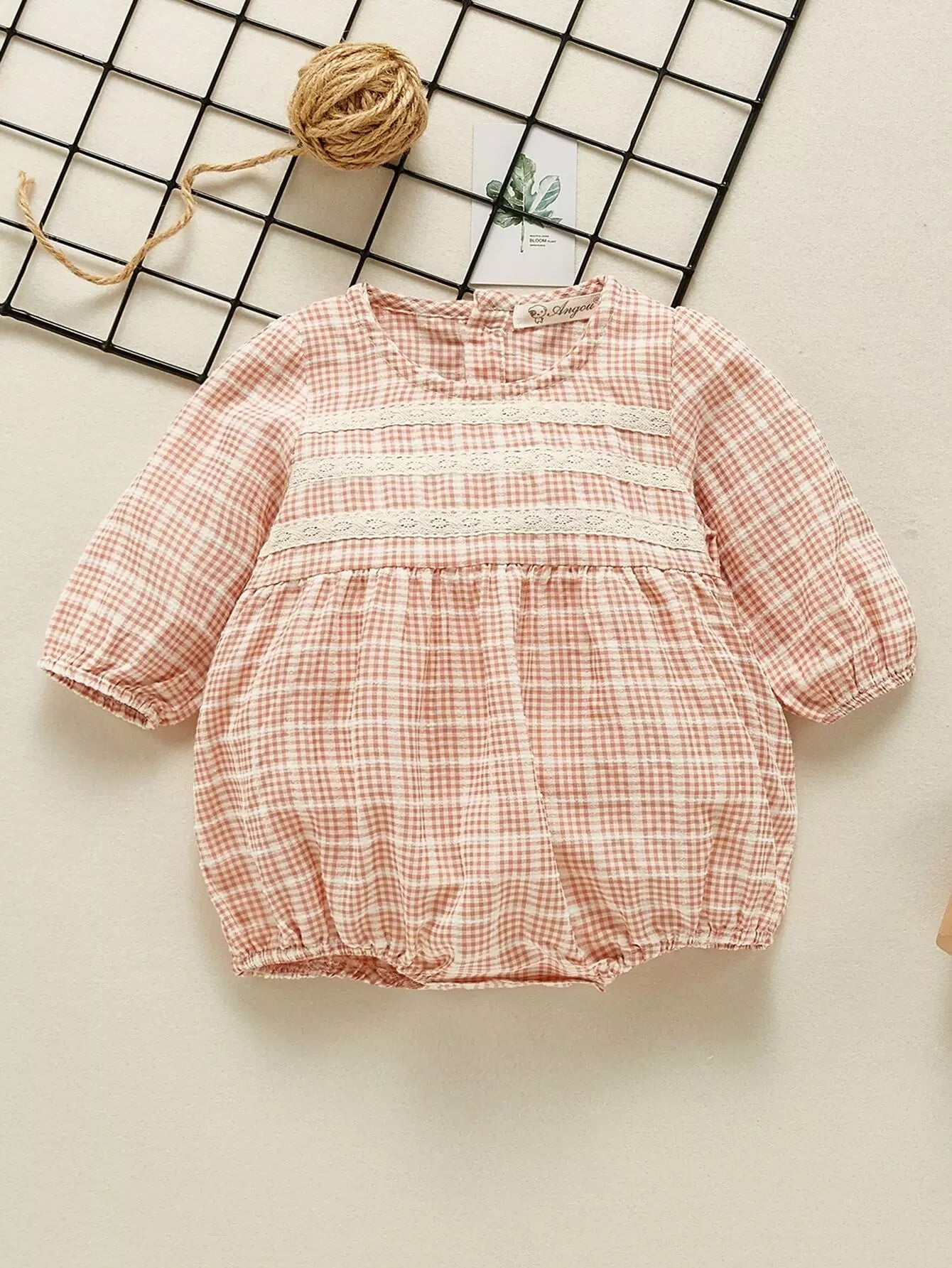 Baby Girl Plaid Contrast Lace Panel Bodysuit
