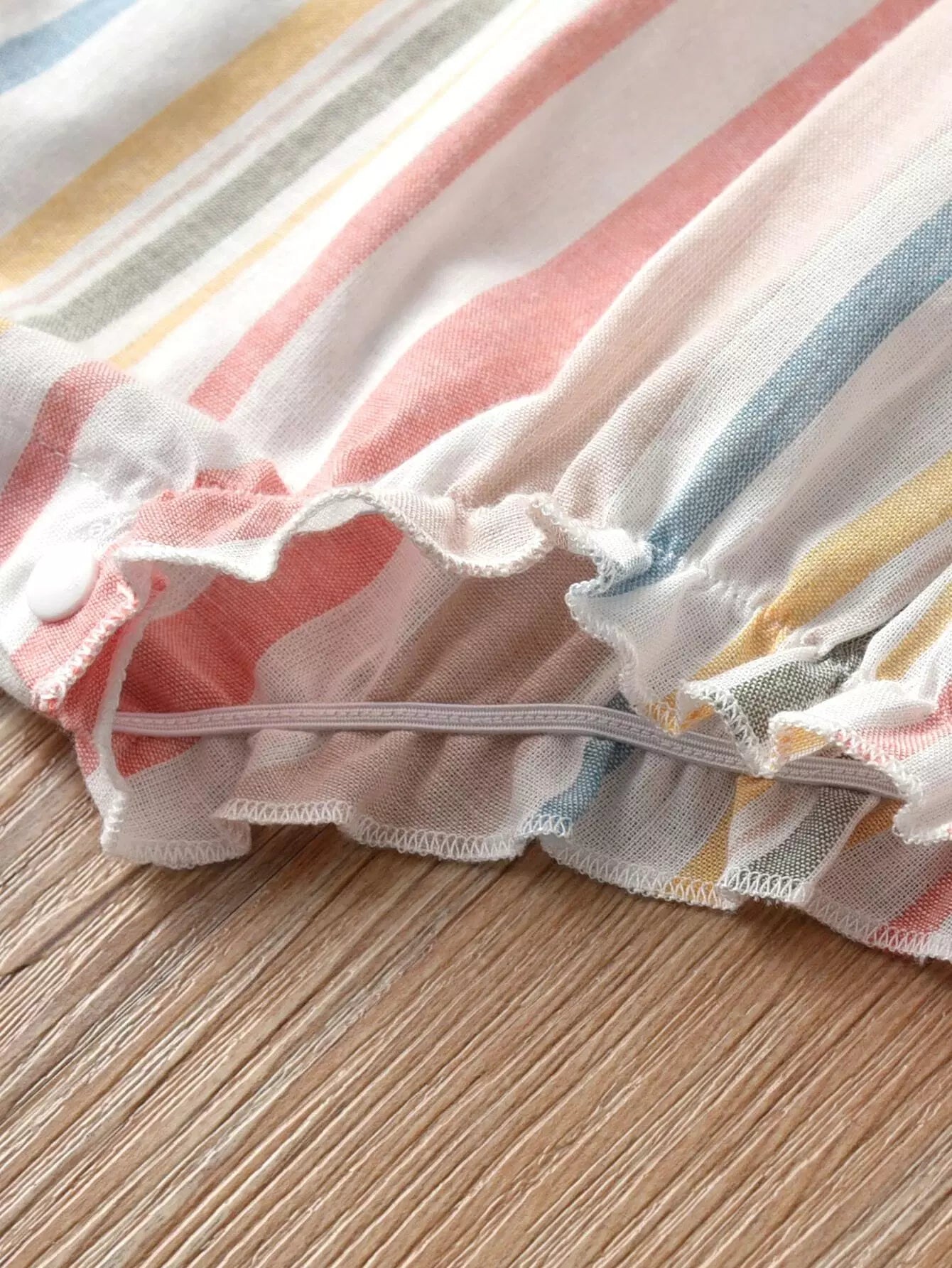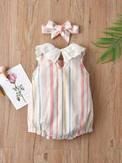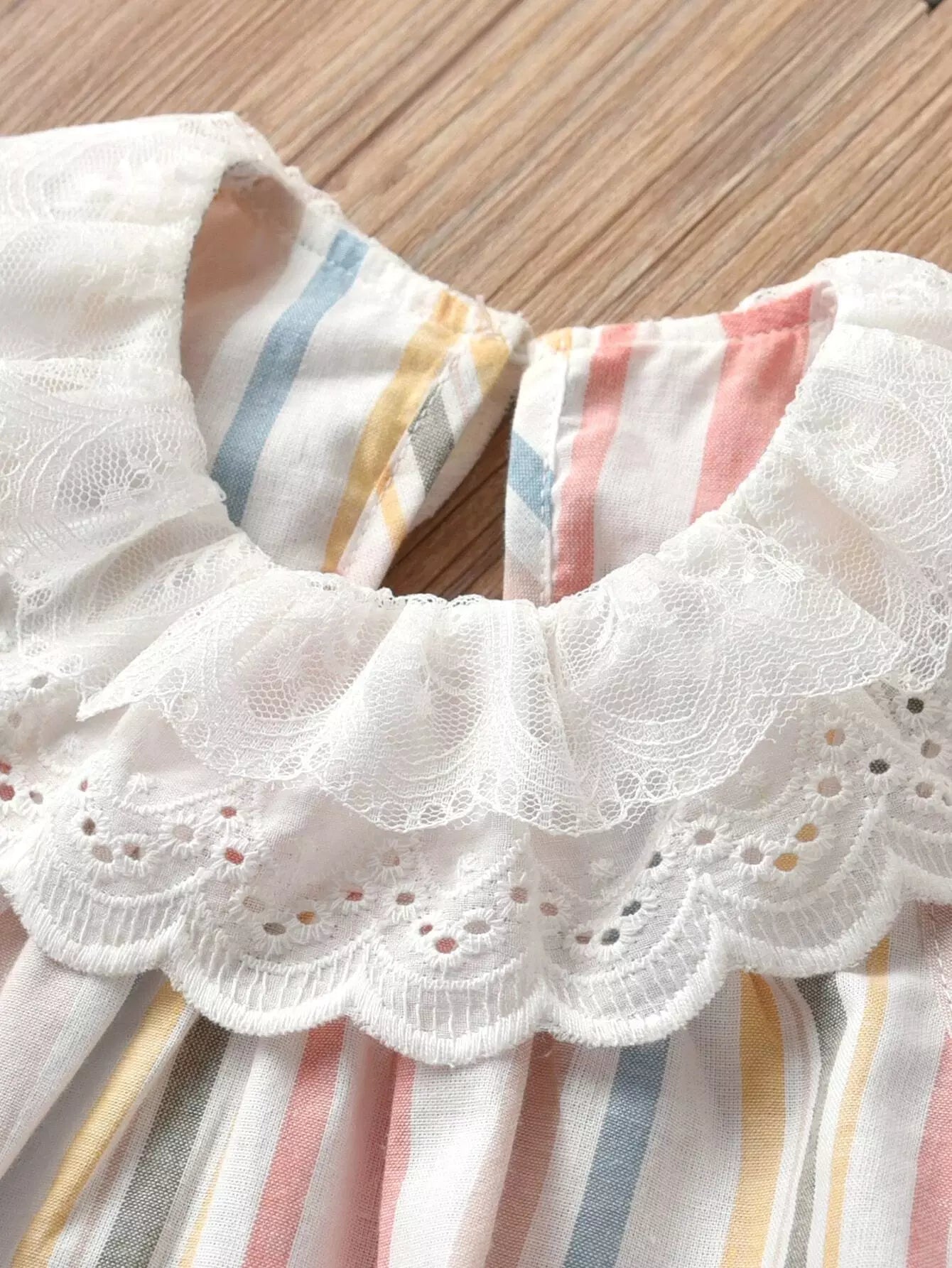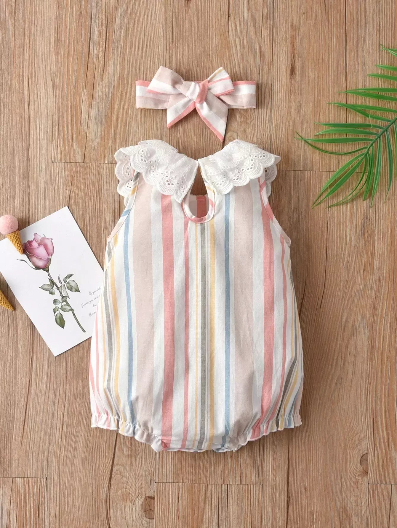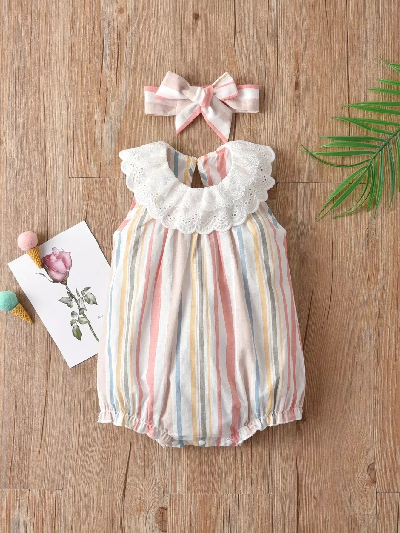 Baby Girl Striped Lace Panel Bodysuit & Headband