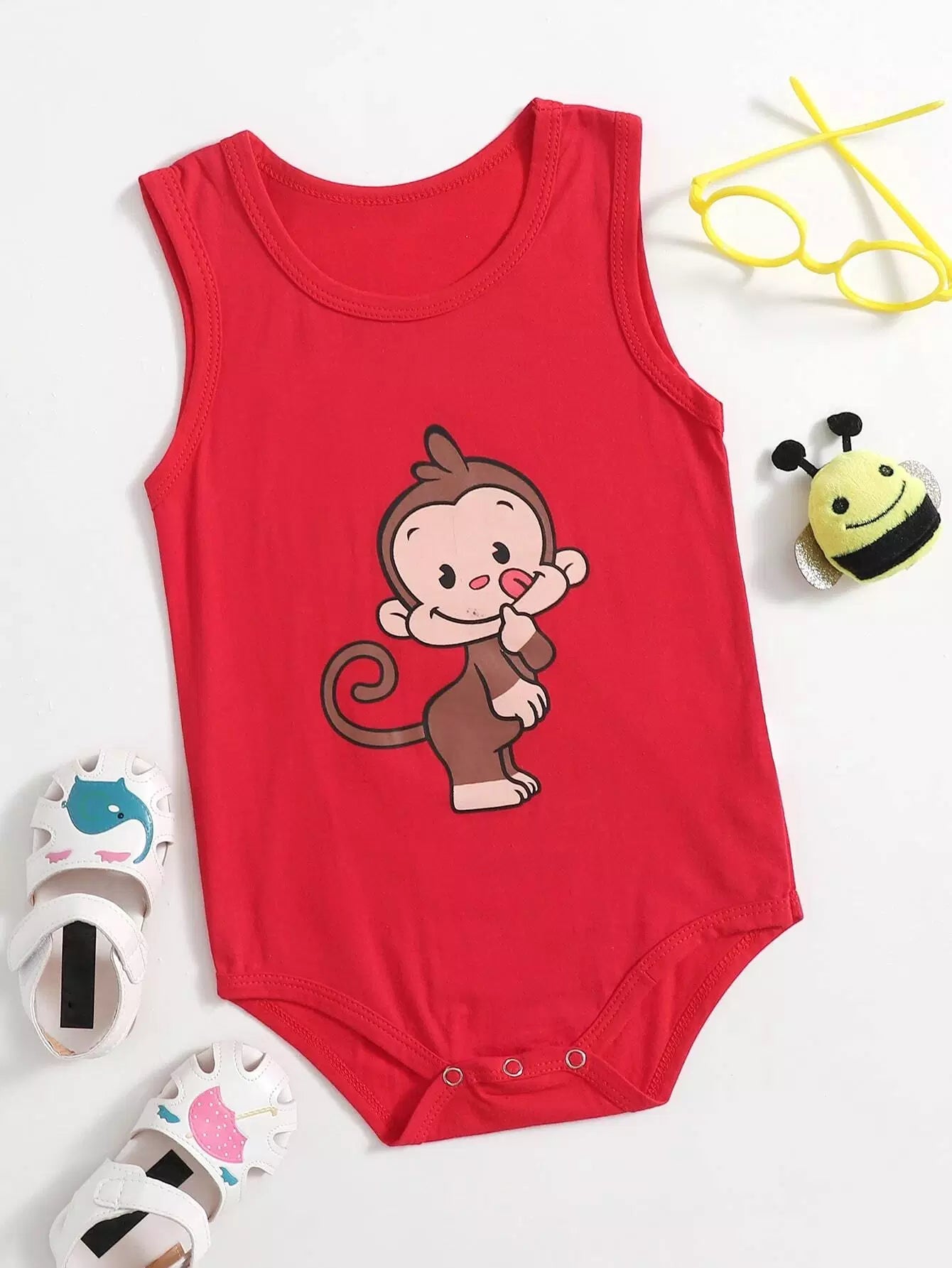 Baby Unisex Cartoon Monkey Tank Bodysuit