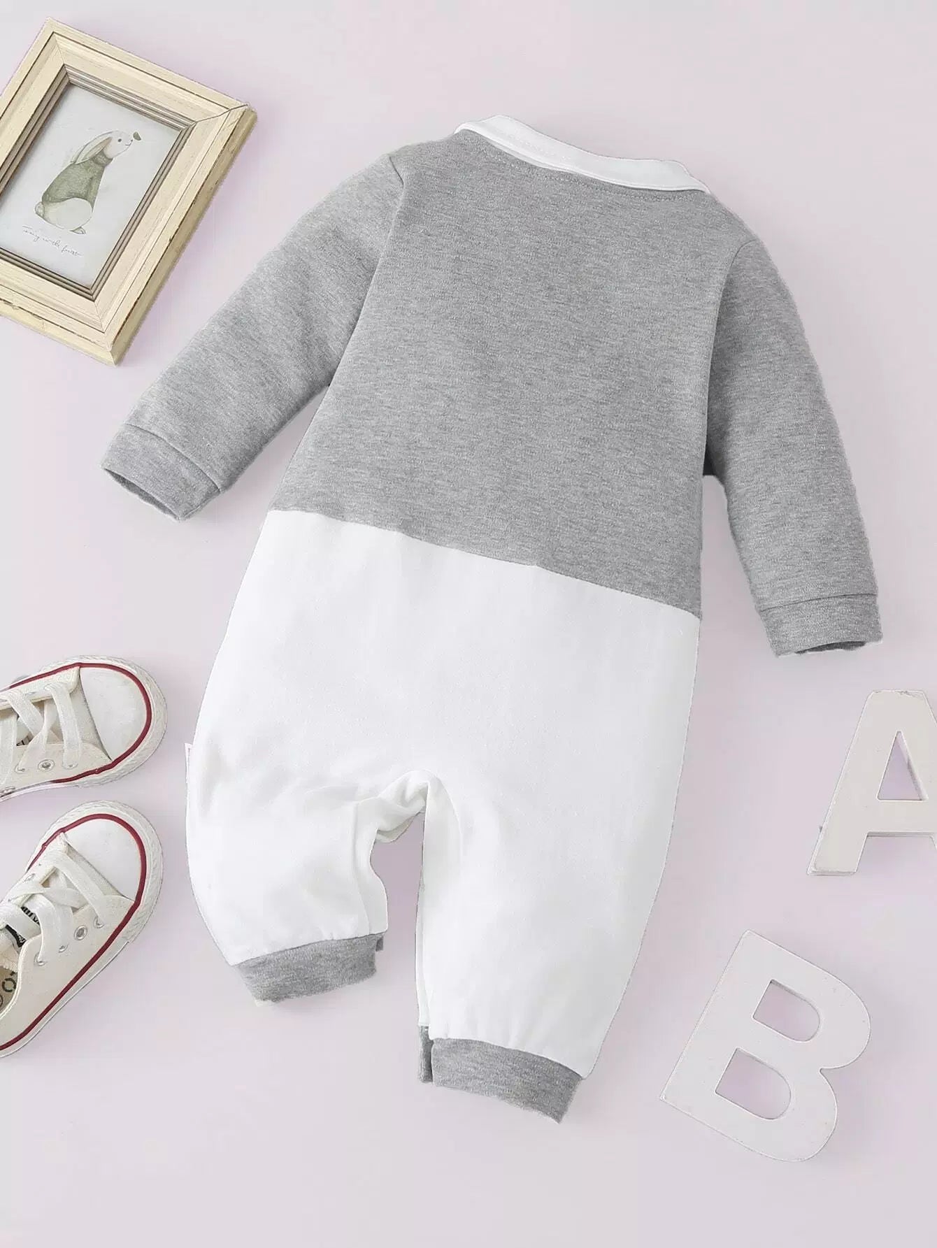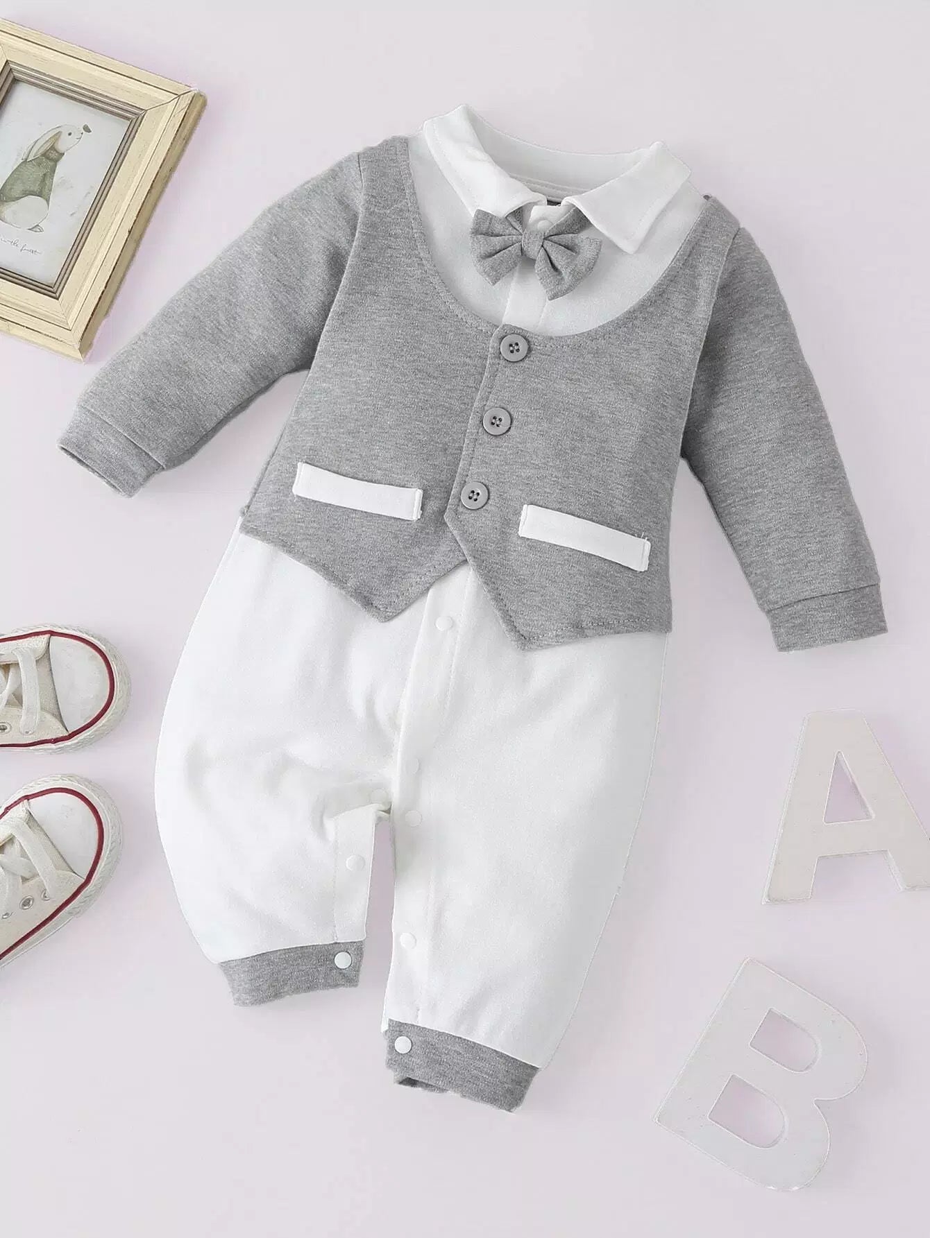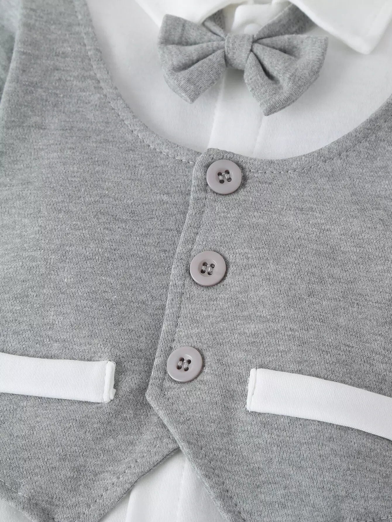 Baby Boy Button Front Bow Shirt Jumpsuit