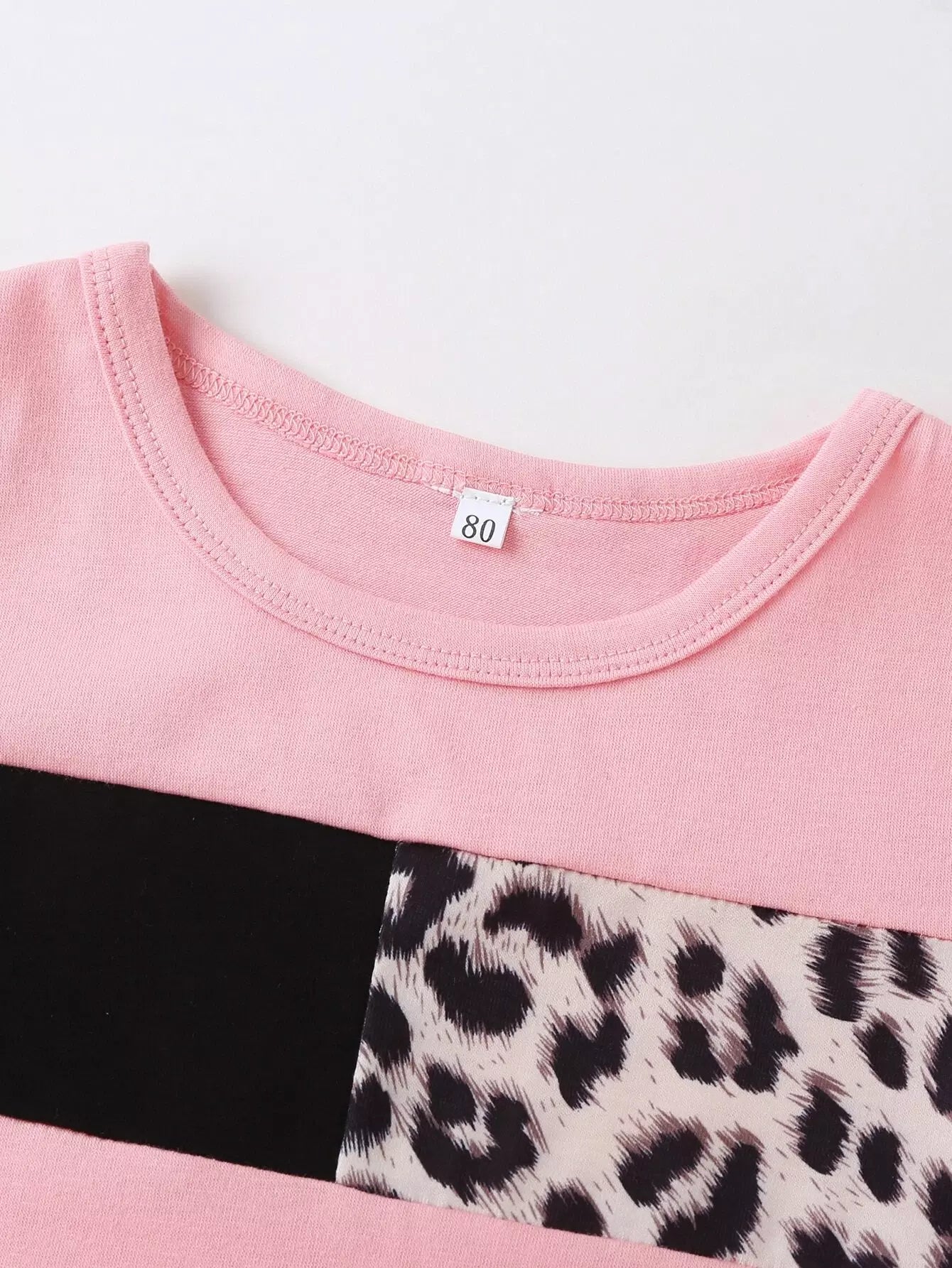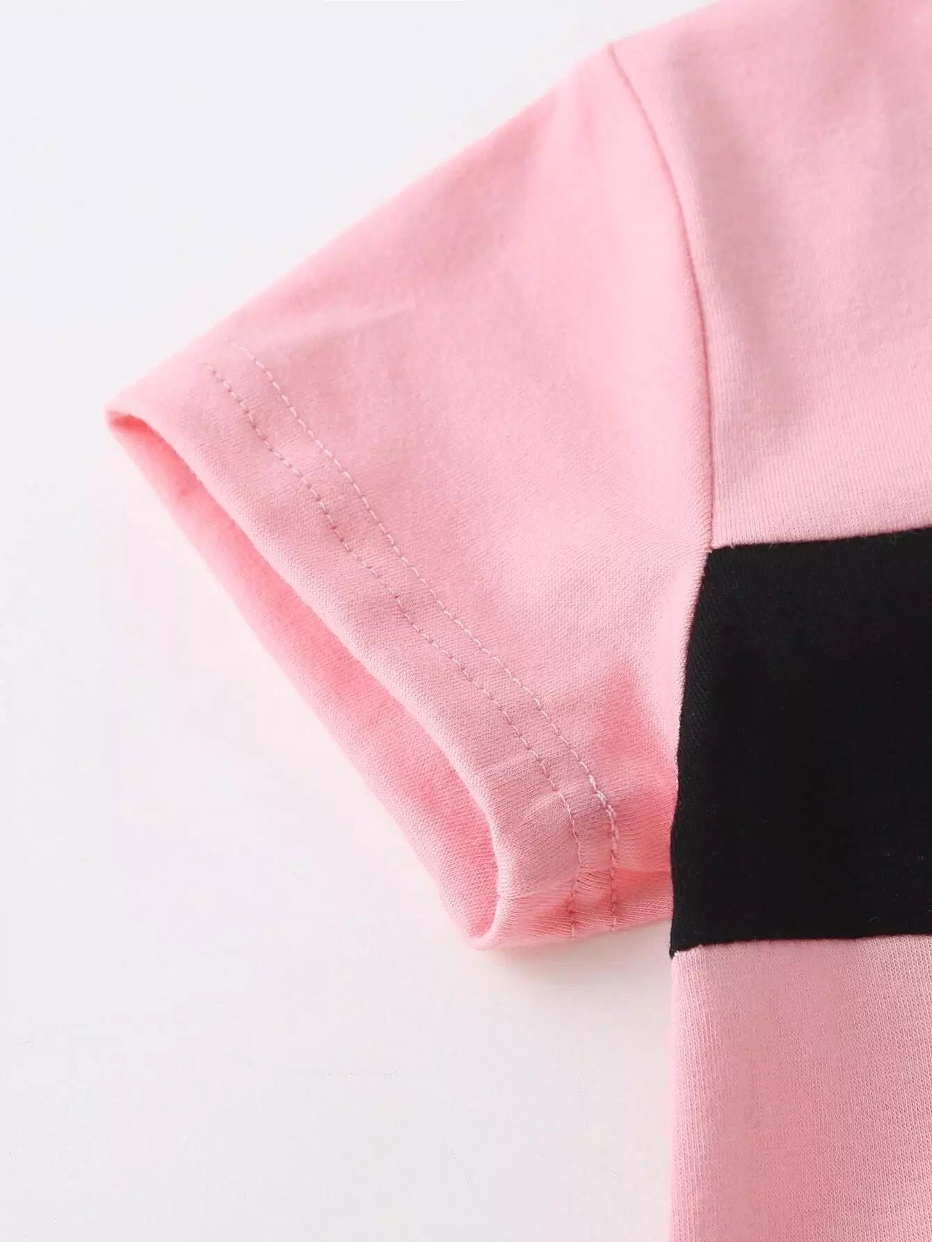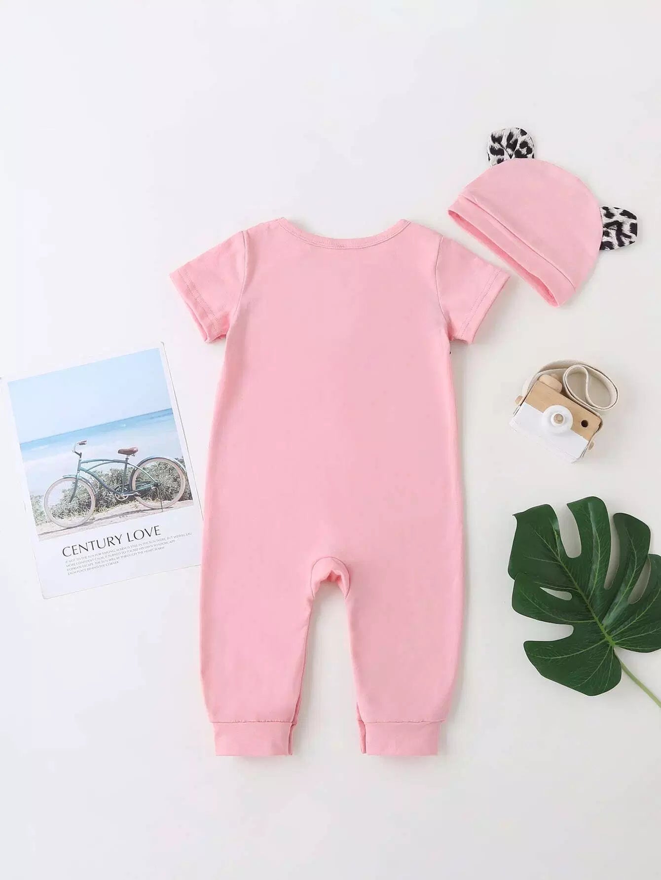 Baby Girl Contrast Panel Tee Jumpsuit With Hat