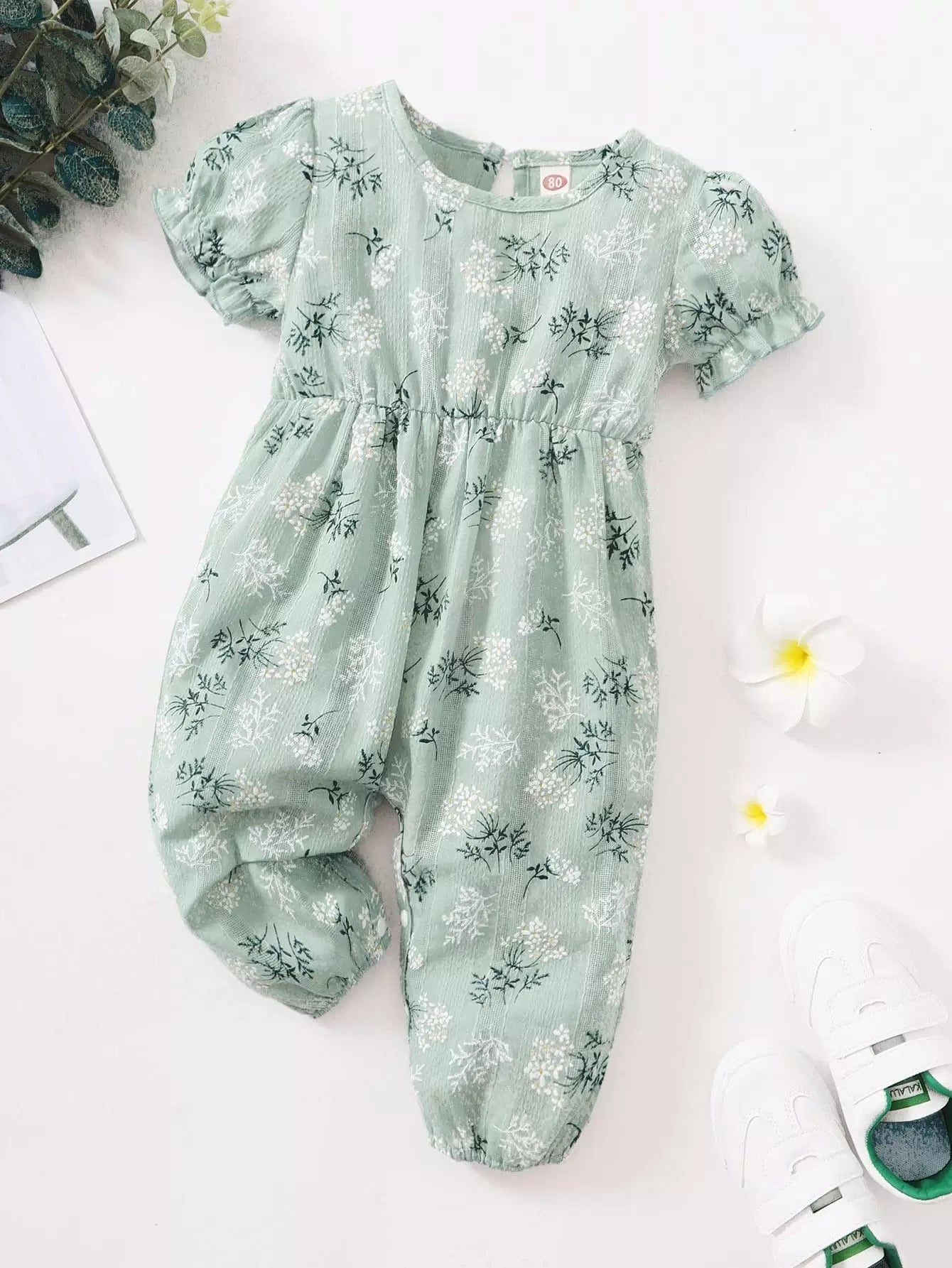 Baby Girl Floral Print Flounce Sleeve Jumpsuit