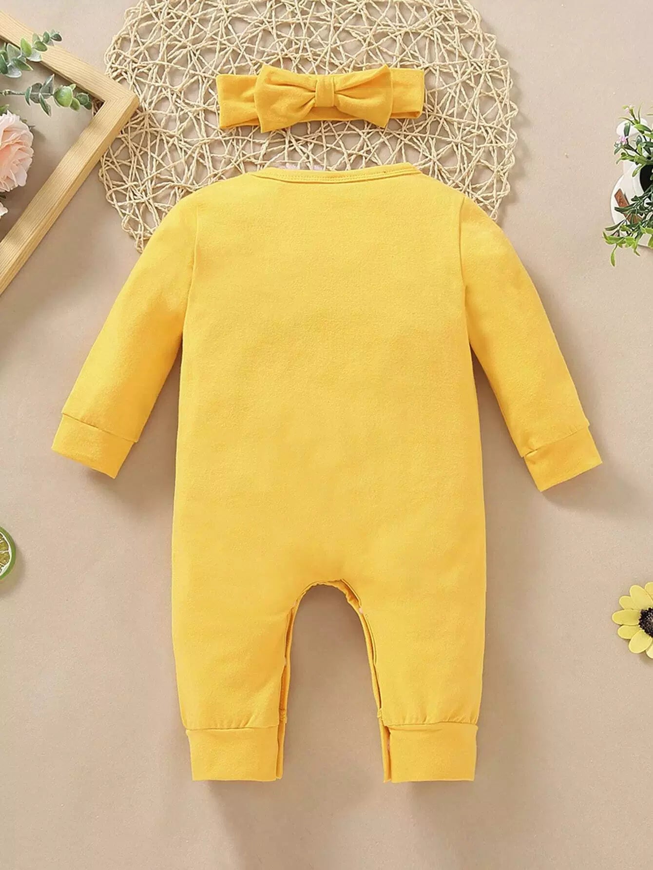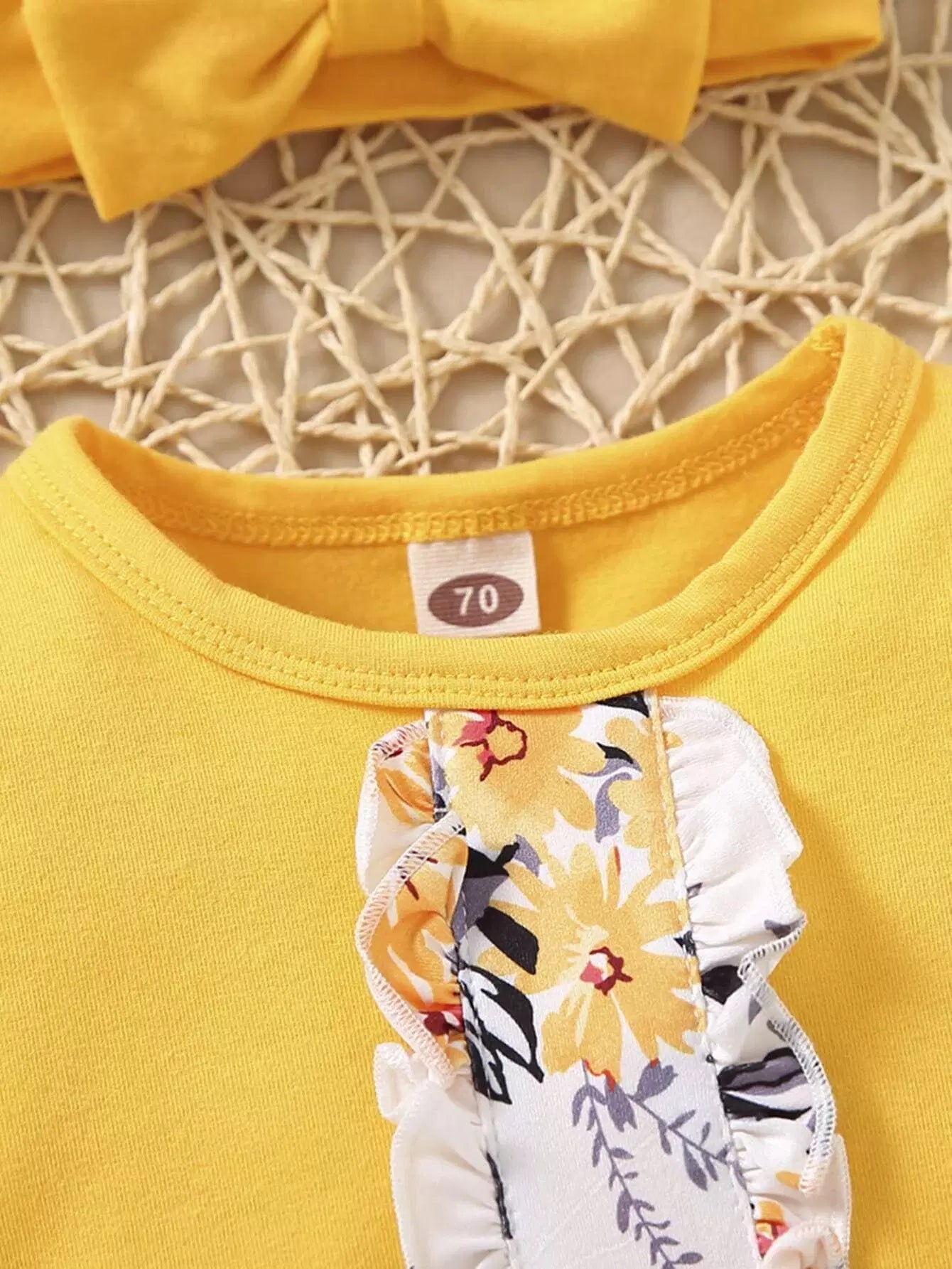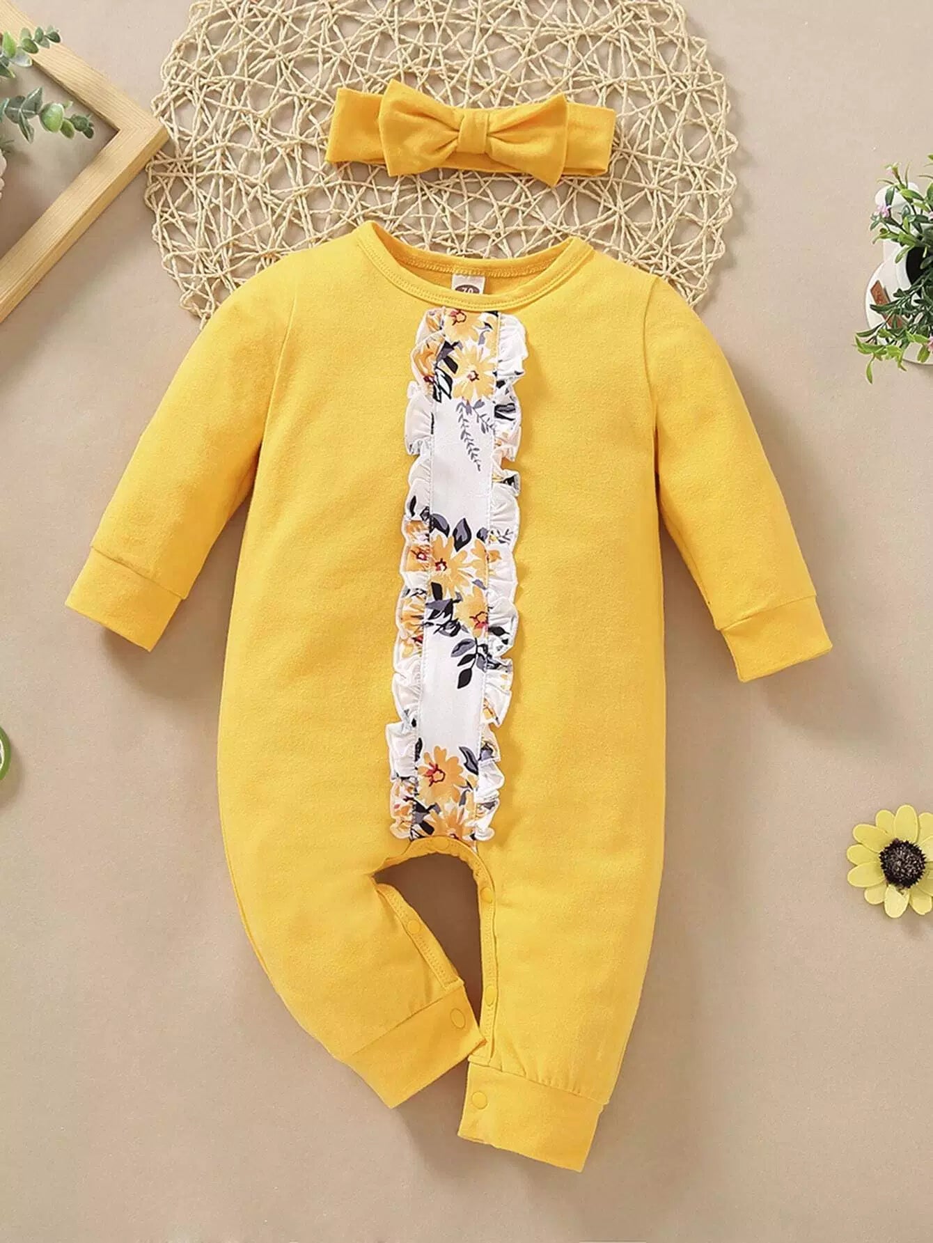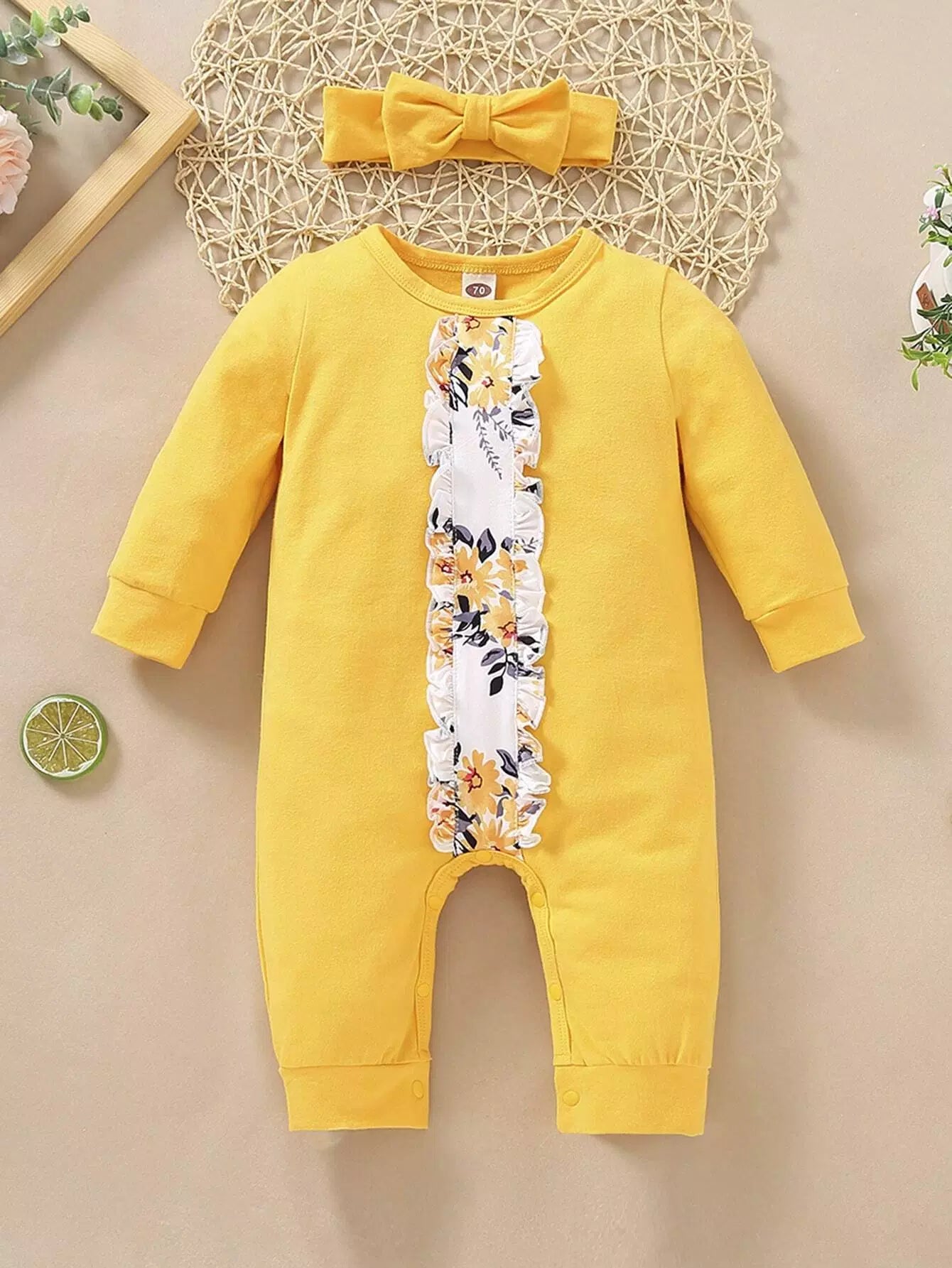 Baby Girl Floral Print Frill Jumpsuit & Headband