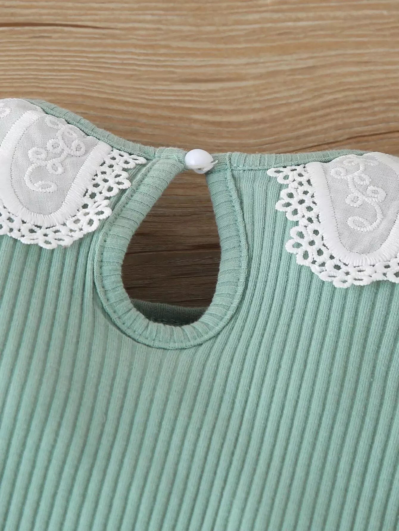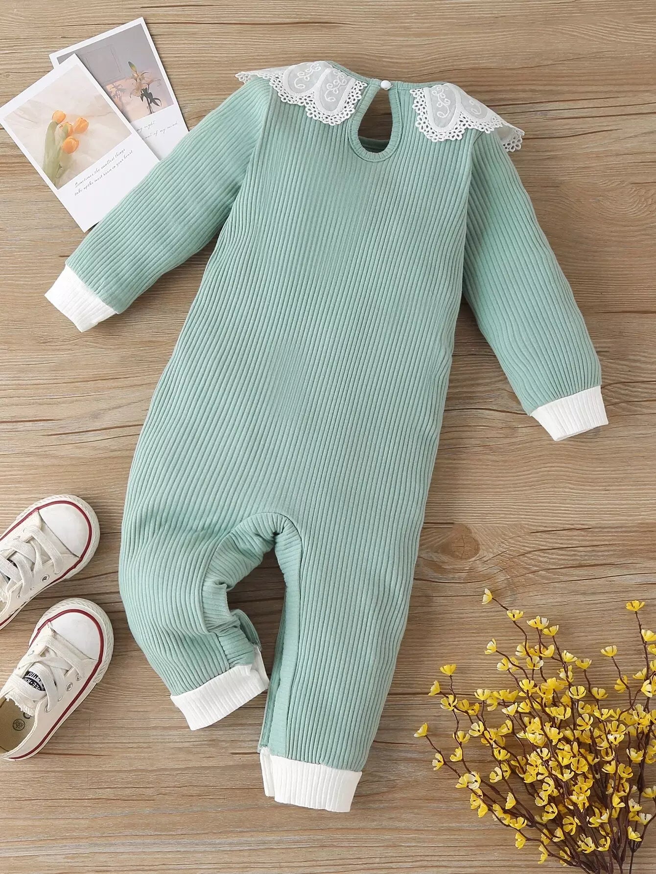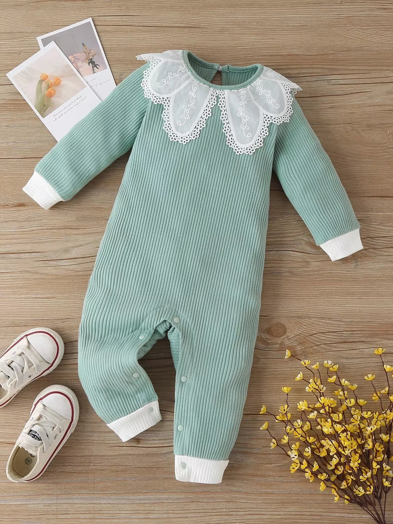 Baby Lace Trim Embroidery Collar Jumpsuit