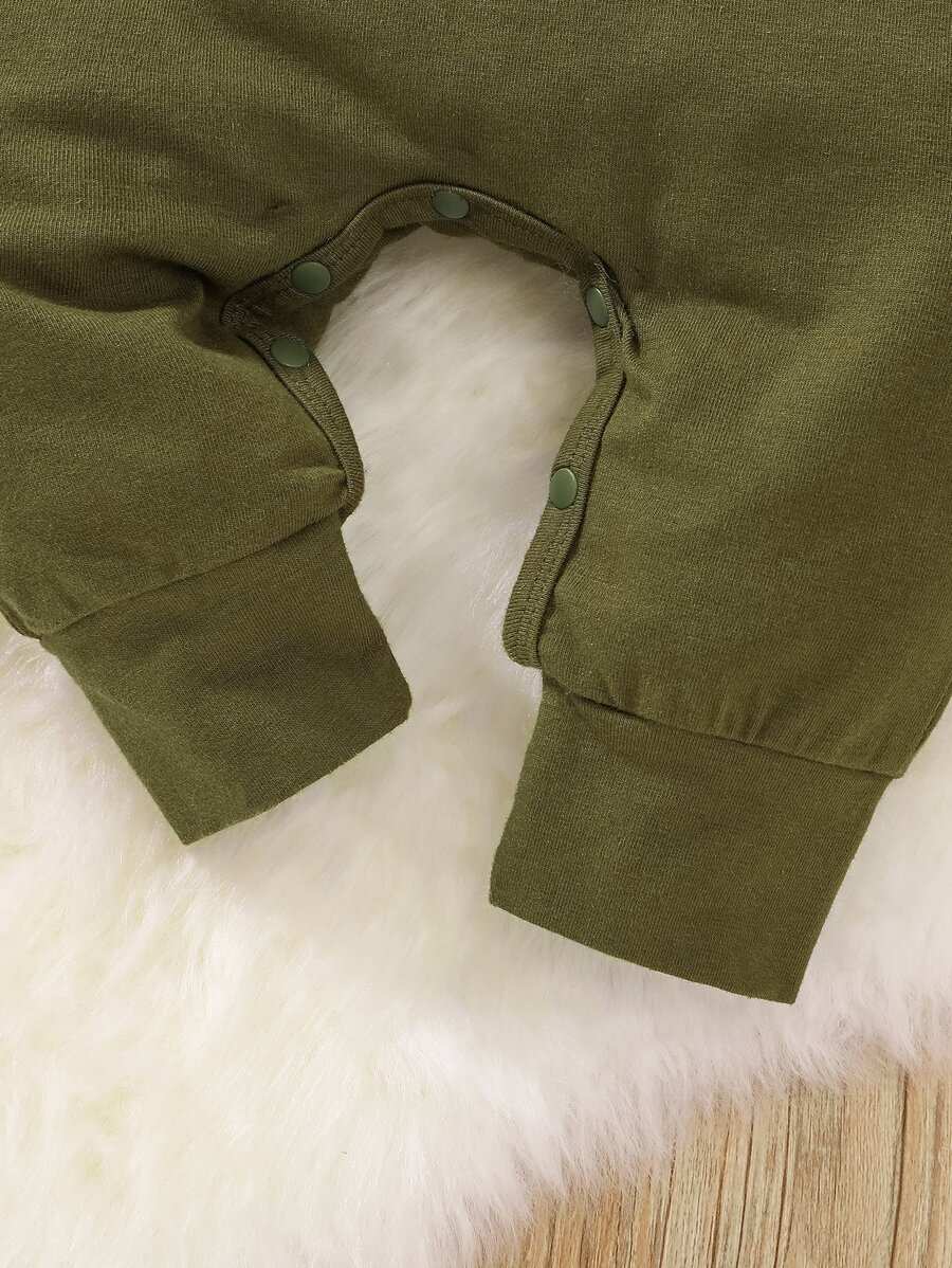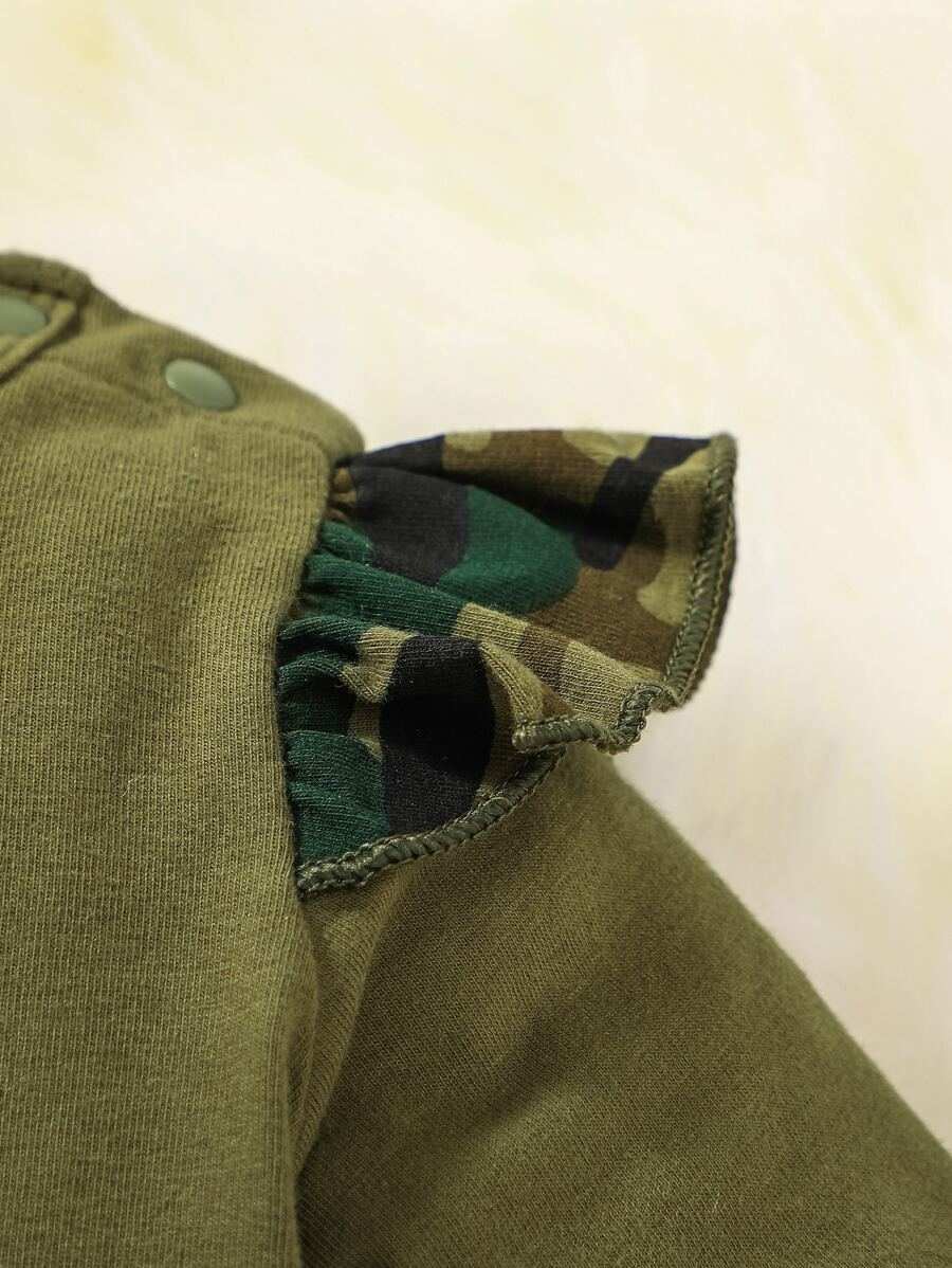 Kids - Baby Slogan Camo Print Ruffle Trim Jumpsuit Headban