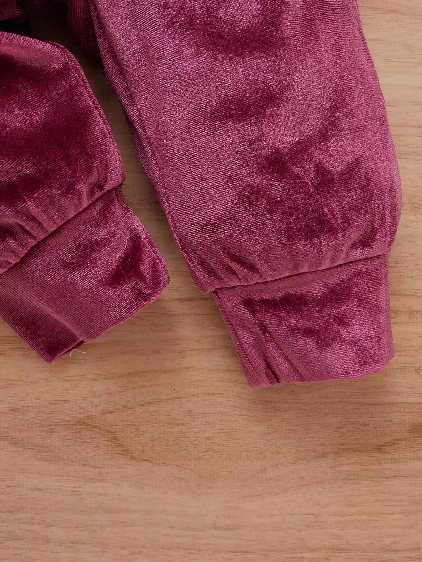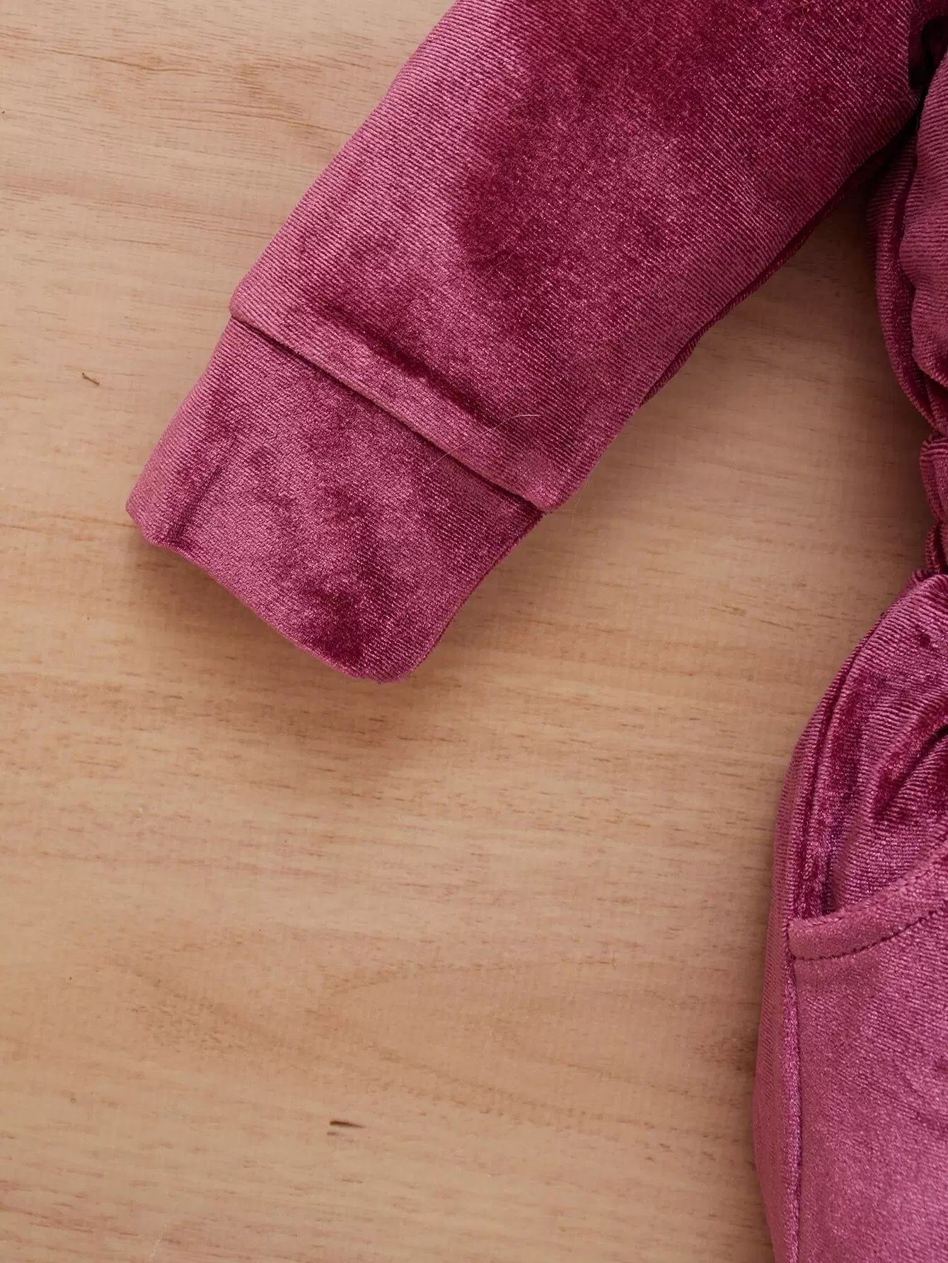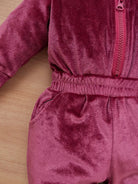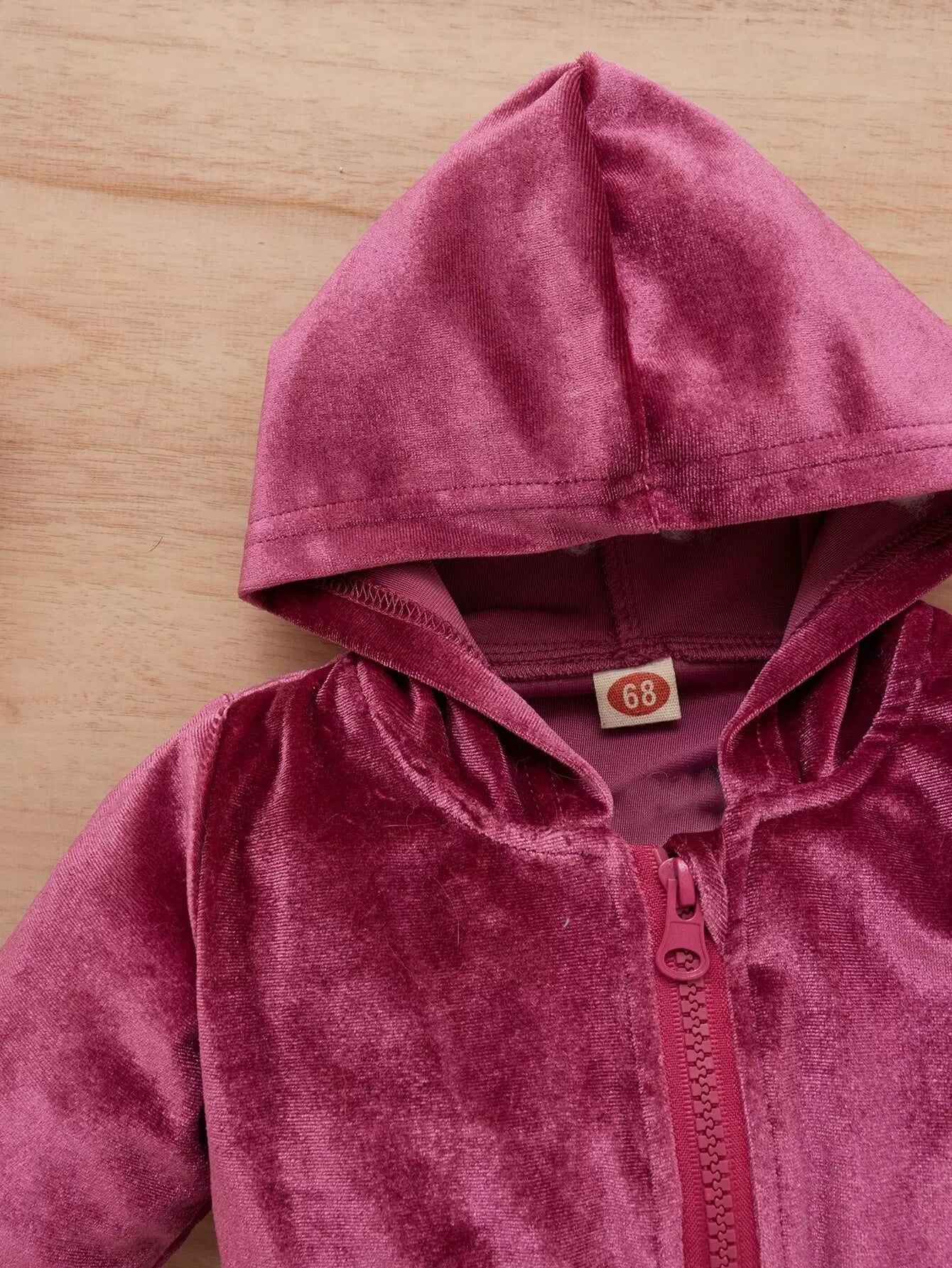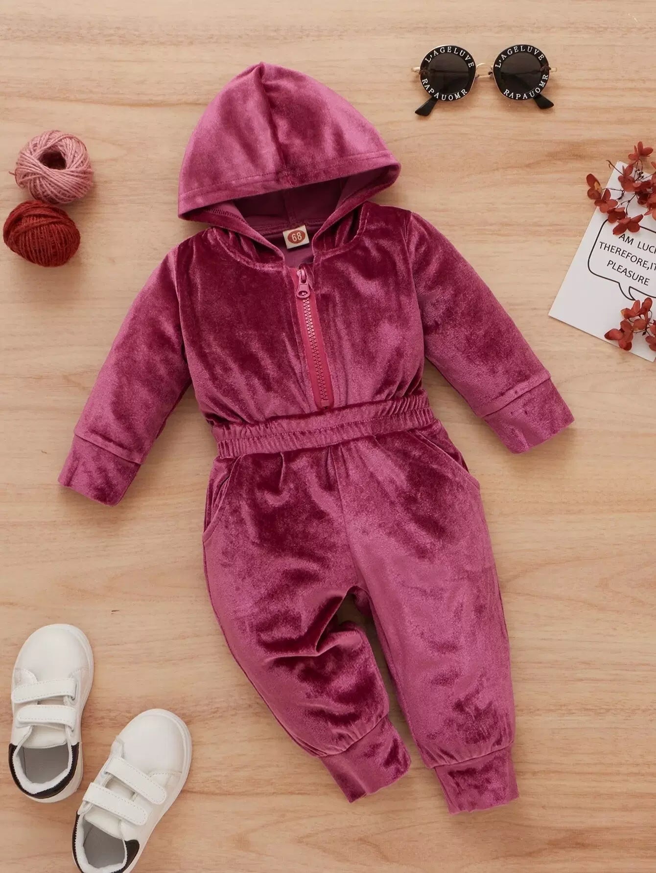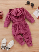 Baby Solid Zipper Velvet Hooded Jumpsuit