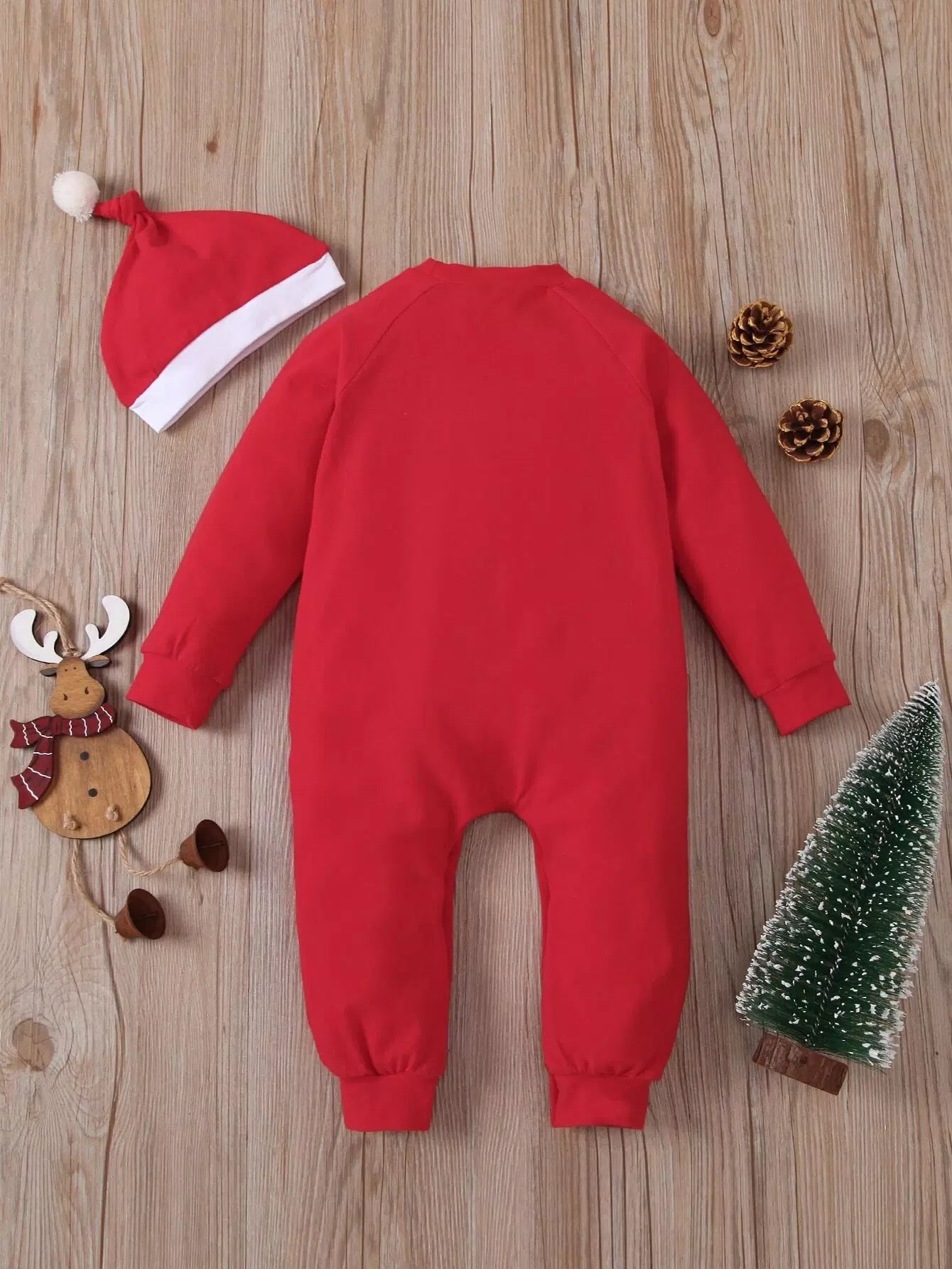 Baby Unisex Christmas Print Jumpsuit & Hat