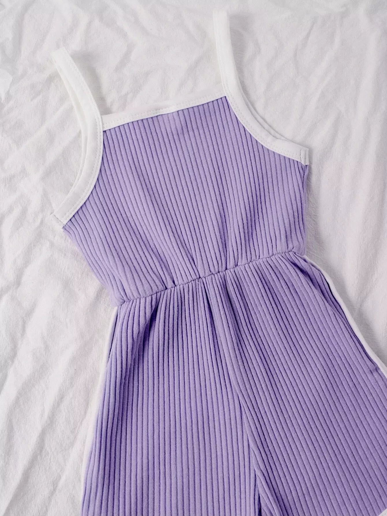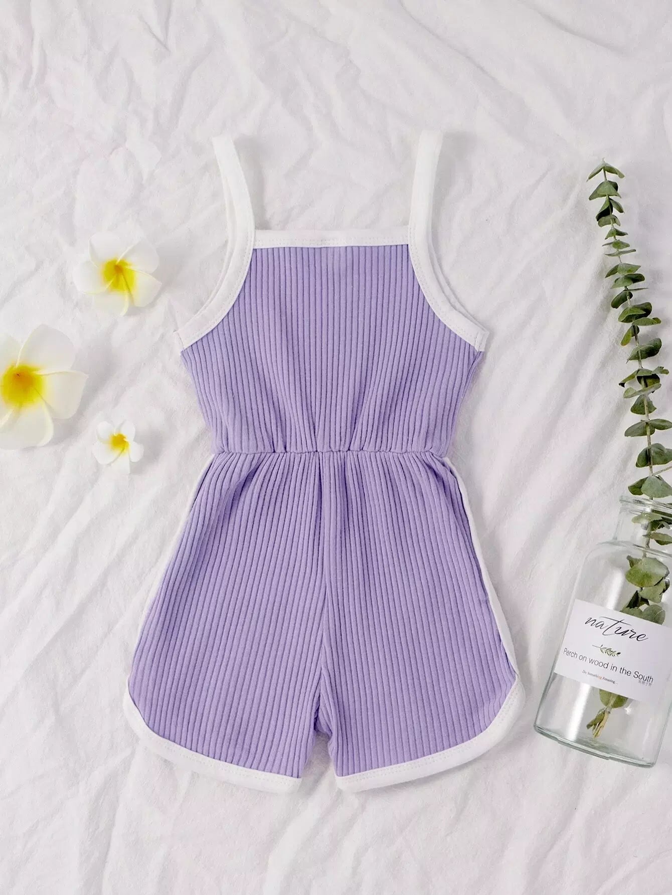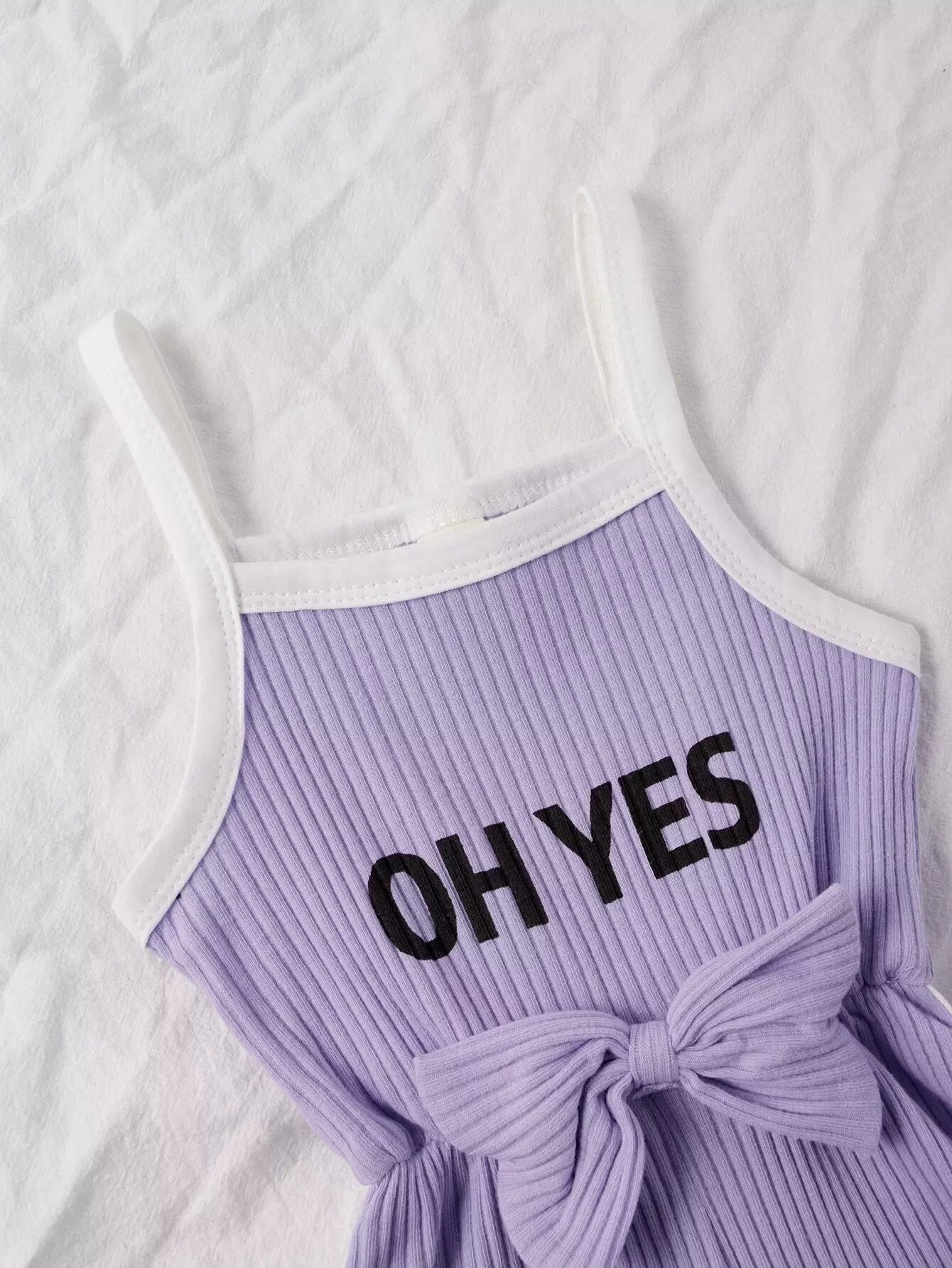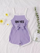 Baby Girl Contrast Binding Bow Front Cami Romper
