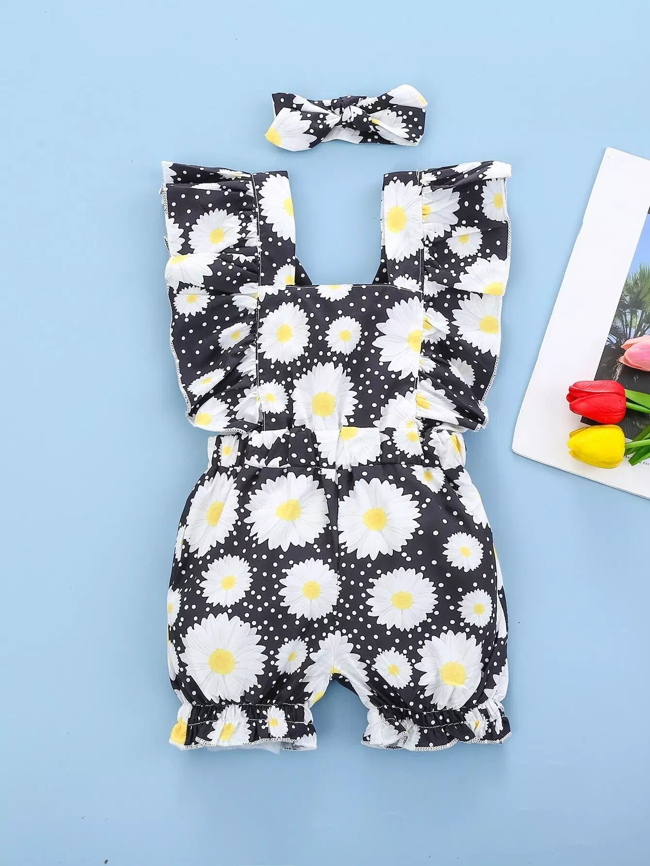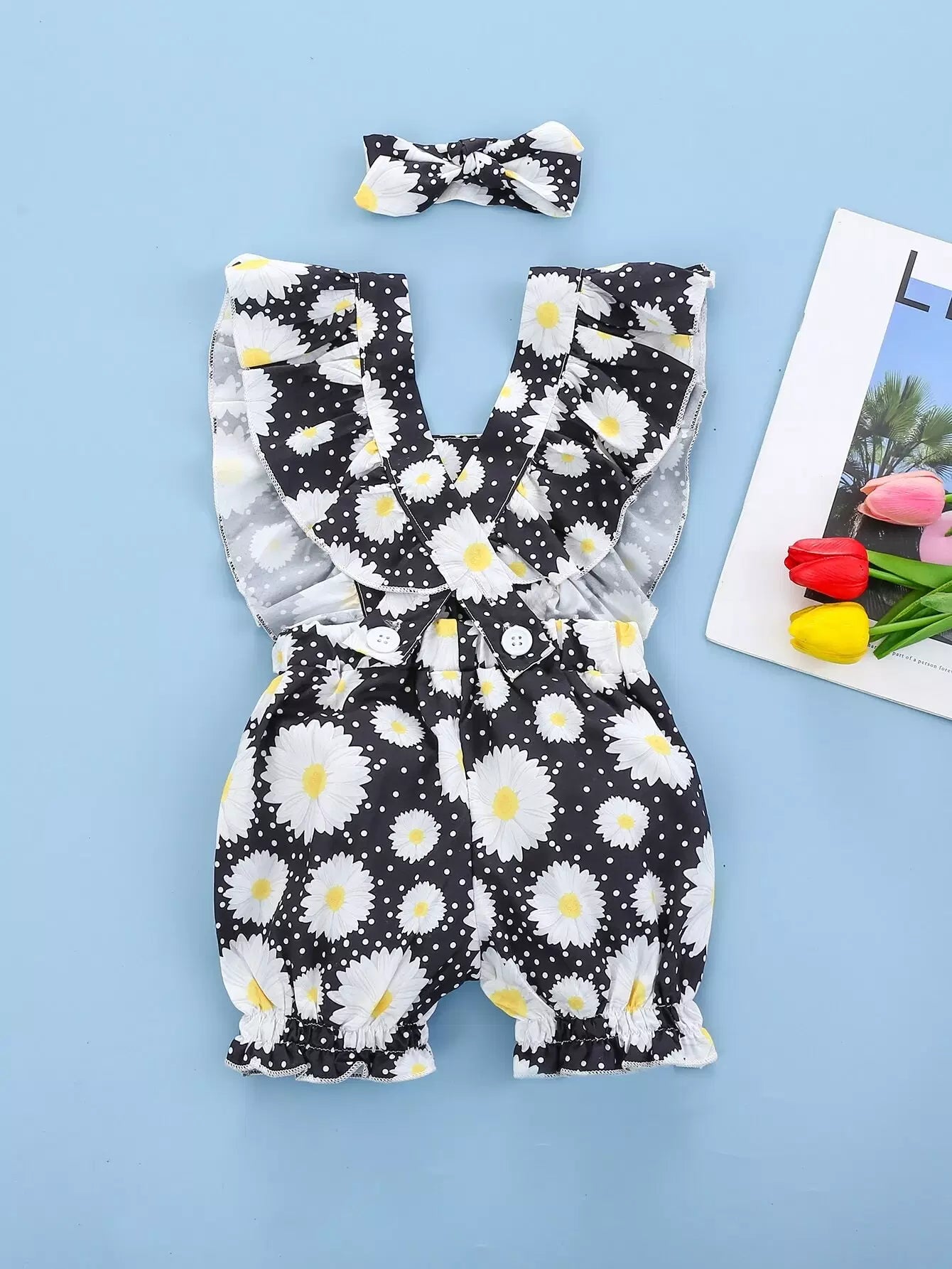 Baby Girl Floral And Polka Dot Romper With Headband