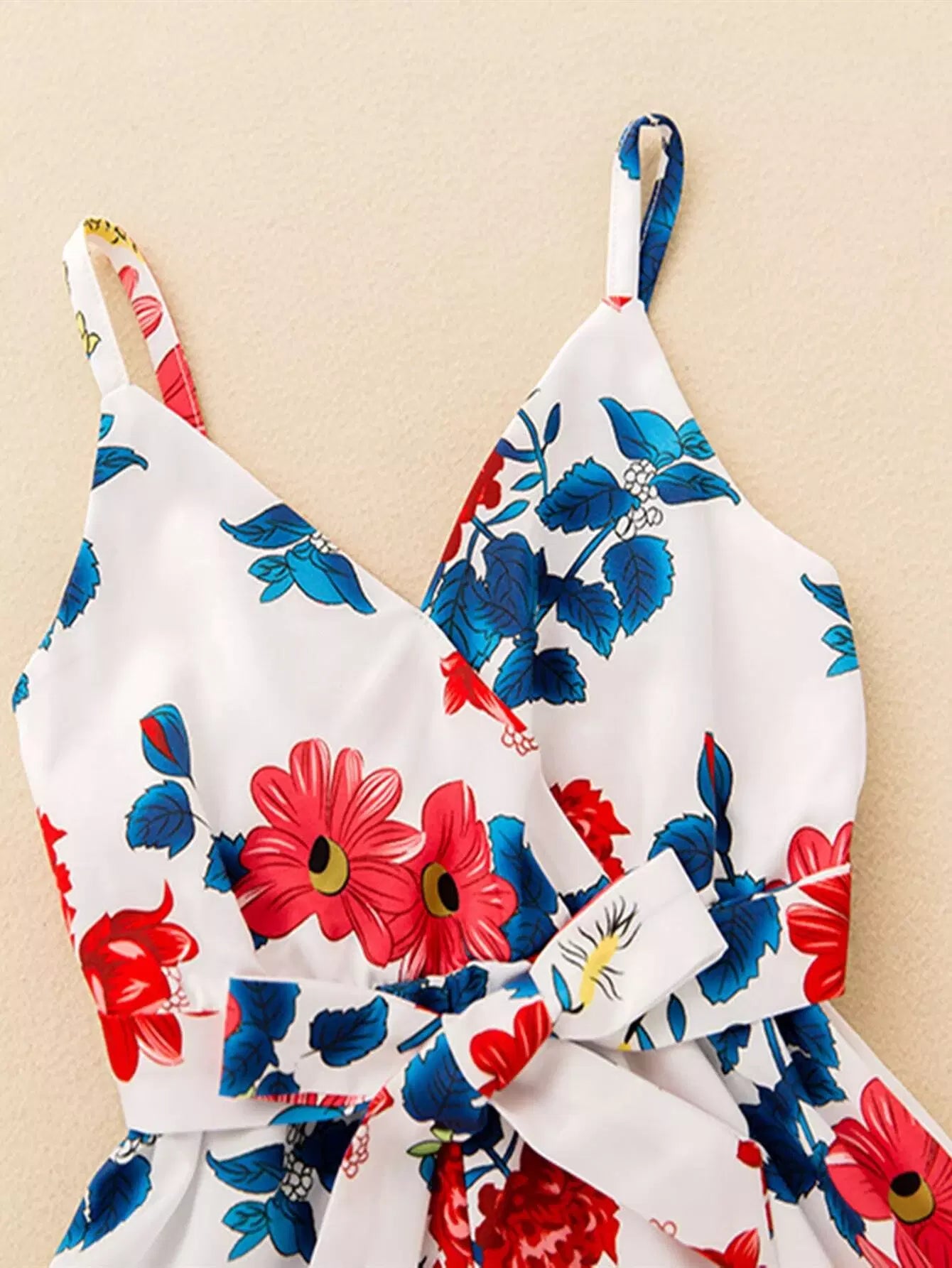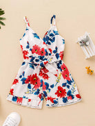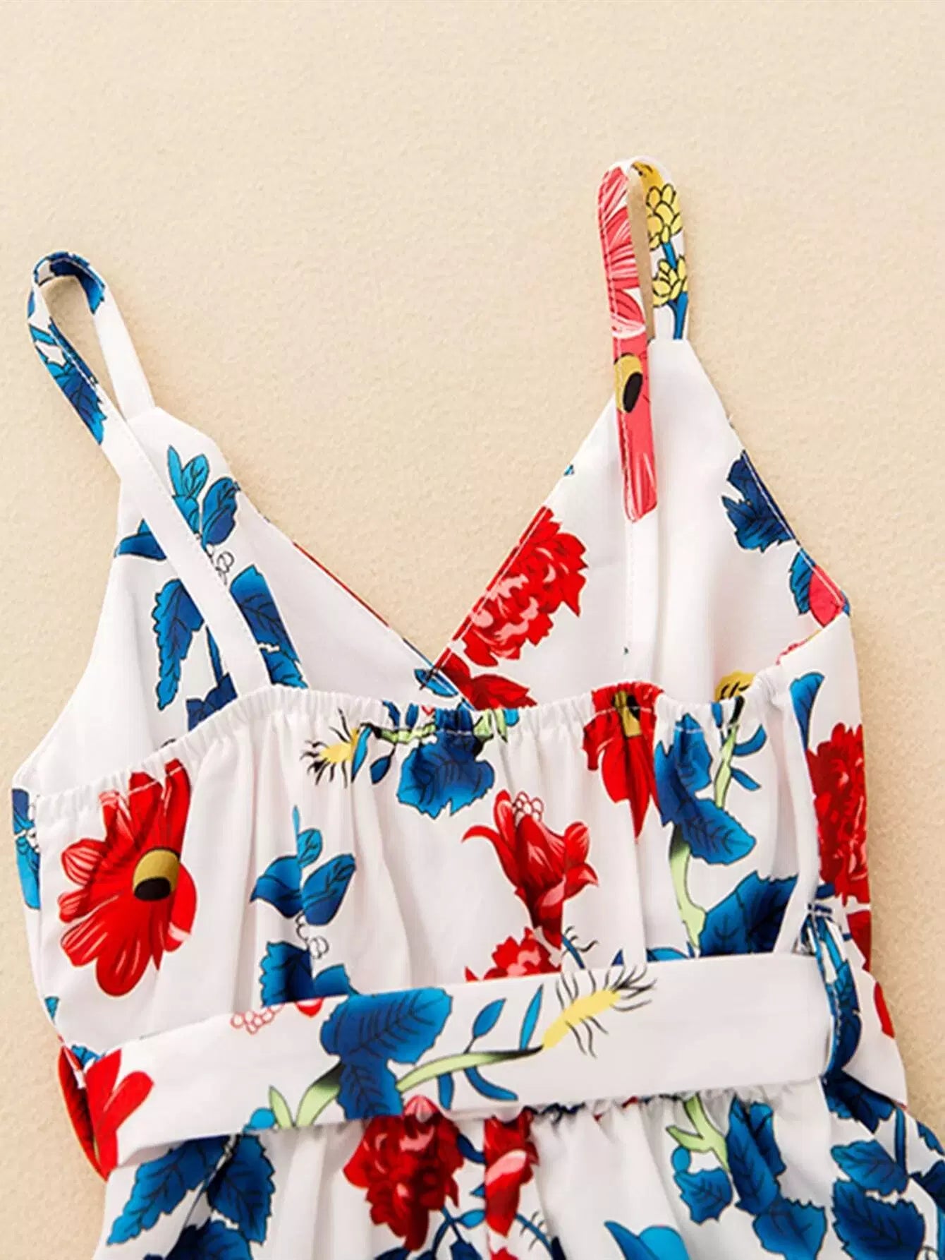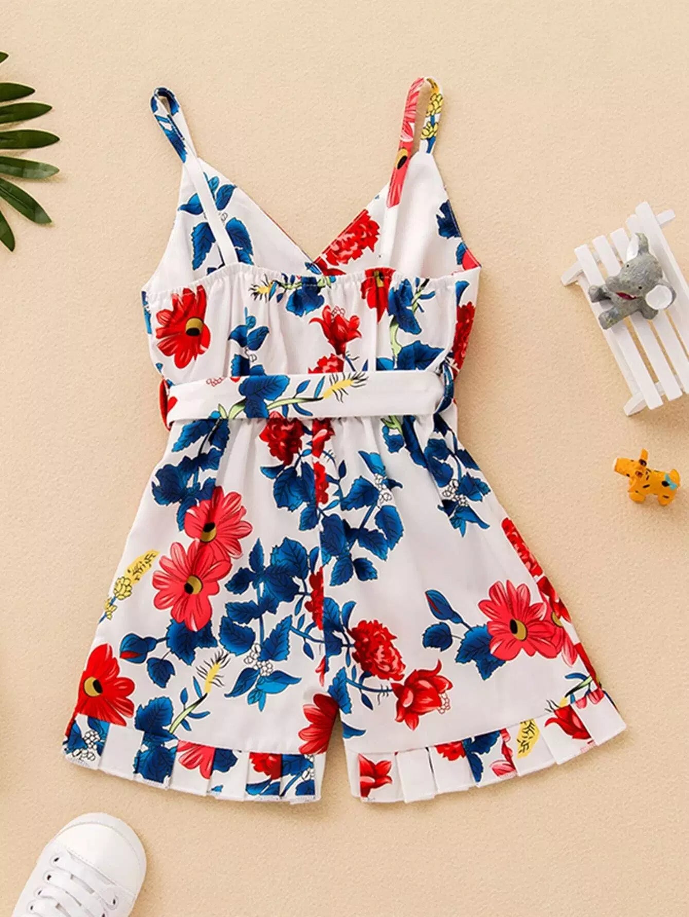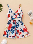 Baby Girl Floral Print Ruffle Hem Cami Romper Without Belt
