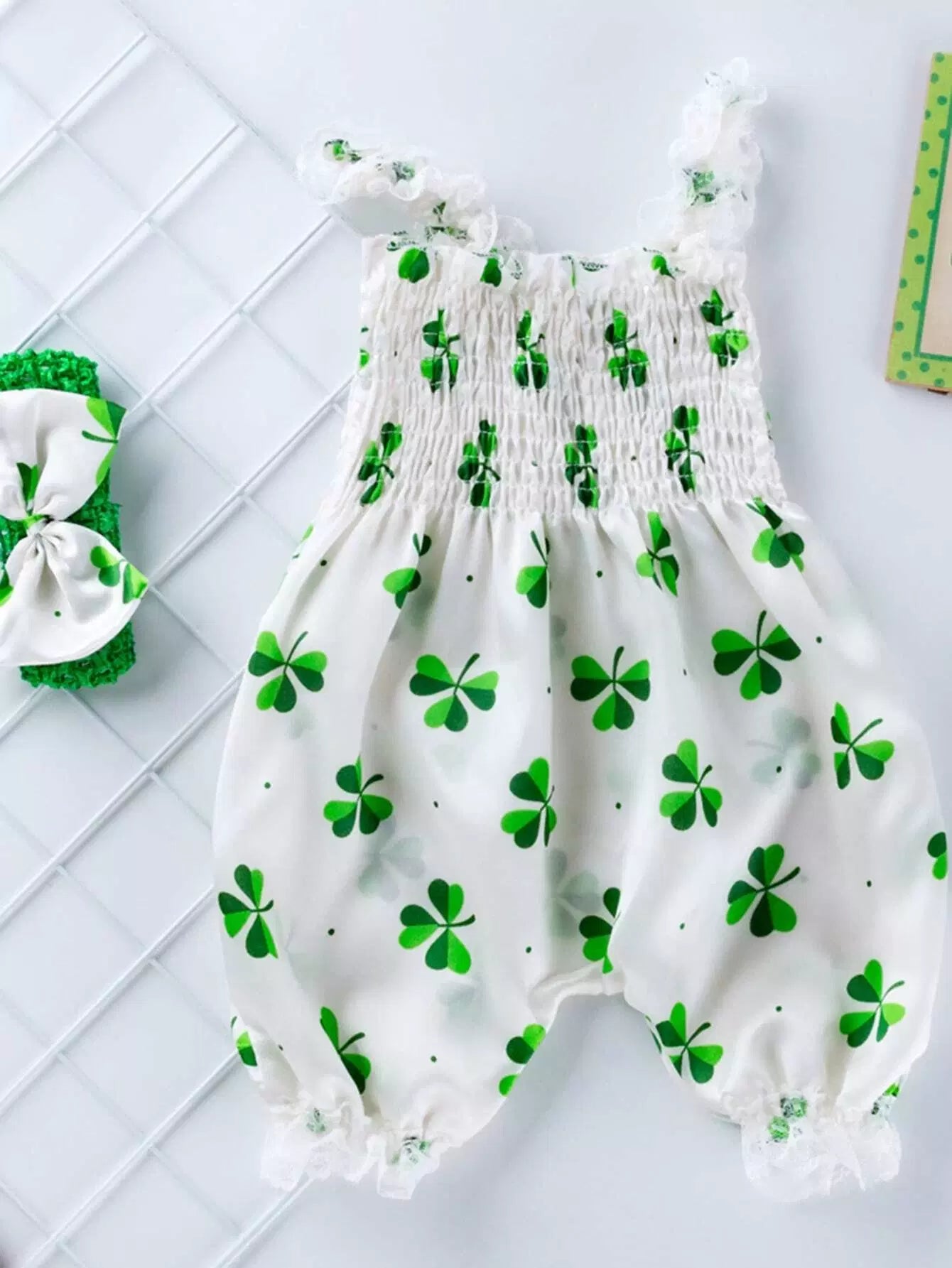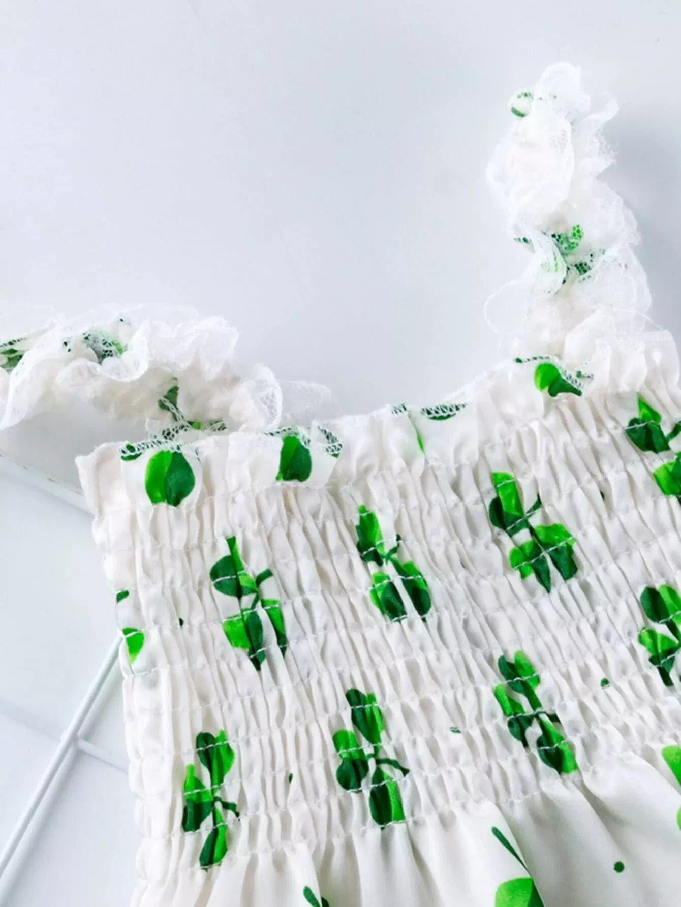 Kids - Baby Girl Plants Print Shirred Cami Romper & Headband