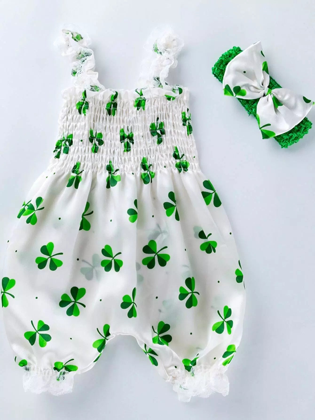 Baby Girl Plants Print Shirred Cami Romper & Headband