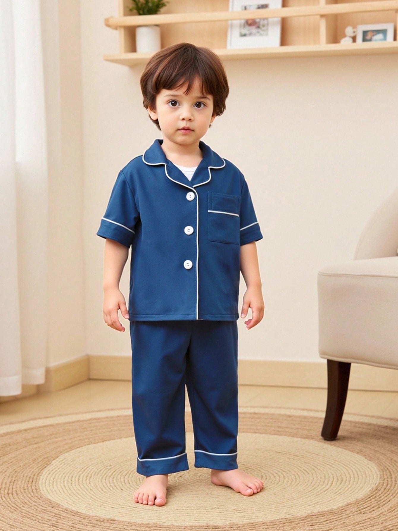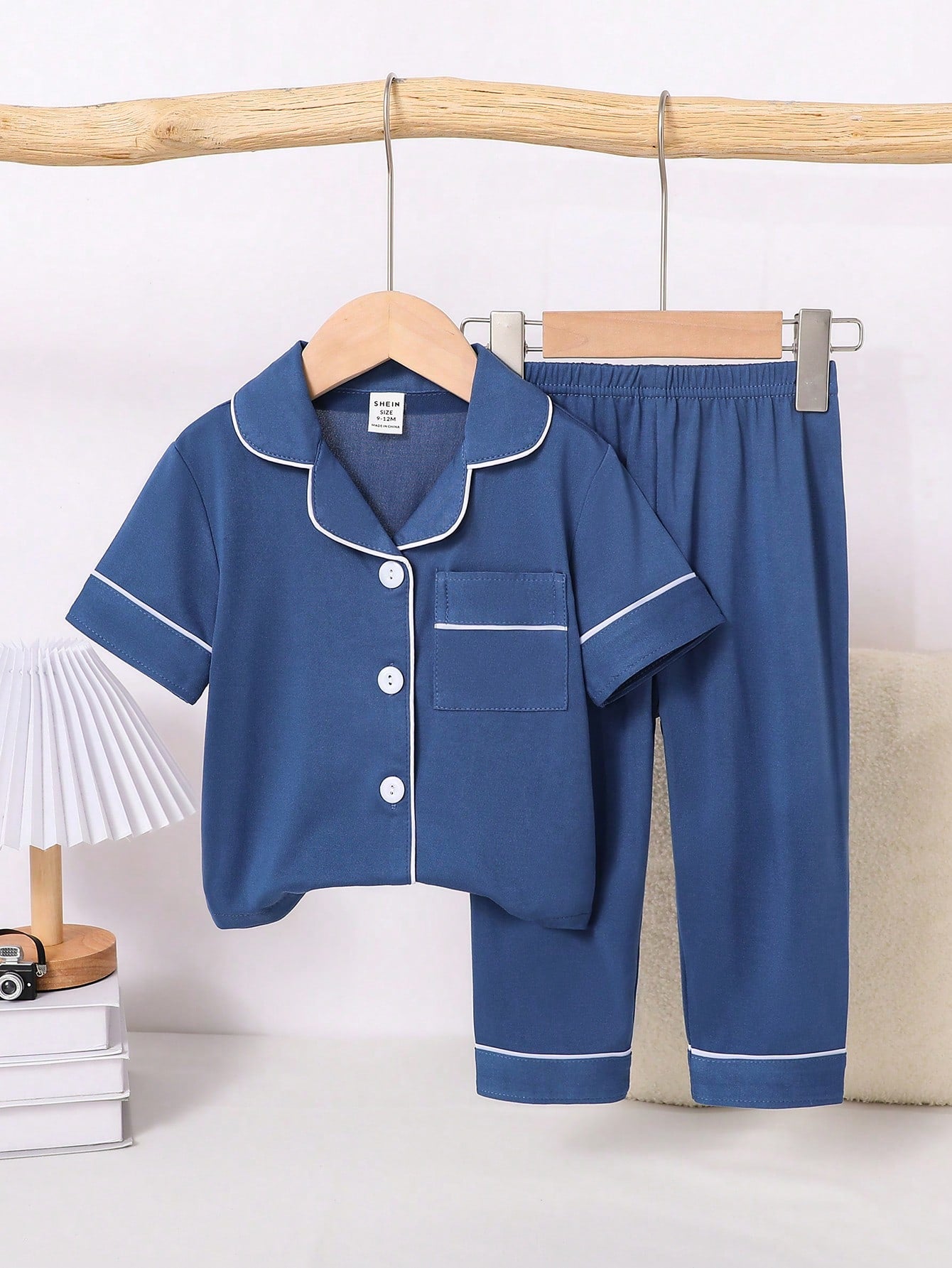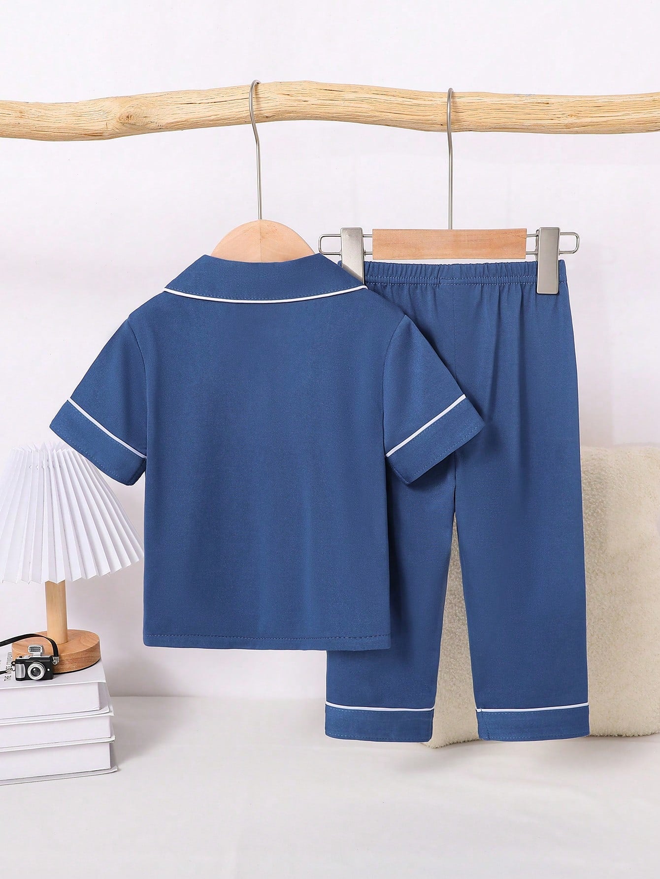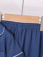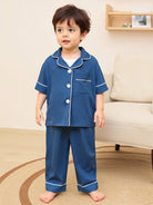 2pcs Infant/Toddler Boys' Solid Blue Short Sleeve Cardigan Top And Casual Long Pants Homewear Set