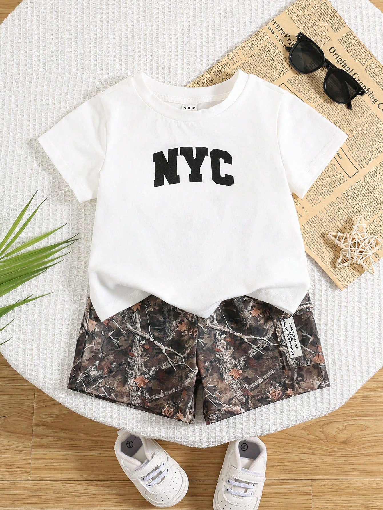 2pcs/Set Baby Boy/Girl Casual Street Sporty Dropped Shoulder Loose Knit Top Tee And Elastic Waist Cargo