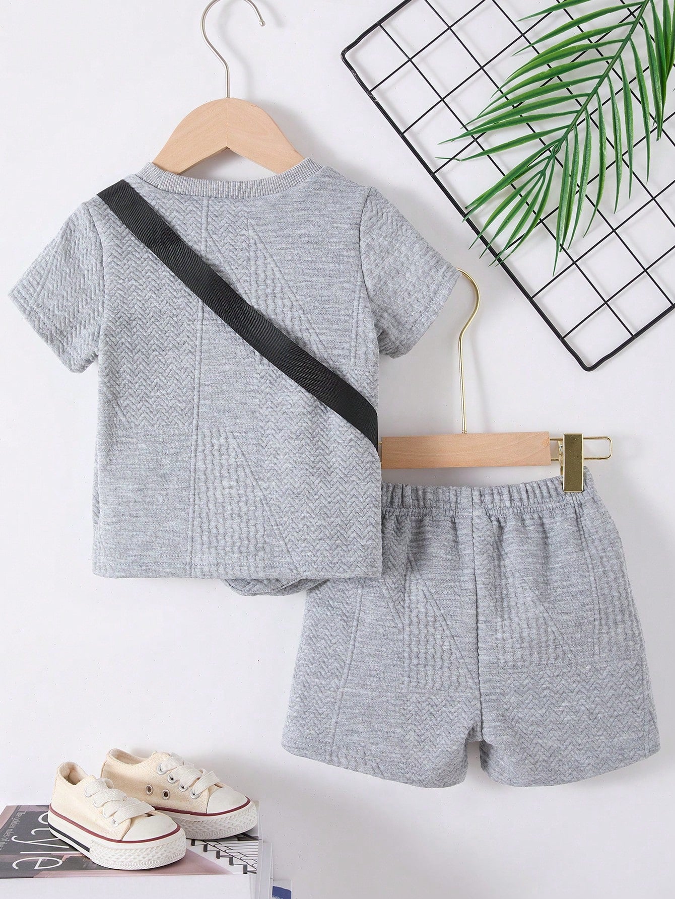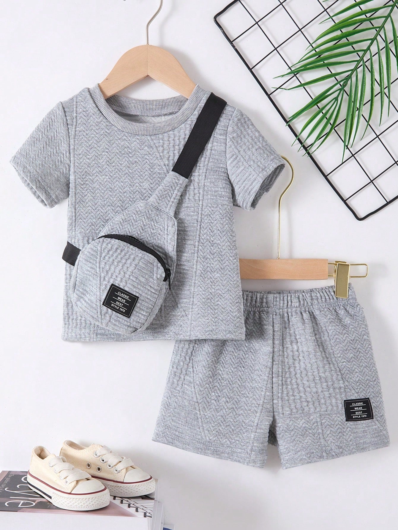 kids 3pcs/Set Baby Boy Casual Fashion Textured Fabric Crew Neck Short Sleeve T-Shirt