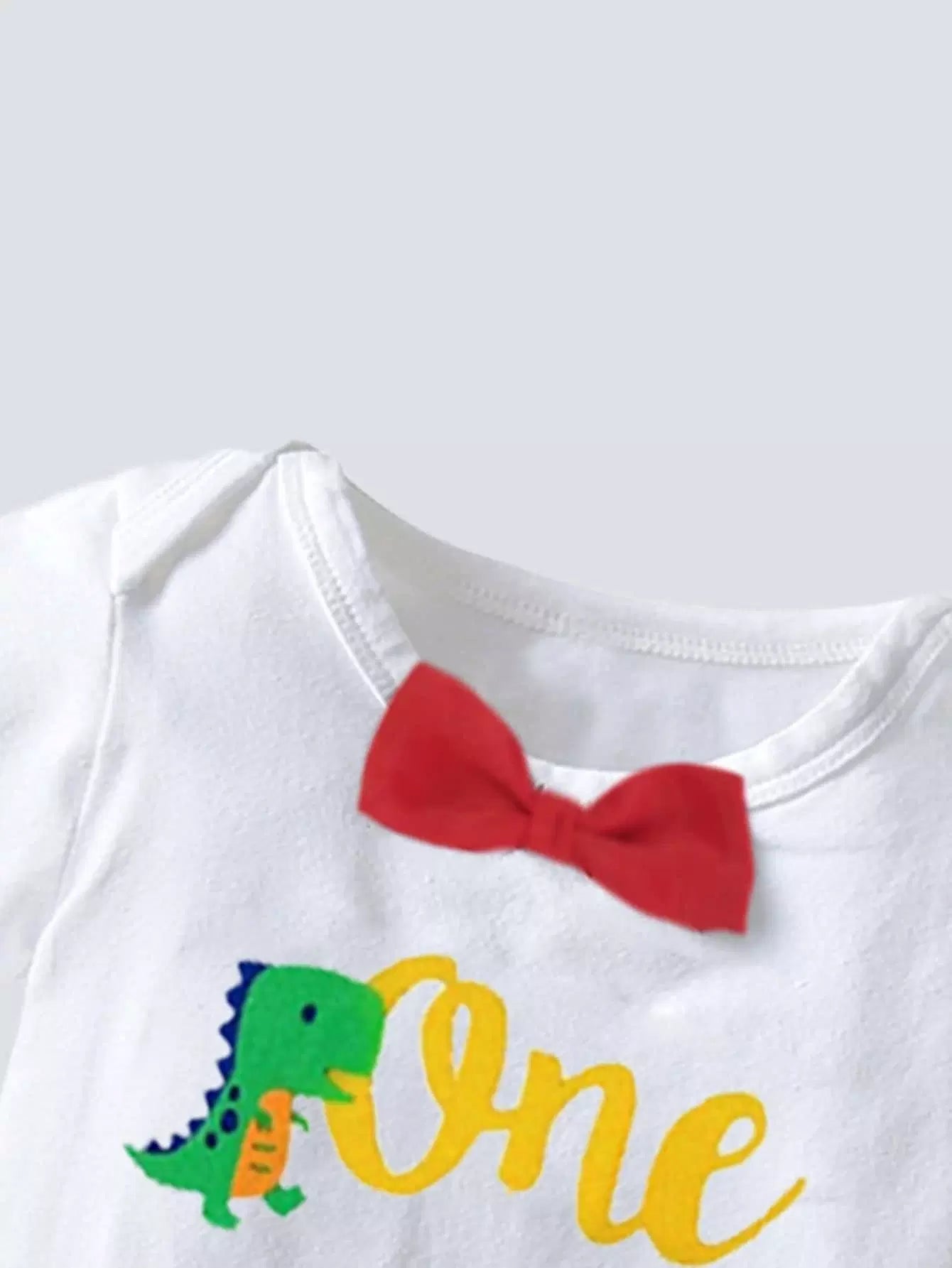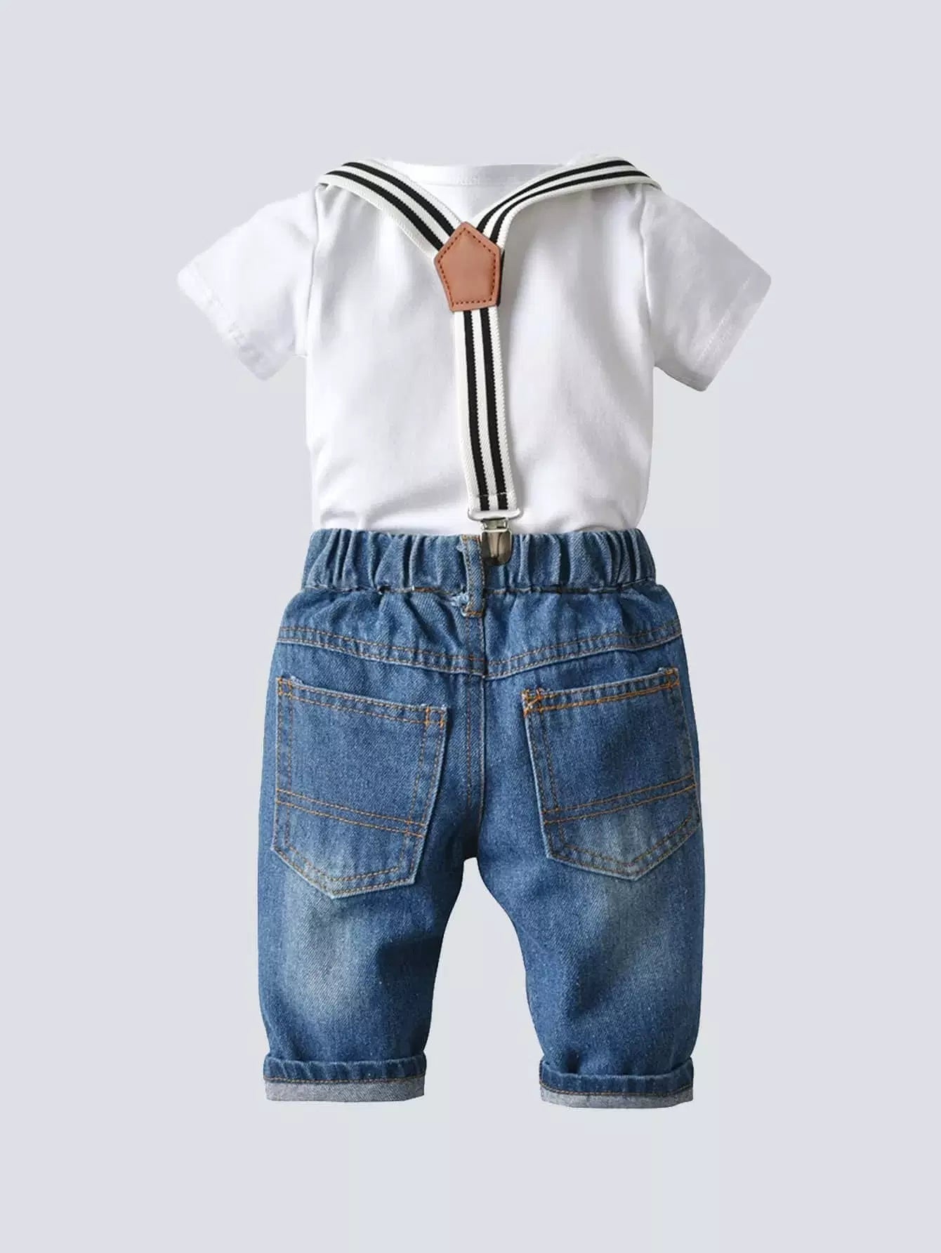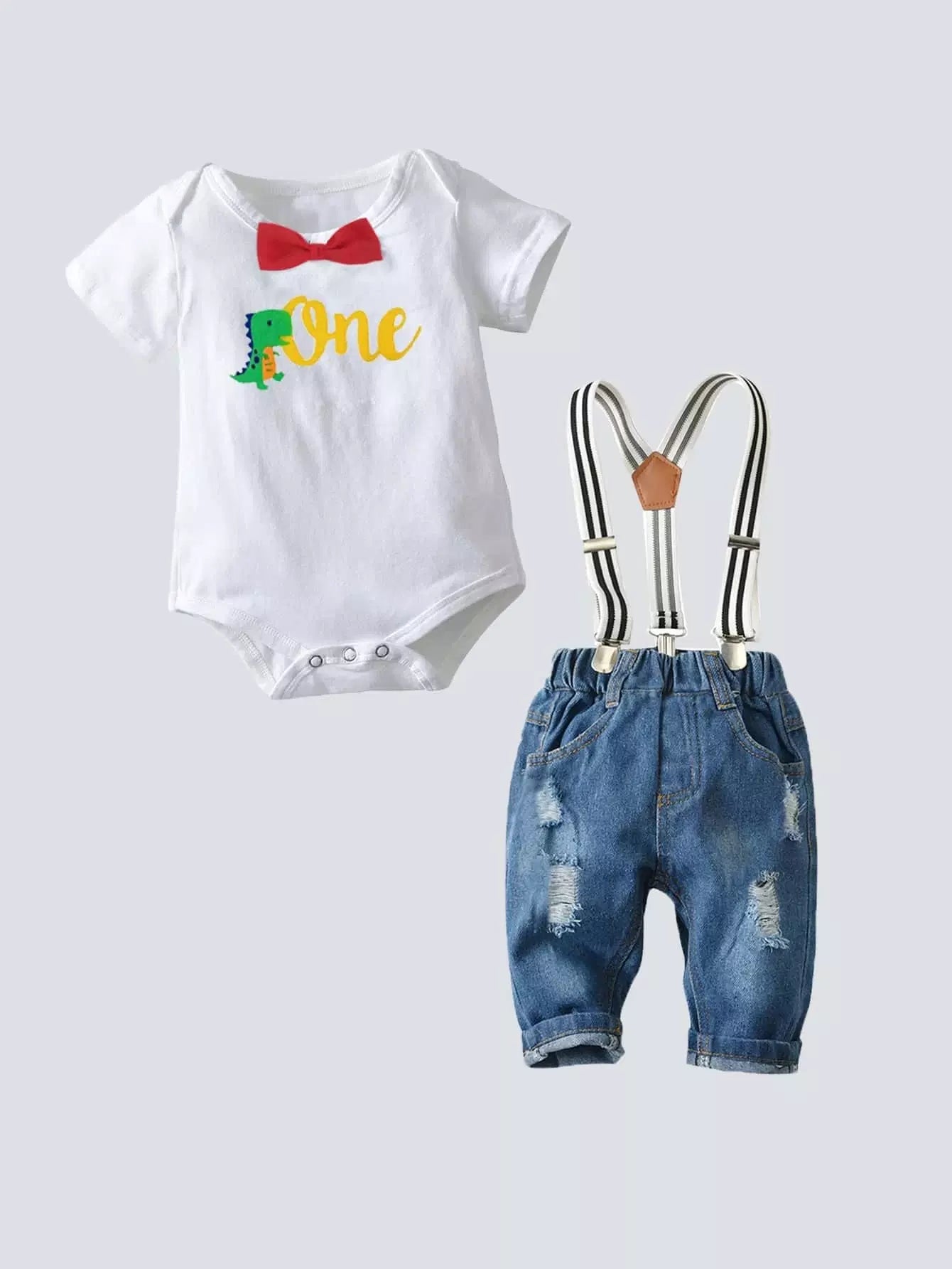 Baby Boy Cartoon Graphic Bow Bodysuit & Ripped Jeans