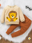 Baby Boy Cartoon Lion Print Sweatshirt With Joggers