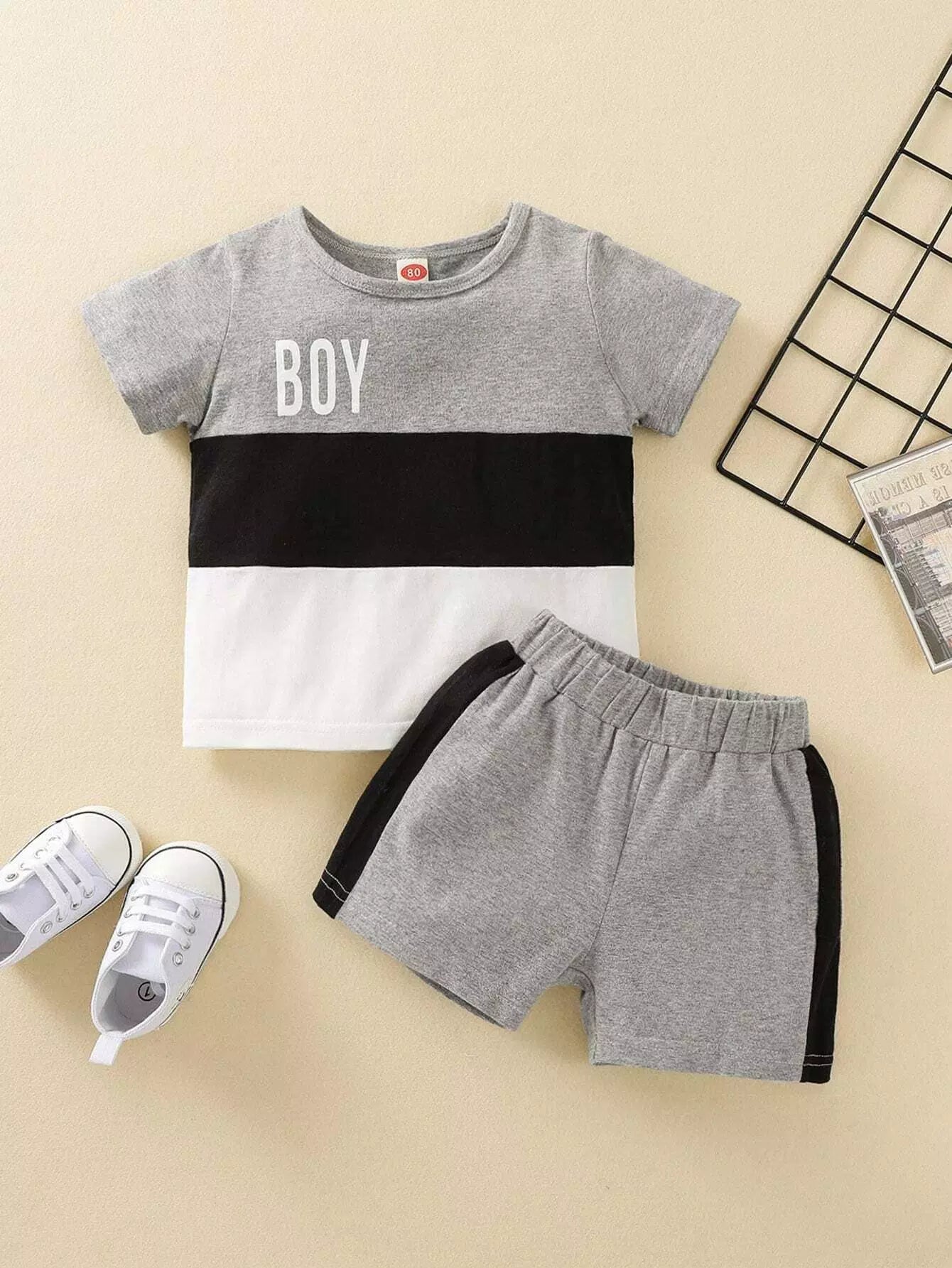 Baby Boy Cu And Sew Letter Graphic Tee & Shorts